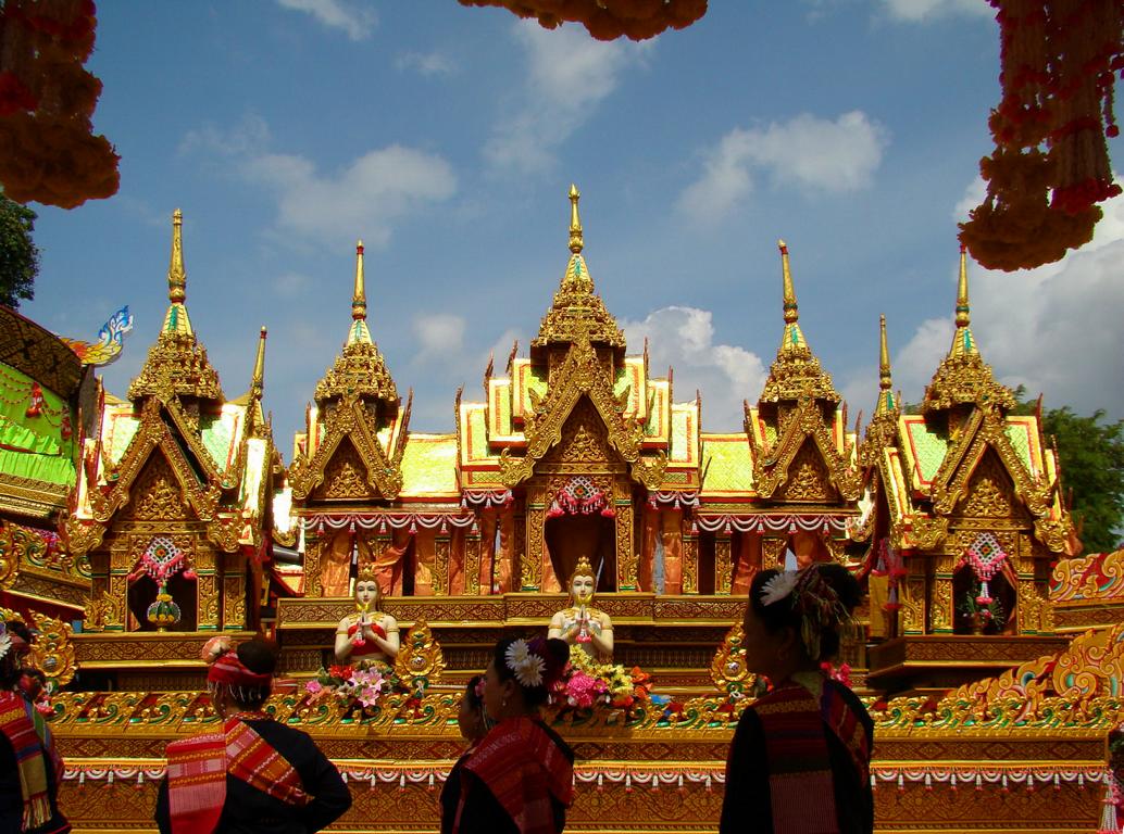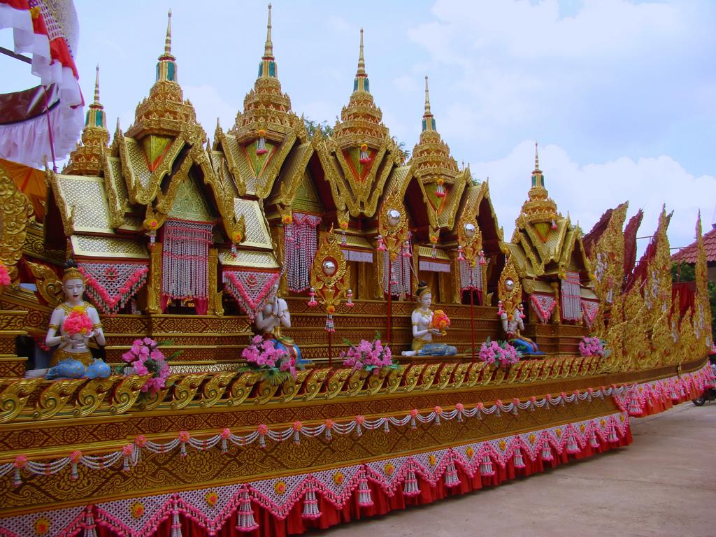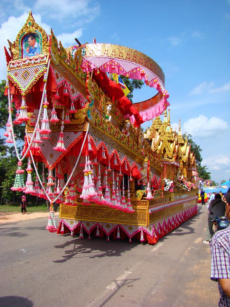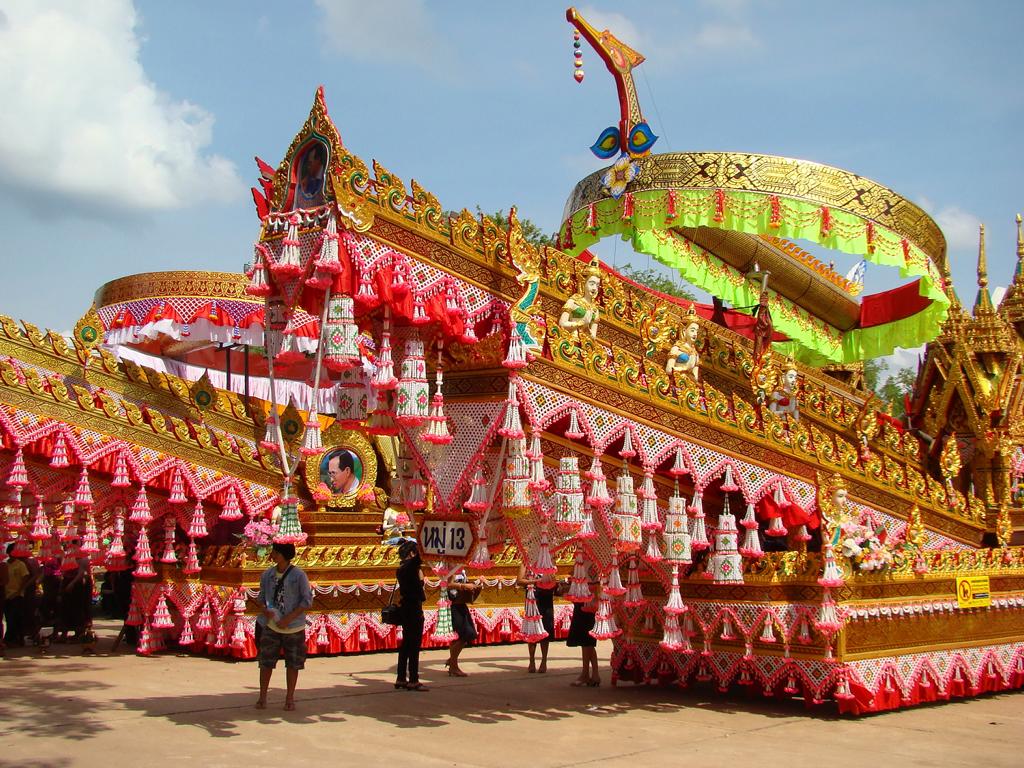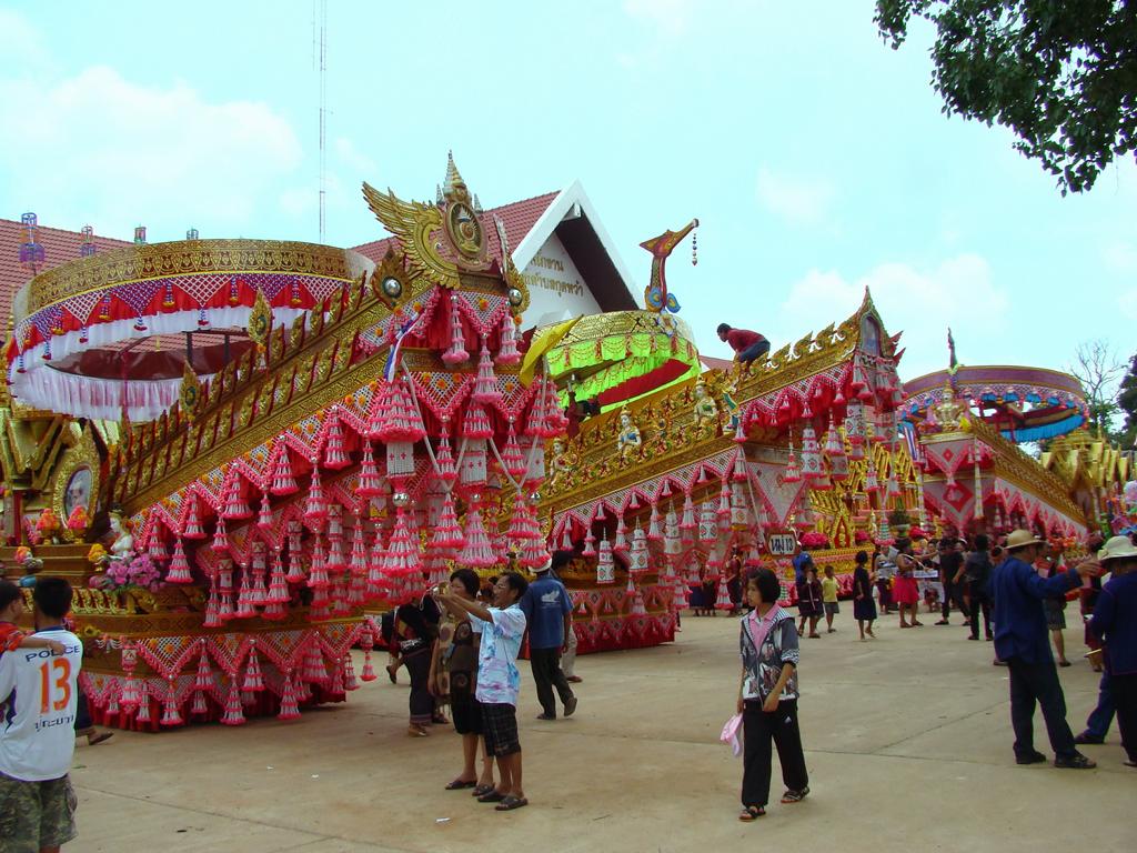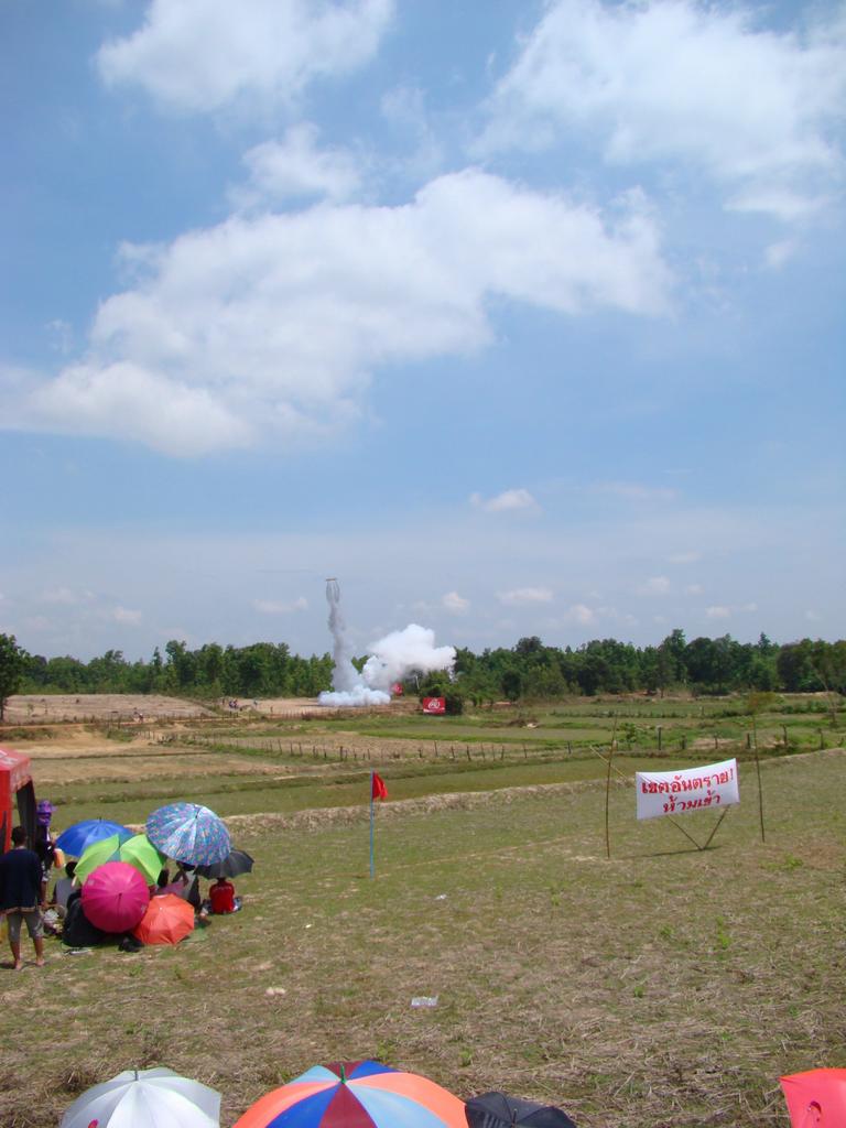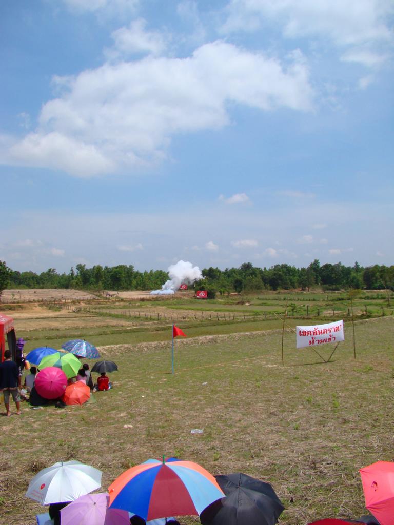 A Rocket Festival is a merit making festival that is traditionally practiced by ethnic Laotian people throughout the northeastern parts of Thailand and in Laos. It takes place near the beginning of the rainy season and is held in order to „ask“ for the rain to begin and thus provide enough water for a good harvest later the year. Celebrations normally include music and dance performances, processions of floats, dancers and musicians and competitive firings of self-made rockets.