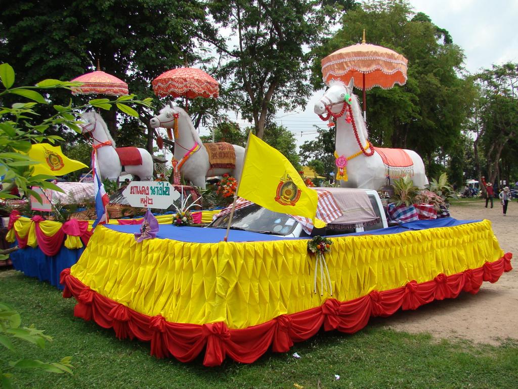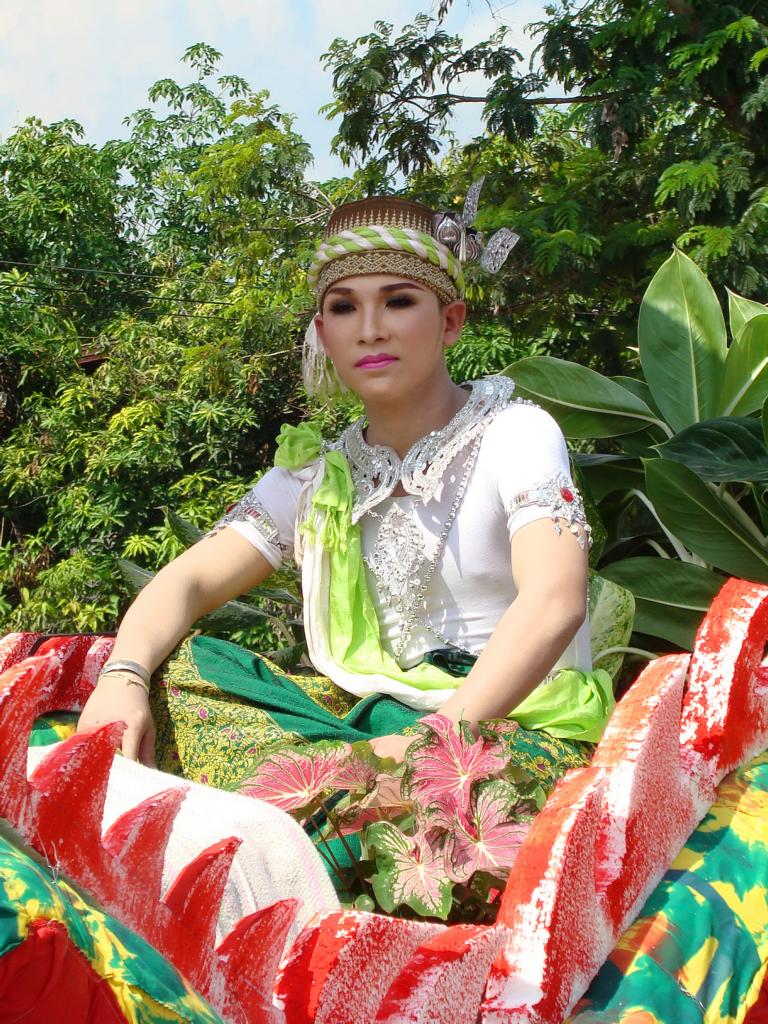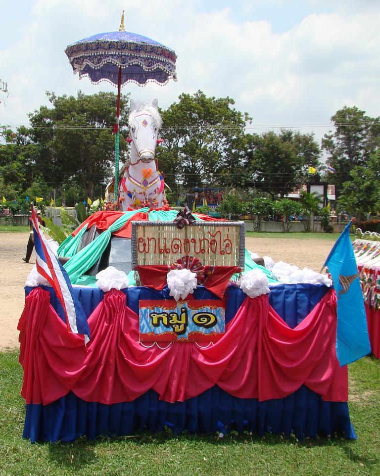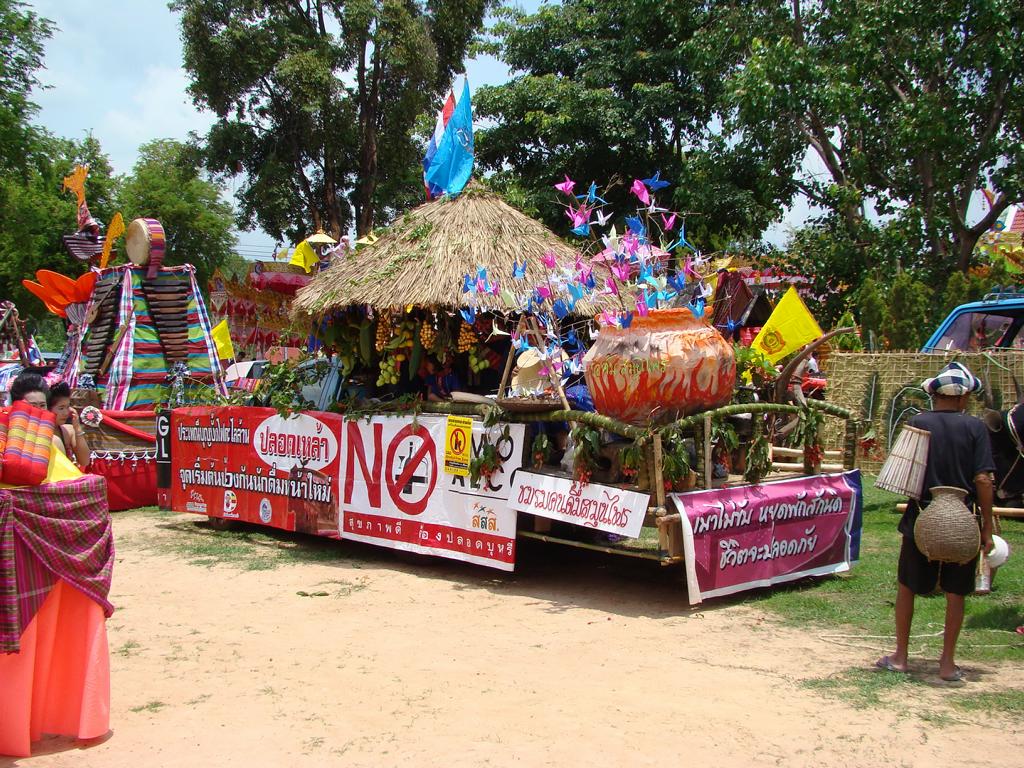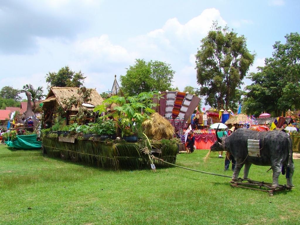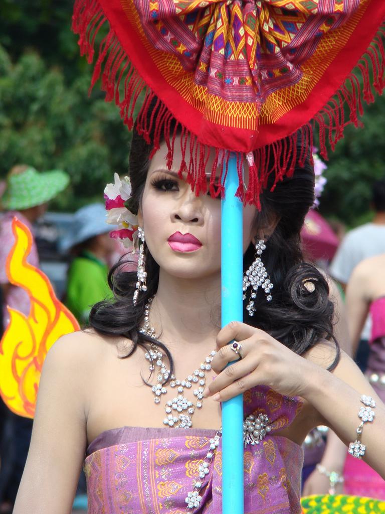 Overview … Überblick …Advertising the festival … Werbung für die Veranstaltung …Believe it – or not … monsters like this will learn how to spin around and fly high to the sky … Man kann es glauben – oder nicht … monströse Ringe wie dieser hier werden zum Drehen gebracht und fliegen sehr hoch in den Himmel …The „Premium Class“ – getting ready for the parade … Die größten Fahrzeuge – fast bereit zur Abfahrt …They built a complete temple on a truck … Hier wurde ein kompletter Tempel auf einen LKW montiert …… and it look so real. There were so many details … und der sah wirklich echt aus. Da gab es so viele Details …And of course they were carrying those spinning rocket wheels. Und natürlich wurden auch die sich später drehenden Raketenräder präsentiert.Decorated with millions of small plastic flowers. Verziert mit Millionen von kleinen Plastikblumen.Ready to go … Und los geht’s …But there were smaller tracks as well. Not less impressive though. It looked like a small village – from far away, without glasses. Aber es gab auch kleinere Fahrzeuge. Trotzdem nicht weniger beeindruckend. Hier hatte man ein kleines Dorf nachgebaut – so sah es zumindest aus der Entfernung und ohne Brille aus.People must have spend weeks or months for preparing these trucks … Die Leute müssen Wochen oder gar Monate daran gebaut haben …„Alcohol free zone“ – but I wondered what they brewed in that kettle … Alkoholfreie Zone – aber ich habe mich gewundert, was wohl in dem Kessel gebraut wurde …Presenting local music and woven products … Darbietung von lokaler Musik und Webprodukten …Wide display of woven cloths at the rear of a truck … Breit gefächerte Darstellung von gewebten Kleidungsstücken an der Rückseite eines LKW’s …And the small, regular pick-up trucks. They were carrying white horses … Auch die kleinen, normalen Pick-Ups durften nicht fehlen. Sie trugen weiße Pferde …Every village brought his own car to take part in the parade … Jedes Dorf nahm mit seinem eigenen Gefährt teil …It was a competition. Here you can spot the differences regarding the 3 horses … umbrella, saddle, bridle … Es war ja auch ein Wettbewerb. Hier sieht man die Unterschiede am Beispiel der Pferde … Schirm, Sattel, Zaumzeug …They performed a few traditional dances before the parade started … Hier wurden einige traditionelle Tänze aufgeführt bevor der Umzug starten konnte …Trophies for several competitions … Die Pokale für unterschiedliche Wettbewerbe …Probably a good day for the vendors of cold drinks … Wahrscheinlich ein guter Tag für die Verkäufer von gekühlten Getränken …Rock with me … Folge dem Rocksound …Ready to join the parade and entertain the people walking behind the truck … Der war auch soweit fertig, den Umzug mitzumachen und die hinter ihm gehenden Leute mit Muisk zu unterhalten …But no sound without electricity – power generator on wheels … Aber ohne Strom kein Ton – der Generator fuhr auf einem Anhänger hinterher …And then the parade hit the road … Und dann endlich ging es auf der weiterhin befahrenen Haupstraße weiter …Many groups presenting local clothes, plants, food, music … Viele Gruppen zeigten lokale Kleidung, Pflanzen, Essen oder spielten ihre Musik …And a few „wild“ ones tried to chase me off the road … Nur einige „Wildgewordene“ versuchten, mich von der Straße zu jagen …If your own, real buffalo is too busy, too old, too wild … build another one. Für den Fall, daß der eigene, echte Büffel zu beschäftigt, zu alt, zu wild ist … bau Dir einen anderen.Local youths high on a truck … Örtliche Jugendliche hoch oben auf einem der LKWs.I really forgot that … did I take a photo of a man or a woman? Ich habe es tatsächlich vergessen … habe ich ein Foto von einem Mann oder einer Frau gemacht?Focussed on …? Konzentriert auf … ?Feeling free to dress up like … someone who doesn’t care. Good … Er hatte sich einfach angezogen wie jemand … den es nicht interessiert. Gut so …We proudly present: Ms. and Mr. …. Anyway, that’s what the horses were made for … Wir sind stolz, Ihnen Herrn und Frau … Egal, jetzt sieht man, wofür die Pferde gebaut worden waren …Pink couple … at least for a few hours. Ein pinkfarbenes Paar … zumindest für einige Stunden.Clothes and Make-up – ready is the new representative of a local community. Kleidung und Make-up. Fertig ist der neue Vertreter einer örtlichen Gemeinschaft.Throwing me a kiss? Ob sie mir einen Kuss zugeworfen hat?Obviously proud to present that dress. Offenbar stolz, dieses Kleid zeigen zu dürfen.Carrying the sign with the name of her village … Sie trug das Schild mit dem Namen ihres Dorfes …They applied a lot of powder in order to look so pale … Durch das Auftragen von Unmengen an Puder versuchte man, hellhäutig auszusehen …Smiling for the foreigner with the camera … Sie lächelte für den Fremden mit der Kamera …Maybe shy, bored or tired already … Vielleicht war sie etwas schüchtern, gelangweilt oder schon müde …That’s better … Das sah schon besser aus …Looking similar – but the details can help you to determine the difference. Ähnliches Aussehen – aber die Details können helfen, den Unterschied festzustellen.Different style – same pale skin. Ein anderer Stil – aber dieselbe weiße Haut.I think, every village sent a few beautiful looking women … Ich glaube, jedes Dorf hatte einige hübsche Frauen geschickt …On the way to the wheel launching area I passed by this overloaded pick-up truck with thousands of empty plastic bottles. Auf dem Weg zu dem Gelände für die Raketenabschüsse bin ich an diesem leicht überladenen Pick-Up mit tausenden von leeren Plastikflaschen vorbei gefahren.Then I saw the first spinning wheel being launched – propelled by many small rockets. They were attached in a certain angle in order to provide the spinning po