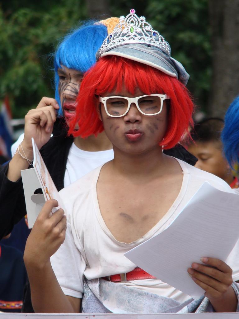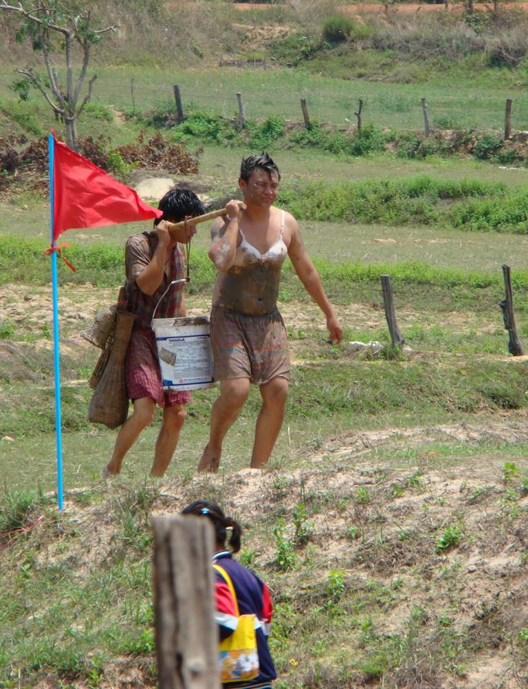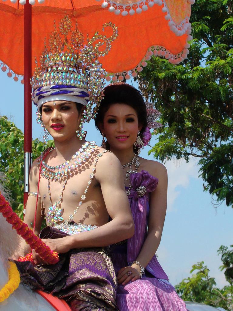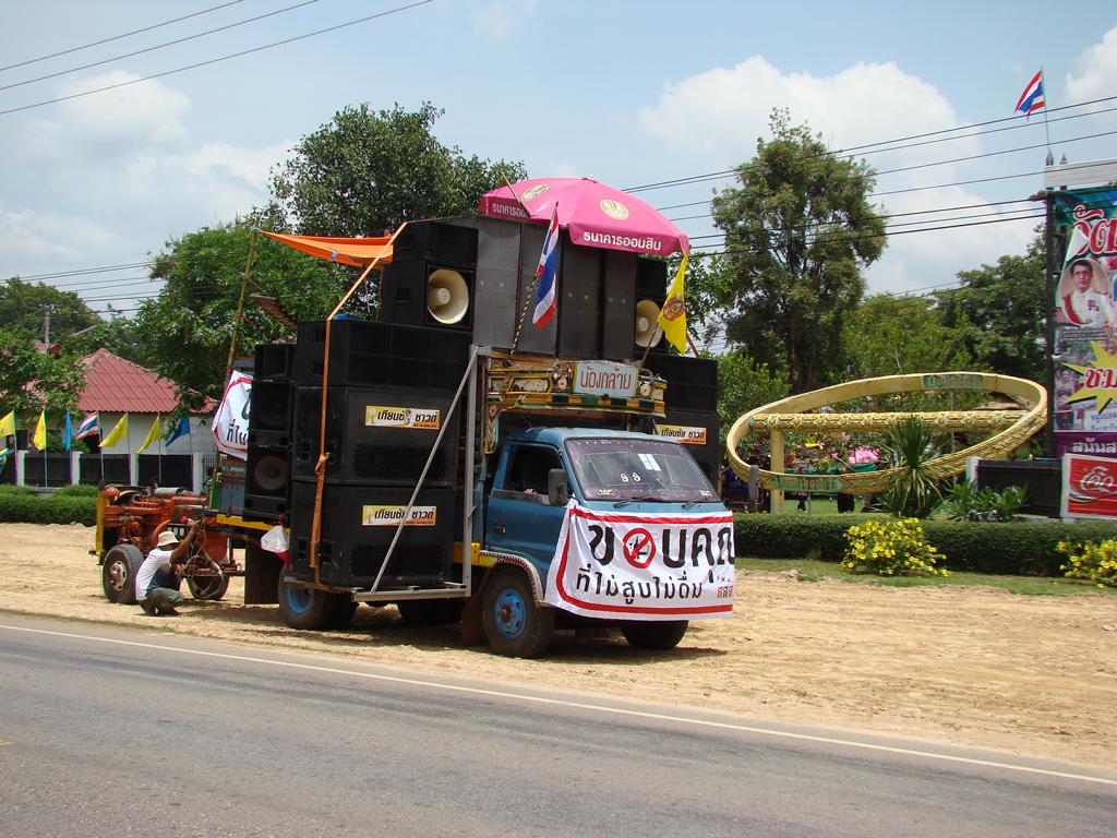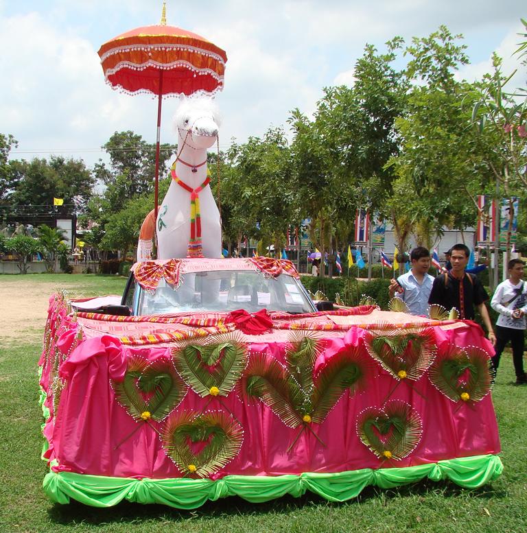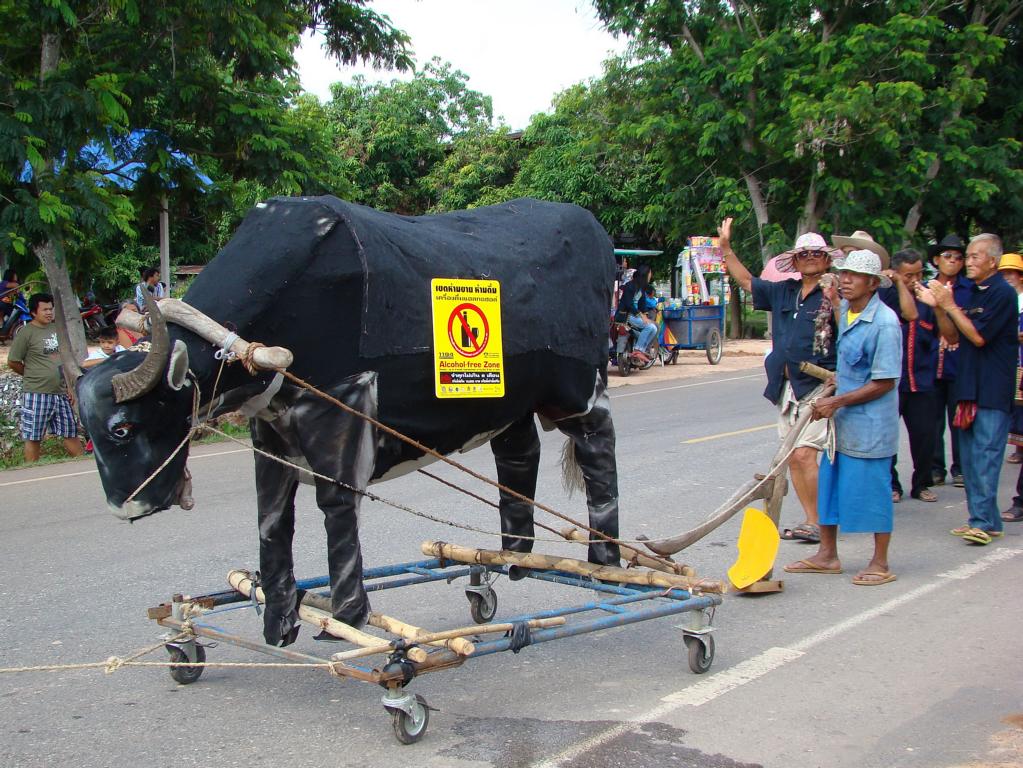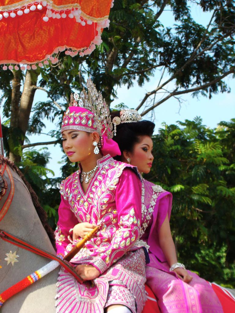 Overview … Überblick …Advertising the festival … Werbung für die Veranstaltung …Believe it – or not … monsters like this will learn how to spin around and fly high to the sky … Man kann es glauben – oder nicht … monströse Ringe wie dieser hier werden zum Drehen gebracht und fliegen sehr hoch in den Himmel …The „Premium Class“ – getting ready for the parade … Die größten Fahrzeuge – fast bereit zur Abfahrt …They built a complete temple on a truck … Hier wurde ein kompletter Tempel auf einen LKW montiert …… and it look so real. There were so many details … und der sah wirklich echt aus. Da gab es so viele Details …And of course they were carrying those spinning rocket wheels. Und natürlich wurden auch die sich später drehenden Raketenräder präsentiert.Decorated with millions of small plastic flowers. Verziert mit Millionen von kleinen Plastikblumen.Ready to go … Und los geht’s …But there were smaller tracks as well. Not less impressive though. It looked like a small village – from far away, without glasses. Aber es gab auch kleinere Fahrzeuge. Trotzdem nicht weniger beeindruckend. Hier hatte man ein kleines Dorf nachgebaut – so sah es zumindest aus der Entfernung und ohne Brille aus.People must have spend weeks or months for preparing these trucks … Die Leute müssen Wochen oder gar Monate daran gebaut haben …„Alcohol free zone“ – but I wondered what they brewed in that kettle … Alkoholfreie Zone – aber ich habe mich gewundert, was wohl in dem Kessel gebraut wurde …Presenting local music and woven products … Darbietung von lokaler Musik und Webprodukten …Wide display of woven cloths at the rear of a truck … Breit gefächerte Darstellung von gewebten Kleidungsstücken an der Rückseite eines LKW’s …And the small, regular pick-up trucks. They were carrying white horses … Auch die kleinen, normalen Pick-Ups durften nicht fehlen. Sie trugen weiße Pferde …Every village brought his own car to take part in the parade … Jedes Dorf nahm mit seinem eigenen Gefährt teil …It was a competition. Here you can spot the differences regarding the 3 horses … umbrella, saddle, bridle … Es war ja auch ein Wettbewerb. Hier sieht man die Unterschiede am Beispiel der Pferde … Schirm, Sattel, Zaumzeug …They performed a few traditional dances before the parade started … Hier wurden einige traditionelle Tänze aufgeführt bevor der Umzug starten konnte …Trophies for several competitions … Die Pokale für unterschiedliche Wettbewerbe …Probably a good day for the vendors of cold drinks … Wahrscheinlich ein guter Tag für die Verkäufer von gekühlten Getränken …Rock with me … Folge dem Rocksound …Ready to join the parade and entertain the people walking behind the truck … Der war auch soweit fertig, den Umzug mitzumachen und die hinter ihm gehenden Leute mit Muisk zu unterhalten …But no sound without electricity – power generator on wheels … Aber ohne Strom kein Ton – der Generator fuhr auf einem Anhänger hinterher …And then the parade hit the road … Und dann endlich ging es auf der weiterhin befahrenen Haupstraße weiter …Many groups presenting local clothes, plants, food, music … Viele Gruppen zeigten lokale Kleidung, Pflanzen, Essen oder spielten ihre Musik …And a few „wild“ ones tried to chase me off the road … Nur einige „Wildgewordene“ versuchten, mich von der Straße zu jagen …If your own, real buffalo is too busy, too old, too wild … build another one. Für den Fall, daß der eigene, echte Büffel zu beschäftigt, zu alt, zu wild ist … bau Dir einen anderen.Local youths high on a truck … Örtliche Jugendliche hoch oben auf einem der LKWs.I really forgot that … did I take a photo of a man or a woman? Ich habe es tatsächlich vergessen … habe ich ein Foto von einem Mann oder einer Frau gemacht?Focussed on …? Konzentriert auf … ?Feeling free to dress up like … someone who doesn’t care. Good … Er hatte sich einfach angezogen wie jemand … den es nicht interessiert. Gut so …We proudly present: Ms. and Mr. …. Anyway, that’s what the horses were made for … Wir sind stolz, Ihnen Herrn und Frau … Egal, jetzt sieht man, wofür die Pferde gebaut worden waren …Pink couple … at least for a few hours. Ein pinkfarbenes Paar … zumindest für einige Stunden.Clothes and Make-up – ready is the new representative of a local community. Kleidung und Make-up. Fertig ist der neue Vertreter einer örtlichen Gemeinschaft.Throwing me a kiss? Ob sie mir einen Kuss zugeworfen hat?Obviously proud to present that dress. Offenbar stolz, dieses Kleid zeigen zu dürfen.Carrying the sign with the name of her village … Sie trug das Schild mit dem Namen ihres Dorfes …They applied a lot of powder in order to look so pale … Durch das Auftragen von Unmengen an Puder versuchte man, hellhäutig auszusehen …Smiling for the foreigner with the camera … Sie lächelte für den Fremden mit der Kamera …Maybe shy, bored or tired already … Vielleicht war sie etwas schüchtern, gelangweilt oder schon müde …That’s better … Das sah schon besser aus …Looking similar – but the details can help you to determine the difference. Ähnliches Aussehen – aber die Details können helfen, den Unterschied festzustellen.Different style – same pale skin. Ein anderer Stil – aber dieselbe weiße Haut.I think, every village sent a few beautiful looking women … Ich glaube, jedes Dorf hatte einige hübsche Frauen geschickt …On the way to the wheel launching area I passed by this overloaded pick-up truck with thousands of empty plastic bottles. Auf dem Weg zu dem Gelände für die Raketenabschüsse bin ich an diesem leicht überladenen Pick-Up mit tausenden von leeren Plastikflaschen vorbei gefahren.Then I saw the first spinning wheel being launched – propelled by many small rockets. They were attached in a certain angle in order to provide the spinning po