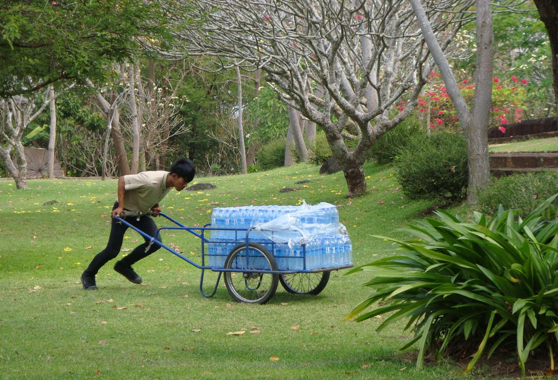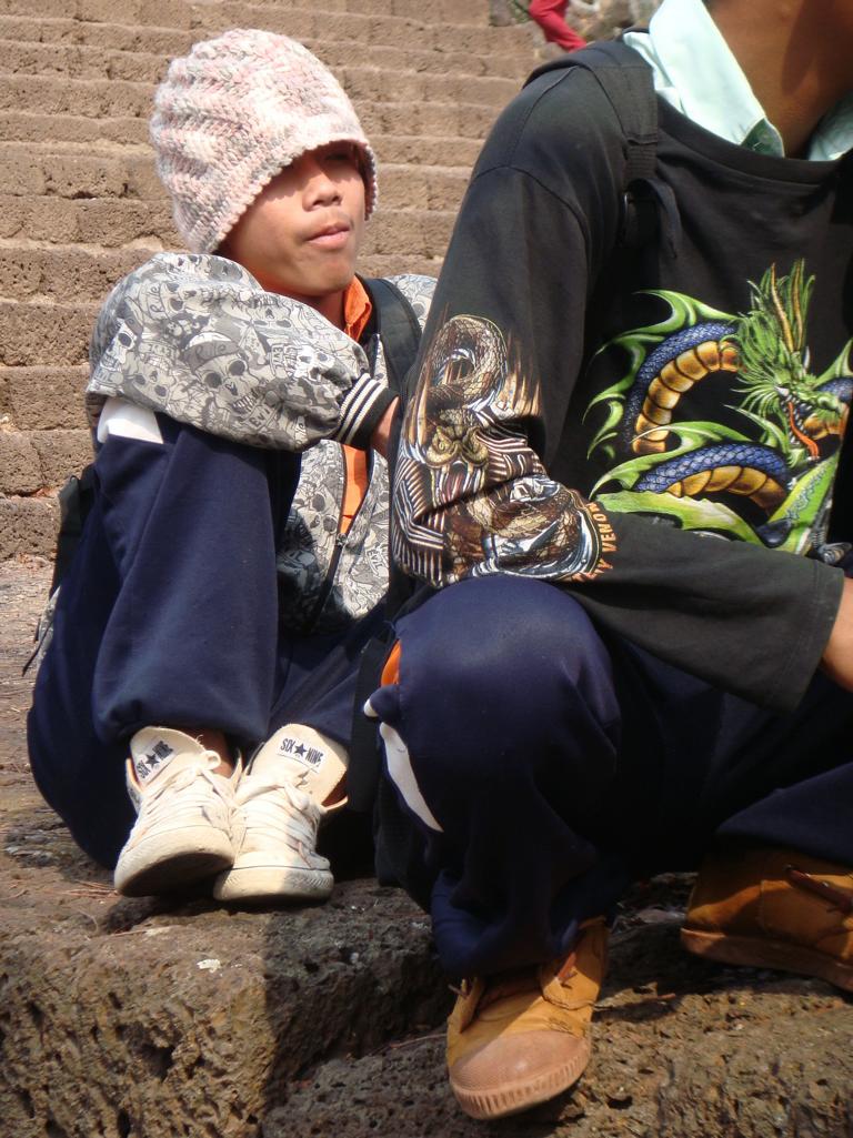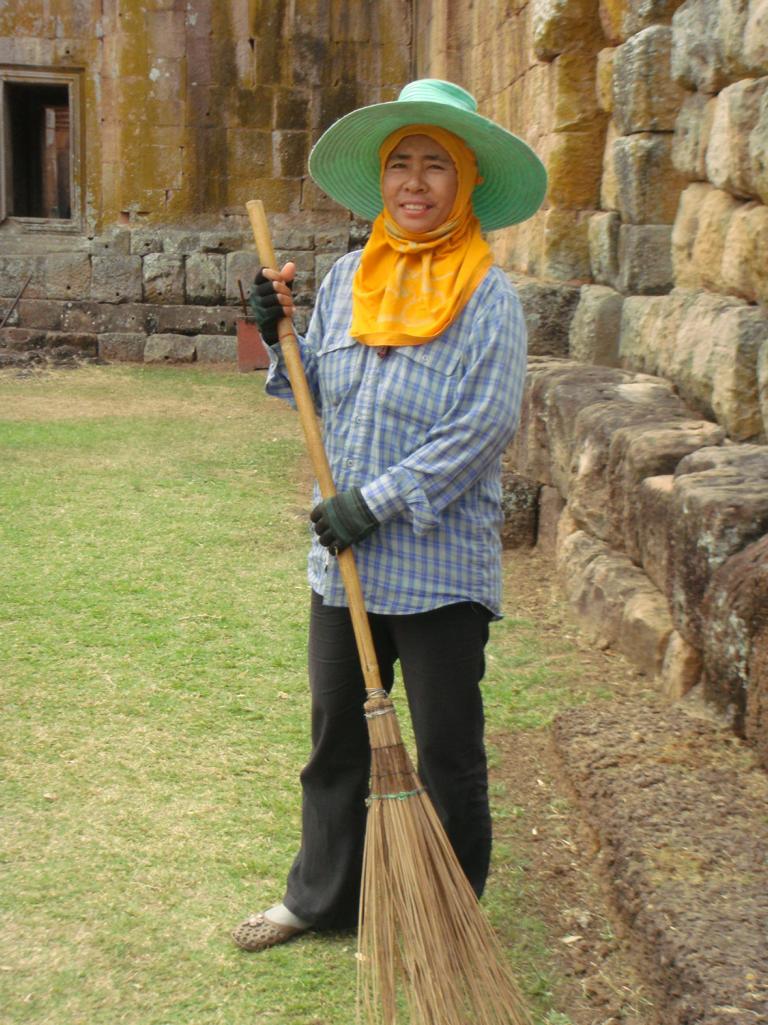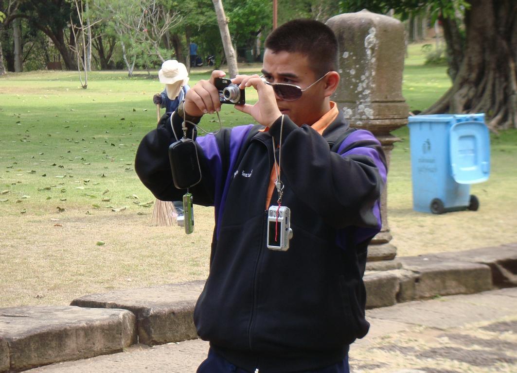 Map overview … Überblick …It looked like early in the morning – and that’s what it was. Es sah aus wie früh am Morgen – und so war es ja auch.Stop at a gas station. Time to buy food, hit the restrooms and … Halt an einer Tankstelle. Zeit, etwas zu essen zu kaufen, die Toiletten aufzusuchen und …… take a nap. No, that bus didn’t belong to our group. … ein Schläfchen zu halten. Nein, der Bus gehörte nicht zu uns.Straight on … Immer weiter geradeaus …I’m sure that people on the busses were travelling more comfortably … Sicherlich hatten es die Passagiere in den Bussen etwas bequemer …Next stop. Everyone wanted to arrive at the destination … but it was good to see that the drivers were not rushing, not pushing, took their time to rest. Nächster Halt. Jeder wollte gerne schnell ankommen … aber es war beruhigend zu sehen, daß die Fahrer nicht nur fuhren sondern auch auf ihre Ruhezeiten achteten.This turn looked pretty well updated in terms of road safety: Warning signs, concrete barriers, red paint and rough surface on the lane leading downwards – but in the end Thailand was successful in its hard efforts to gain the top rank in the list of countries with the most traffic fatalities! Diese Kurve sah bezüglich der allgemeinen Verkehrssicherheit ziemlich gut aus: Warnschilder, Betonbarrieren, rote Farbe und ein aufgerauhter Fahrbanbelag auf der abwärts führenden Spur – aber letztendlich war Thailand in seinen Bemühungen, die Spitzenposition bei Verkehrstoten zu halten, wieder einmal erfolgreich!We arrived at the bus park where local vendors were unloading and preparing their goods … Wir kamen am Busparkplatz an und sahen, wie örtliche Händler ihre Waren abluden und zum Verkauf vorbereiteten …Listening to first instructions … Es gab erste Anweisungen …Obviously not everybody was really interested … Offenbar war nicht jeder daran interessiert …Eyes to the left … Augen nach links …… or to the right? … oder doch nach rechts?I think, I missed a new trend in fashion … Ich glaube, diesen Modetrend habe ich verpasst …Crochet appeared to be quite popular amongst male students … This one here tries to put another stone on top of a small pyramid. A cairn is a human-made pile of stones. In modern times, cairns are often erected as landmarks. But they have also been built and used as burial monuments; for defense and hunting; for ceremonial purposes, sometimes relating to astronomy; to locate buried items, such as caches of food or objects; and to mark trails, among other purposes. Despite that – in Thailand it’s regarded as a sign of good luck if the top stone doesn’t fall off. Häkeln schien unter den männlichen Schülern ziemlich populär zu sein … Dieser hier versuchte gerade, einen kleinen Stein auf die Spitze einer Steinpyramide zu setzen. Ein Steinhaufen besteht einfach aus von Menschenhand aufgeschichteten Steinen und wird heute überwiegend als Wegzeichen errichtet. Aber sie sind auch als Grabzeichen gesetzt worden; zur Verteidigung und Jagd; zu feierlichen Anlässen; im Zusammenhang mit Astronomie; um vergrabene Gegenstände wie Boxen für Nahrung oder Werkzeuge aufzufinden und um Wege zu markieren. Daneben gilt es in Thailand als Zeichen von Glück, wenn der oberste Stein nicht wieder herunterfällt.Prasat Hin Phanom Rung is a Khmer temple complex, built on the rim of an extinct volcano. It has been built of sandstone and laterite between the 10th and 13th century. Thailand’s Department of Fine Arts spent 17 years restoring the complex to its original condition. In May 1988, the park was officially opened by Princess Maha Chakri Sirindhorn and in 2005 the temple was submitted to UNESCO for consideration as a future World Heritage Site. Prasat Hin Phanom Rung ist ein Tempelkomplex der Khmer, erbaut auf dem Rand eines erloschenen Vulkans. Hergestellt zwischen dem zehnten und dreizehnten Jahrhundert aus Sandstein und Laterit. Mitarbeiter des thailändischen Ministeriums für bildende Künste verbrachten 17 Jahre damit, den Komplex in seinen ursprünglichen Zustand zu bringen. Im Mai 1988 wurde der Park von Prinzessin Maha Chakri Sirindhorn offiziel eröfffnet und 2005 wurde die Anlage der UNESCO mit dem Hintergrund vorgestellt, sie in Zukunft als Weltkulturerbe anzuerkennen.After listening to a few lessons in history about the place, students were free to make their own way around … Erst gab es einige Vorträge zur Geschichte der Anlage, dann durften sich die Schüler ohne Aufsicht umsehen …What am I looking at here …? Is it a door or a window? Was kann man hier erkennen? Eine Tür oder doch eher ein Fenster?Probably a door – because the former window openings looked different. They were equipped with small pillars to ensure a proper ventilation and keep unwanted animals outside … Wahrscheinlich eine Tür – weil die alten Fensteröffnungen doch noch anders aussahen. Sie waren mit kleinen Säulen versehen, die für eine gute Belüftung sorgen und unerwünschte Tiere fernhalten sollten …Pushing at least 200 litres of water on a grass surface – not an easy job! Mal eben mindestens 200 Liter Wasser über den Rasen schieben – keine einfache Aufgabe!The best place to take off the cap and show the bald melon … Der beste Ort um das Cap abzunehmen und die kahle Melone zu zeigen …The teacher and the gang … Die Lehrerin und die Gang …Common picture today: Many students asked for photos with friends or a teacher. So – as soon as one person volunteered to be the photographer – other students gave him resp. her the camera, ran back to their group of friends before screaming: „My camera, too.“ or „Wait, one more with my camera“. Heute ein oft gesehenes Bild: Viele Schüler wollten gerne Fotos mit ihren Freunden oder einem Lehrer haben. Sie fragten jemanden und sobald sich jemand dieser Aufgabe angenommen hatte, wurde diese Person mit den Kameras anderer Schüler behängt. Dann liefen die Sch