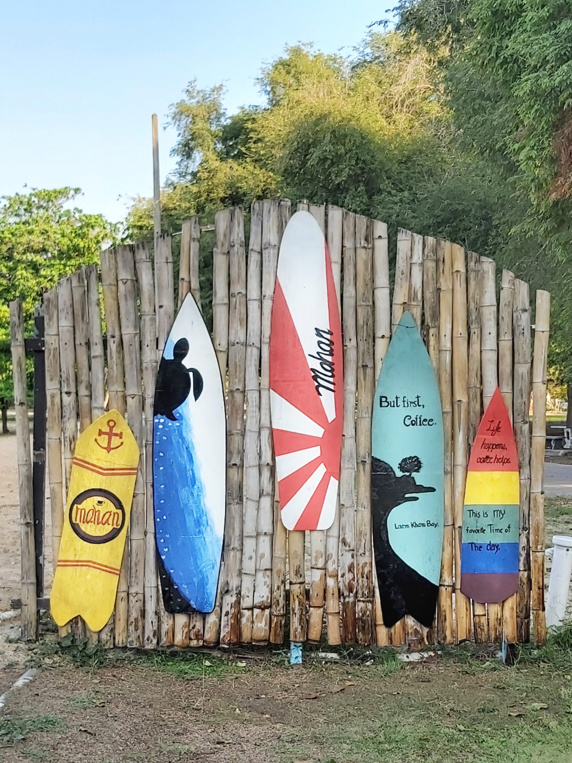 Ich wundere mich immer noch warum so viele Cafes mit Surfbrettern dekoriert sind. Thailand ist nicht unbedingt für hohe Wellen und Surfspots bekannt.