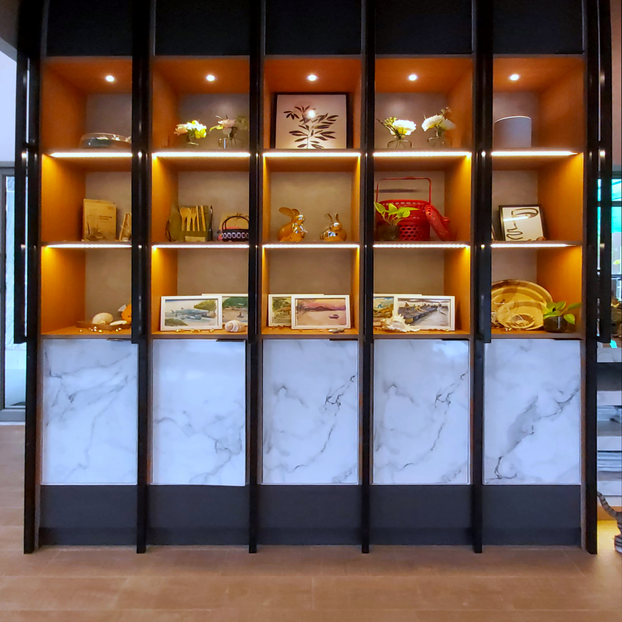 Towards the bay the coffee shop opens up and offers cozy seatings.