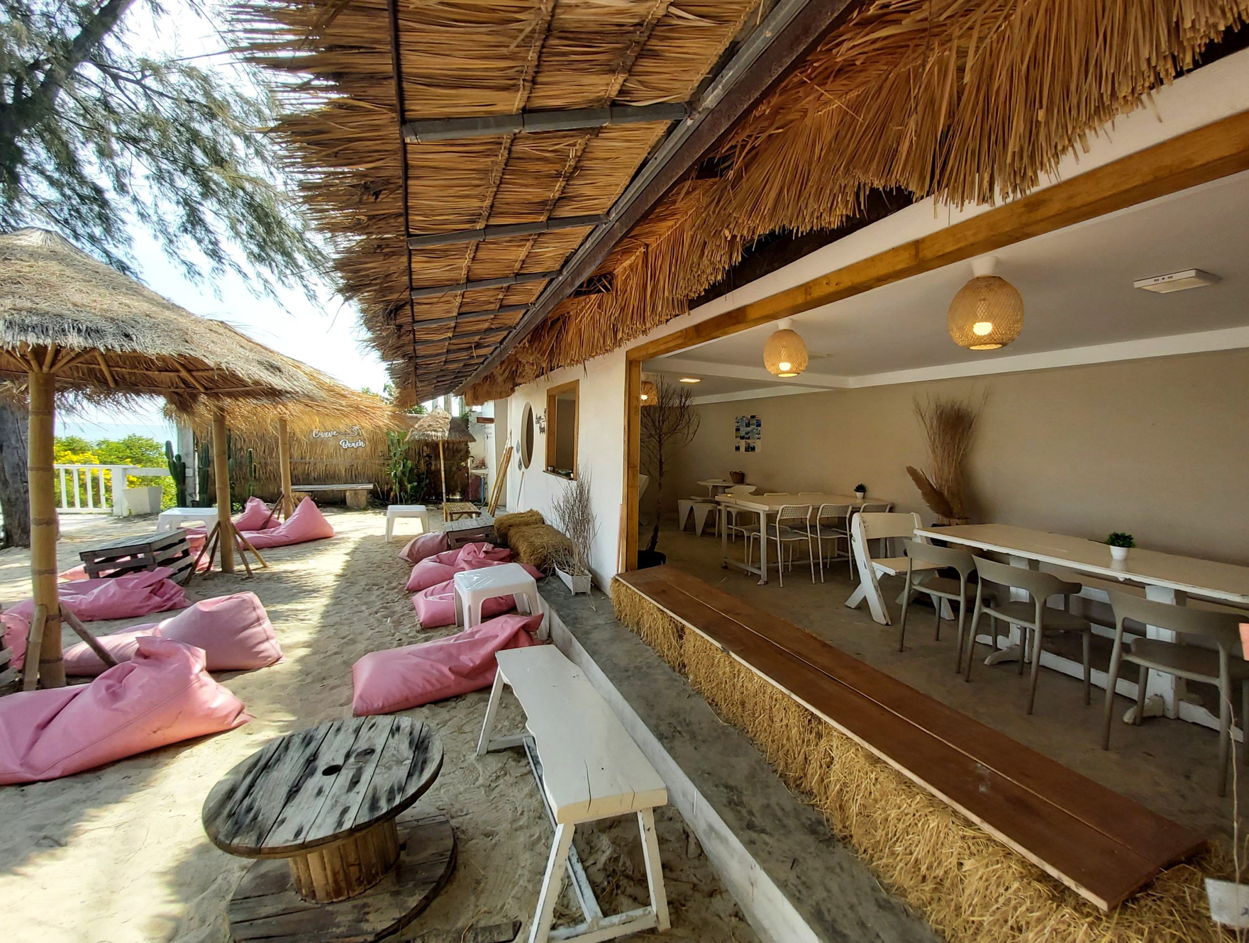 Zur Bucht hin öffnet sich das Cafe und bietet gemütliche Sitzgelegenheiten an.