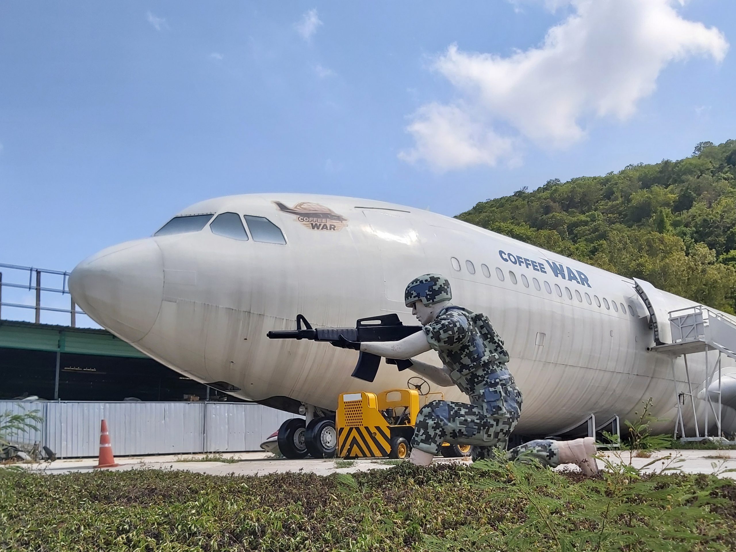 Das Flugzeug ist echt und in der Nähe steht ein noch größeres.