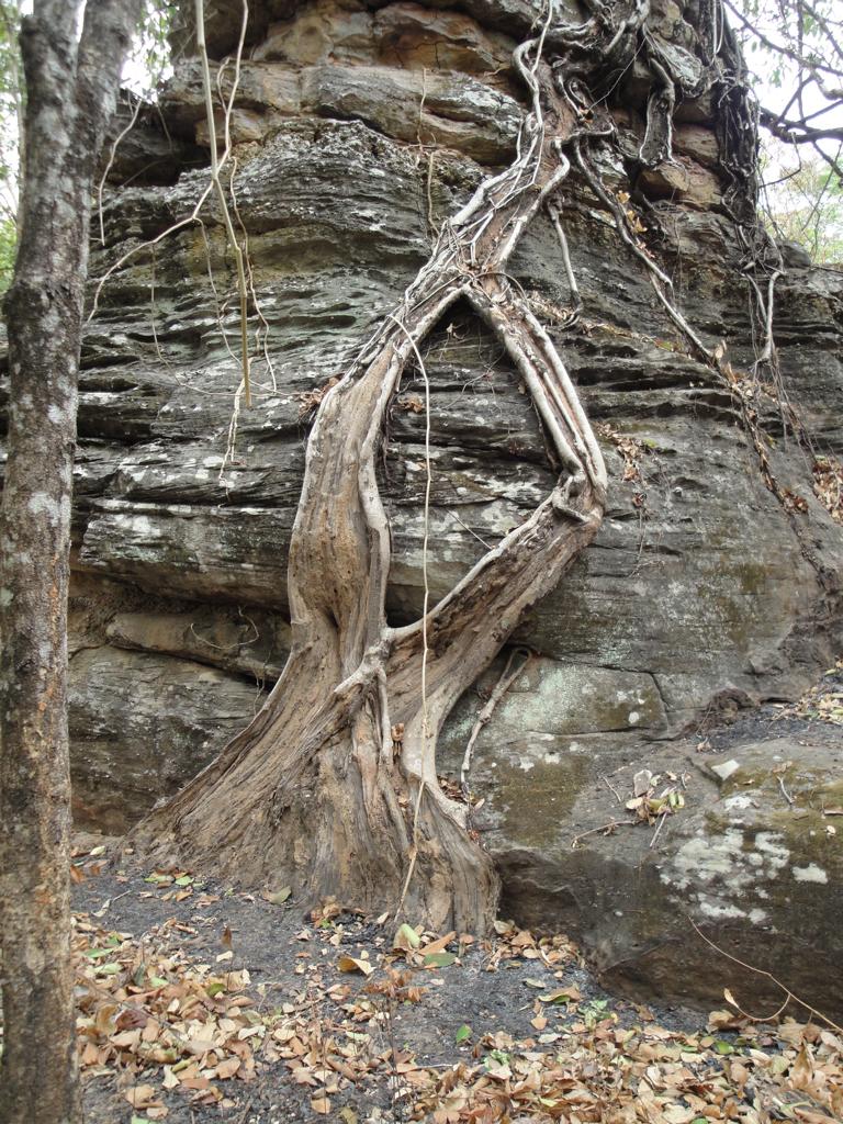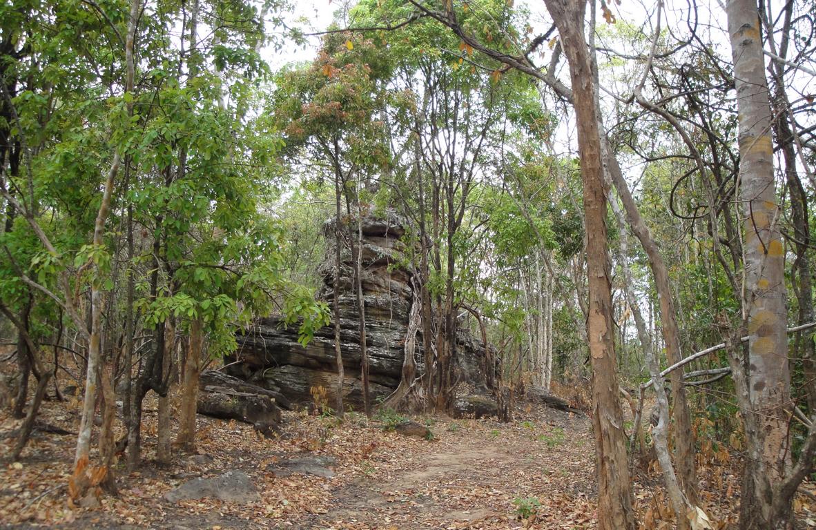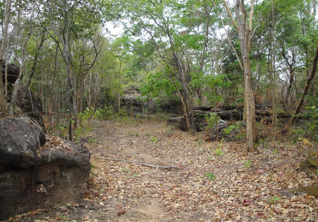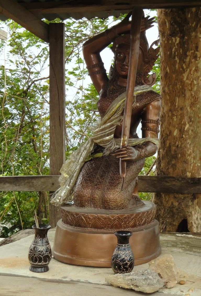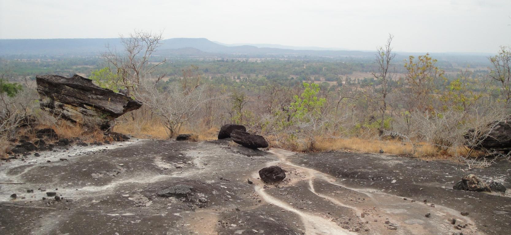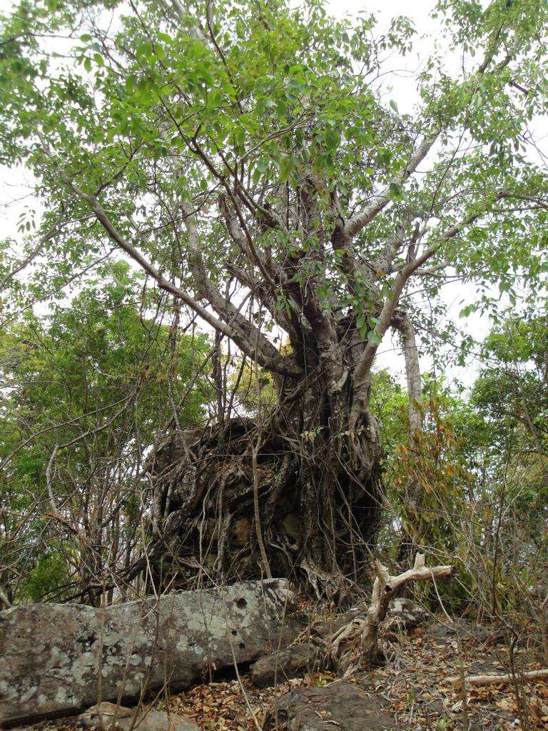 Tour overview … Überblick …The closer together the lines are – the steeper the landscape! As you can see – the contour lines on northern side of the mountain are very close to each other. Je dichter die Höhenlinien zusammenliegen, desto steiler ist das Gelände! Wie man sehen kann – die Höhenlinien an der nördlichen Seite des Berges liegen sehr dicht aneinander.Look at the elevation profile on the right side – it was really very steep. Hier kann man den Steigungsverlauf erkennen – ganz rechts wurde der Weg wirklich sehr steil.Those 2 signs lead me to the mountain … Diese zwei Schilder führten mich zu dem Berg …I didn’t go to that mountain – but it looked similar, yes. In the foreground one of many water basins – necessary to hold water for several months until the beginning of the next rainy season … Ich bin nicht zu diesem Berg gefahren – aber er sah ähnlich aus. Im Vordergrund eines von vielen Wasserbecken – nötig, um Regenwasser über mehrere Monate zu speichern bis die nächste Regenzeit Nachschub bringt …Then the landscape turned „rocky“ … Dann wurde die Landschaft etwas „felsiger“ …… but luckily there was something like a path to ride along. … aber glücklicherweise gab es immer noch einen Pfad um weiterzufahren.Nobody around, very quiet. I did not her any voices, cars, motorcycles – nothing! Ok, maybe a few birds … Niemand hier, sehr still. Ich habe keine Stimmen, Autos, Roller gehört – nichts! Ok, vielleicht einige Vögel …Updating this around 13 years after taking that tour … it’s not easy or even impossible to remember on which side of the mountain I took every single photo. Jetzt, ungefähr dreizehn Jahre nach der Tour … ist es nicht einfach, sich daran zu erinnern, auf welcher Seite des Berges ich jedes einzelne Foto gemacht habe.But this photo must have been taken on the north-western side – because it’s possible to see the Huay Muk water reservoir in the background. Aber dieses Bild habe ich wohl an der Nordwest-Ecke des Berges aufgenommen – weil man im Hintergrund das Huay Muk Reservoir erkennen kann.1 second? Doesn’t last long – we all know. 1 minute? Can already last long – depending on the situation. 1 hour? Nobody likes to wait that long for food in a restaurant or to meet someone. 1 day? As a child a day meant something that nobody could figure. 1 week? Imagine being sick for 1 week – too long. 1 month? 1 year? 10, 100 years? Nothing compared to the age of those rocks here. They are really very old and exist for a really very long time …. And that means: Not several hundred or thousand years! That would be nothing. The shape of the rocks is the result of at least 100 million years of natural erosion! Eine Sekunde? Dauert nicht lange – wissen wir alle. Eine Minute? Kann abhängig von der Situation schon lange dauern. Eine Stunde? Niemand möchte gerne so lange auf sein Essen im Restaurant oder auf das Erscheinen einer Person warten. Ein Tag? Als Kind war das etwas, das man nicht genau definieren konnte. Eine Woche? Man stelle sich vor, eine Woche lang krank zu sein – das ist zu lang. Ein Monat? Ein Jahr? Zehn, hundert Jahre? Das ist nichts im Vergleich zu dem Alter dieser Felsen hier. Sie sind wirklich sehr alt und es gibt sie schon seit sehr langer Zeit … und das bedeutet: Nicht nur einige hundert oder tausend Jahre! Das wäre ja nichts. Die Form der Felsen ist das Ergebnis von mindestens 100 Millionen Jahren natürlicher Erosion!The view was impressive … Der Ausblick war schon beeindruckend …It looked like someone had been here before … Sah so aus als ob hier schon mal jemand gewesen wäre …Where are the dinosaurs …? Wo sind die Dinosaurier …?I vaguely remember that I parked the motorcycle somewhere and kept on walking … Ich erinnere mich vage daran, daß ich den Scooter irgendwo abgestellt habe und zu Fuß weitergegangen bin …… but there wasn’t much of a change. After every corner I expected something like a building, more rocks, a viewpoint … but it took me while to get to … aber die Umgebung änderte sich nicht wirklich. Nach jeder Ecke habe ich etwas wie ein Gebäude, mehr Felsen oder einen Aussichtspunkt erwartet … aber es dauerte schon noch etwas bis ich …… this house. That must have been one of the monk’s accomodation I saw on the sign. …dieses Haus erreichte. Das muss eine der Unterkünfte für Mönche gewesen sein, die auf dem Schild unten ausgewiesen waren.Oh, a bench. Have a seat, please … Oh, eine Bank. Bitte Platz nehmen …Yes, nobody coming. It looked pretty clean … Ja, es kam tatsächlich niemand. Die Bank sah sogar ziemlich sauber aus …… and provided a fantastic view. … und bot einen fantastischen Ausblick.So – I sat down and tried to rest a bit after the tiring climb. So – ich habe mich hingesetzt und versucht, mich etwas von dem anstrengenden Aufstieg zu erholen.A slightly better view on the water reservoir – more than 3 kilometres away. Ein etwas besserer Blick auf das Wasserbecken – mehr als drei Kilometer entfernt.This sign was hanging from a tree branch in front of me – saying that there is a cliff ahead! Try to look at the landscape behing, around the sign – and you will know that it was not a joke. Dieses Schild hing von einem Ast vor mir – darauf stand, daß weiter vorne ein steiles Cliff liegt! Wenn man am Rand des Schildes vorbei schaut, kann man sich vorstellen, daß es da wirklich sehr steil runter ging und die Warnung kein Scherz war.This statue didn’t look typical Thai – but given the fact that Buddhism has its origin in India – it makes kind of sense. Diese Statue sah nicht typisch thailändisch aus – aber wenn man bedenkt, daß der Buddhismus aus Indien stammt, macht das Aussehen schon eher Sinn.Another, old sign – warning of a dangerous path ahead … Noch ein altes Schild – mit der Warnung vor einem gefährlichen Weg …… but I made it without problems to a Buddha statue