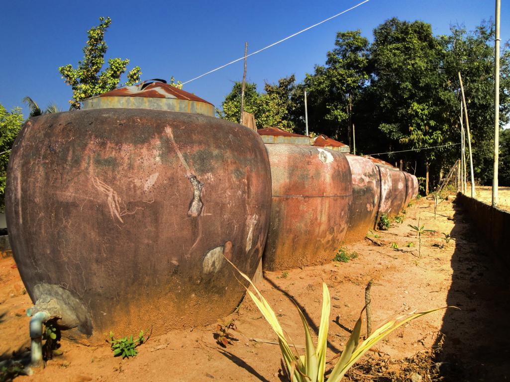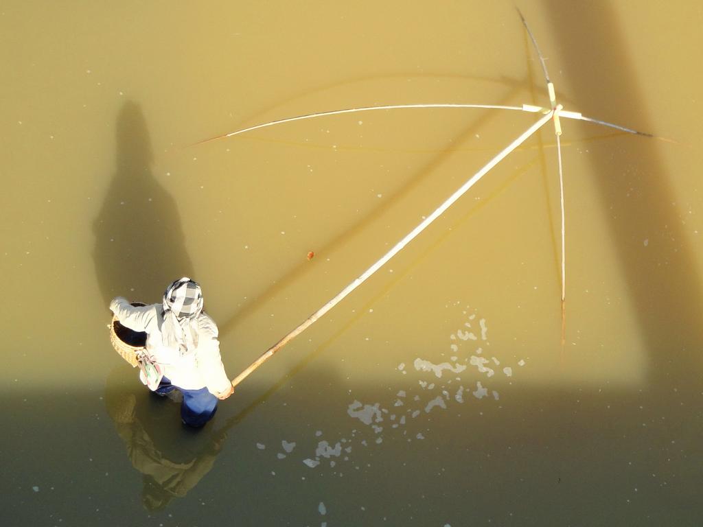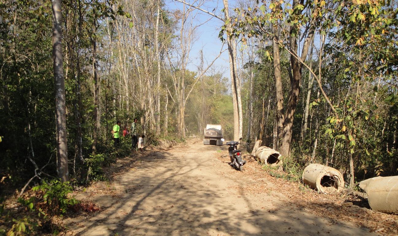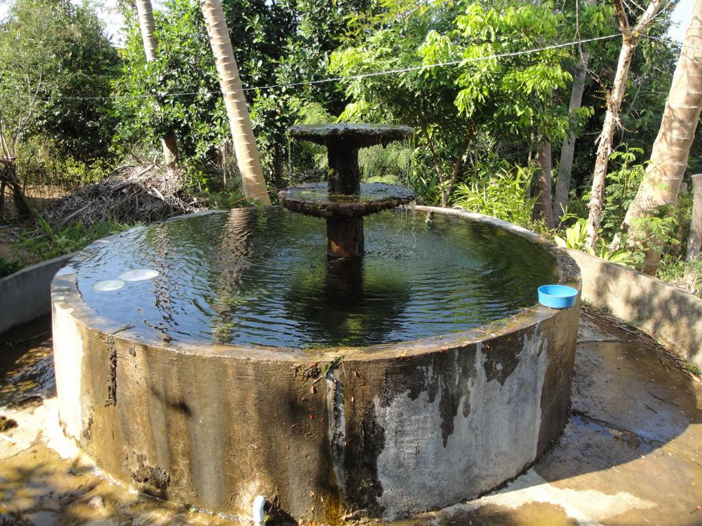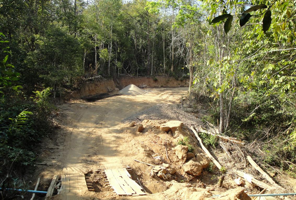 Area overview … I parked my motorcycle somewhere in Ban Bung and we started walking from there – around 6 km. Parts of the yellow line don’t show the real track. But due to my lack of memory and non-existing maps with the real trails, I tried to show a route that pretty much represents our tour on this day. Überblick über die Gegend … Ich parkte meinen Roller irgendwo in Ban Nuang und wir gingen los – etwa 6 Kilometer. Teile der gelben Linie zeigen nicht den tatsächlich zurückgelegten Weg. Aber wegen meiner Vergesslichkeit und der Unzulänglichkeit der Karten habe ich versucht, einen Weg nachzuzeichnen, der annäherungsweise unseren Weg an diesem Tag sichtbar macht.Crossing the … small river. Hier konnten wir den kleinen Fluss queren.In the background it’s the other bridge. On the way back we crossed over there. Im Hintergrund kann man die andere Brücke erkennen. Dort überquerten wir den Fluss auf dem Rückweg.My 2 guides today. The young man on the right was the elected student’s spokesman and one of the better, smarter students. He brought his friend and I think, the tour was something like … saying ‚Thank you for teaching here‘. But maybe, they just wanted to practice their Einglish in a more relaxed atmosphere than at school. Anyway – we had a nice and interesting day. Meine heutigen Führer. Der junge Mann rechts im Bild war der gewählte Schülersprecher und einer der besseren, klügeren Schüler. Er hatte seinen Freund mitgebracht und die Tour sollte einfach ein ‚Danke, daß Sie hier unterrichten‘ sein. Aber vielleicht wollten sie ja auch nur in einer entspannteren Umgebung als in der Schule ihr Englisch verbesseren. Egal – wir hatten einen schönen und interessanten Tag.The combination of green leaves and the red flower in the centre made it look very nice … Durch die Kombination von grünen Blättern und der roten Blüte im Zentrum sah diese Pflanze seht hübsch aus …I can’t remember who spotted the dead bug on the ground. But the students told me to collect and keep its shiny wings. I was surprised how rigid they felt. No way to bend them – they would brake. Ich kann mich nicht mehr daran erinnern, wer das tote Insekt auf dem Boden gesehen hatte. Aber die Schüler sagten mir, ich solle die glänzenden Flügel aufheben. Ich war überrascht, wie fest sie sich anfühlten. Hätte ich versucht, sie glatt zu drücken – wären sie zerbrochen.Climbing higher and higher … overlooking the valley where we came from. Wir stiegen immer höher … und konnten auf das Tal blicken, aus dem wir gekommen waren.There was a path, yes. But the students were a few years younger than their old teacher … Ja, es gab einen Weg. Aber die Schüler waren einge Jahre jünger als ihr alter Lehrer …There, in that village, next to the house – thats’s where I parked my motorcycle. Look! Can you see it? Da, in dem Dorf, neben dem Haus – da habe ich meinen Roller abgestellt. Guck doch mal genau hin! Siehst Du ihn?Good to see that the way began to follow a certain level. Obviously we had reached the ridge of the mountain. Ich war froh, zu sehen, daß sich der Weg jetzt auf gleichbleibendem Niveau bewegte. Anscheinend hatten wir den Bergrücken erreicht.And finally we reached the place they wanted me to visit today. Und endlich erreichten wir den Ort, den sie mir heute zeigen wollten.Not busy here, no other visitors. But we saw a man who appeared to perform some kind or repair work. Spotting the motorcycle made me think … why did we had to walk? Ok, it was part of the experience. Nicht viel los hier, keine anderen Besucher. Aber wir sahen einen Mann, der etwas zu reparieren schien. Als ich das Motorcycle sah, überlegte ich kurz … warum mussten wir laufen? Ok, der Weg war das Ziel.Huge tanks to collect and store rain water. Große Tanks um Regenwasser zu sammeln und zu speichern.The small blue bowl made me think … is this the place to take a shower? Die kleine, blaue Schüssel stimmte mich nachdenklich … war das hier der Ort um eine Dusche zu nehmen?From now on we followed the more convenient way down … Ab jetzt folgten wir dem bequmeren Weg nach unten …… which was obviously still under construction. … der aber offensichtlich noch im Bau war …The workers smiled and waved when they saw me walking with my students. I am sure that not many foreigners made it up and back down to this place. Die Arbeiter lächelten und winkten als sie mich mit den Schülern sahen. Ich bin mir sicher, daß nicht viele Ausländer den Weg zu diesem Ort und zurück gegangen waren.Meanwhile my legs were hurting a bit and it felt good not to climb up or walk down … every flat strech was more than welcomed. Inzwischen schmerzten meine Beine etwas und es fühlte sich gut, weder irgendwo hinaufsteigen noch hinunterlaufen zu müssen … jede ebene Passage kam sehr gelegen.Another view across the valley … Ein anderer Blickwinkel auf das Tal …Protected, tropical wood? Geschütztes Tropenholz?It felt good to be back on ground level again … it was an interesting tour. But I was exhausted. Es fühlte sich gut an, wieder in der Ebene angekommen zu sein … nach einer interessanten Wanderung. Aber ich war erschöpft.Many ‚lonesome‘ trees here in Mukdahan. Years ago declared dead already – but still alive and growing. In Mukdahan standen viele ‚einsame‘ Bäume. Vor Jahren für tot erklärt – aber immer noch am Leben und weiter wachsend.Then we arrived back at the river and someone was fishing. Using mostly natural materials to build a trap to catch fish. Als wir wieder an dem Fluss ankamen, war dort jemand auf der Jagd nach Fischen. Er hatte fast nur natürliche Materialien genutzt um die Falle zu bauen und die Fische zu fangen.This bridge was broken but we could cross via the small dam to get back to where we started from. Diese Brücke war beschädigt aber wir konnten den kleinen Damm nutzen um zu unserem Ausgangspunkt zurückzukehren.