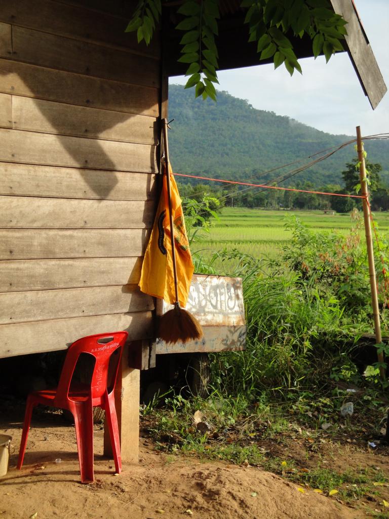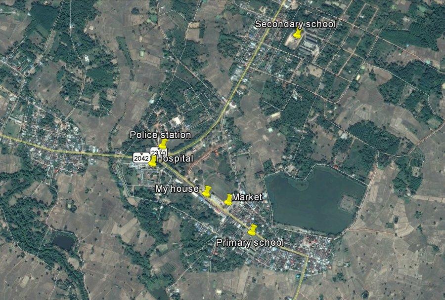 That’s the part of Mukdahan where I spent around 18 months. In diesem Teil der Provinz Mukdahan verbrachte ich ungefähr 18 Monate.When I was looking for a decent place to live, someone told me about this new project. Just finished – at least more or less – and ready to move in. I rented 10% of the whole front. It might sound much but it was only 1 out of 10 units. Als ich nach einer ordentlichen Unterkunft für die Zeit in Nong Sung suchte, erwähnte jemand dieses Projekt. Gerade fertiggestellt – zumindest mehr oder weniger – und bezugsfertig. Ich habe 10% der gesamten Front gemietet. Es mag sich viel anhören aber war ja nur eine von insgesamt 10 EinheitenNature was already trying to claim back its former boundaries … Die Natur versuchte schon, ihre ehemaligen Grenzen zurück zu erobern …Moving in … too much space for a single person and a few bags … but the other options did not meet my requirements. Einzug … eigentlich zu viel Platz für eine Person und einige Taschen … aber die anderen Gebäude genügten nicht meinen Ansprüchen.Every level was filled up with something … these were the three cardboard boxes I sent from Germany to Thailand before I left Germany. Ich hatte in jeder Etage etwas abgestellt … das hier waren die drei Kisten, die ich schon vor meinem Abflug aus Deutschland nach Thailand geschickt hatte.Step in, make yourself at home … Treten Sie ein, fühlen Sie sich wie zu Hause …Doors shut wide open … Die geschlossenen Türen stehen weit offen …After a while it began to look better … Nach einiger Zeit sah es schon etwas besser aus …But the rainy weather caused a few wet surprises … Aber das regnerische Wetter hielt einige feuchte Überraschungen bereit …Especially the rear side of the building lacked proper insulation. Besonders an der Gebäuderückseite fehlte es offenbar an einer ausreichenden Isolierung.So, as we all know – water always finds a way to flow somewhere … So, wie wir alle wissen – Wasser findet immer einen Weg …… and handmade window frames in unprotected, vertical areas provided best conditions for the rain water to flood my house. … und handgemachte Fensterrahmen in ungeschützten, senkrechten Wandbereichen boten dem Regenwasser beste Bedingungen um in das Haus zu fließen.But hey, professional construction work can become boring. Why not try to find new ways of building a house …? Aber hey, professionelles Arbeiten kann langweilig werden. Warum also nicht mal neue Wege des Hausbaus beschreiten …?My neighbourhood … a pharmacy, a laundry, the hairdresser was near the market … Meine direkte Nachbarschaft … eine Apotheke, eine Reinigung. Der Friseur lag in der Nähe des Marktes …One day the excavator came to level the soil in front of the building. Eines Tages machte sich ein Bagger vor dem Gebäude zu schaffen …Dried chilies at the local market. 180 Baht per kilo. Getrocknete Chilischoten auf dem örtlichen Markt. 180 Baht entsprachen zu diesem Zeitpunkt etwa 4.50 Euro.This tree looked like I remember trees from the Savannah in Africa – with a sleeping leopard on a shady branch. Dieser Baum sah so aus wie Bäume, die ich in Filmen aus der Savanne in Afrike gesehen hatte – dort aber mit einem schlafenden Leoparden auf einem der Äste.I got neigbours … Irgendwann zogen auch Nachbarn ein …I ordered these furniture from a carpenter for 9.000 Baht (around 230 Euro). Way better quality than most furniture from the regular stores. Ich hatte diese Möbel für etwa 230 Euro bei einem Tischler bestellt. Viel bessere Qualität als die meisten Möbel aus den normalen Läden.Candlelight dinner? Not really. But it happened quite often that the power was interrupted for hours … Dinner bei Kerzenlicht? Nicht wirklich. Aber es passierte recht häufig, daß der Strom für Stunden ausfiel …The busy main intersection in Nong Sung. The small hospital is hidden behind the trees. Die belebte Kreuzung in Nong Sung. Das kleine Krankenhaus liegt versteckt hinter den Bäumen.And here we have the bus stop and the police station. Und hier die Bushaltestelle sowie der Polizeiposten.Life was slow in Nong Sung. Das Leben verlief ruhig in Nong Sung.Finally I got my first motorcycle. A Yamaha Mio 125 with automatic gear shifting. Now, 9 years later, I still have it and still like it. Irgendwann war mein Scooter abholbereit. Eine Yamaha Mio 125 mit automatischer Schaltung. Jetzt, 9 Jahre später, besitze ich ihn immer noch und bin immer noch froh über den Kauf.I slowly began to explore the area around my house. A bit further than I did before as long as I had to walk … This is a typical path between small forests, rice fields or groups of houses. Langsam begann ich damit, die Gegend in der Umgebung meines Hauses zu erkunden. Etwas weiter als zuvor solange ich zu Fuß unterwegs war … Dies hier ist ein typischer Verbindungsweg zwischen kleinen Wäldern, Reisfeldern oder Häusern.And I found the scenic lake in Nong Sung. Und ich entdeckte diesen schönen See in Nong Sung.In Germany I never regarded myself as someone who liked or was interested in nature. But honestly – I liked it here. It was beautiful. In Deutschland habe ich ich nie als jemanden betrachtet, der an der Natur interessiert ist. Aber ganz ehrlich – mir gefiel es hier. Es war schön.Nothing special about this. But for someone who grew up in a city, just arrived from Bangkok a few weeks ago – it had something special for me. Nichts besonderes hier. Aber für jemanden, der in einer Stadt aufgewachen war, der erst vor einigen Wochen aus Bangkok angereist war – es hatte doch etwas besonderes.Rice fields … Reisfelder …Red plastic chairs – lined up in order. Rote Plastikstühle – in einer Reihe aufgstellt.Another rice filed, closer to the mountains surrounding Nong Sung. Ein anderes Reisfeld, näher an den Bergen, die Nong Sung umgaben.Sunshine, water, clouds and mountains – always worth a photo. Sonne, Wasser, Wolken und Berge – im