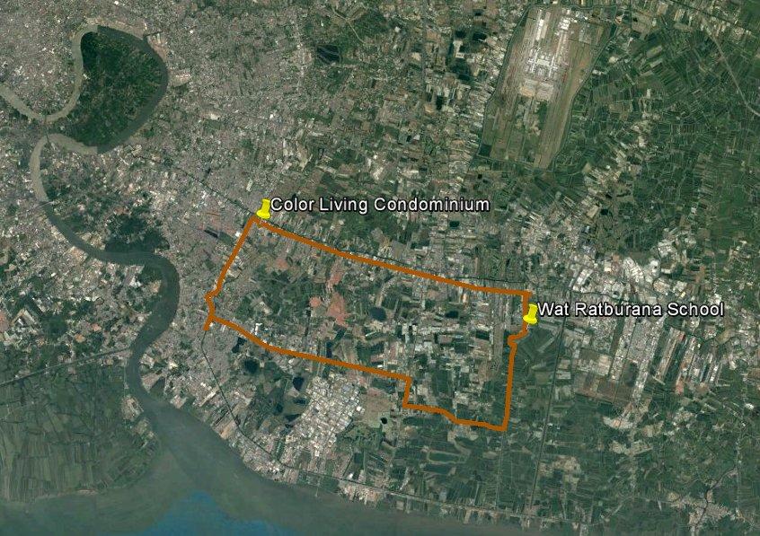 Today I went on a tour along Theparak road in order to check out the way to Wat Ratburana School. Heute machte ich mich auf eine Tour um den Weg zur Wat Ratburana Schule zu erkunden.