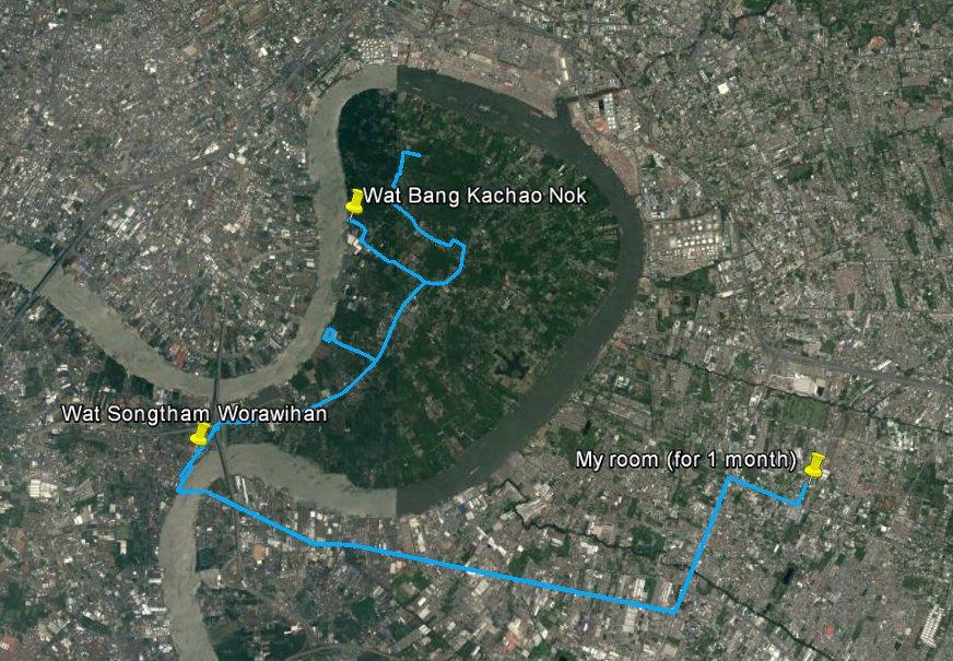 Another tour towards the Chaopraya river. This time I used the ferry to cross and began to explore the green ‚island‘ a little bit. The distance of the trip was prety much exactly 40 km.
