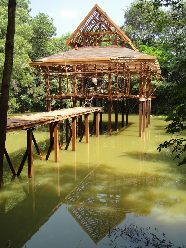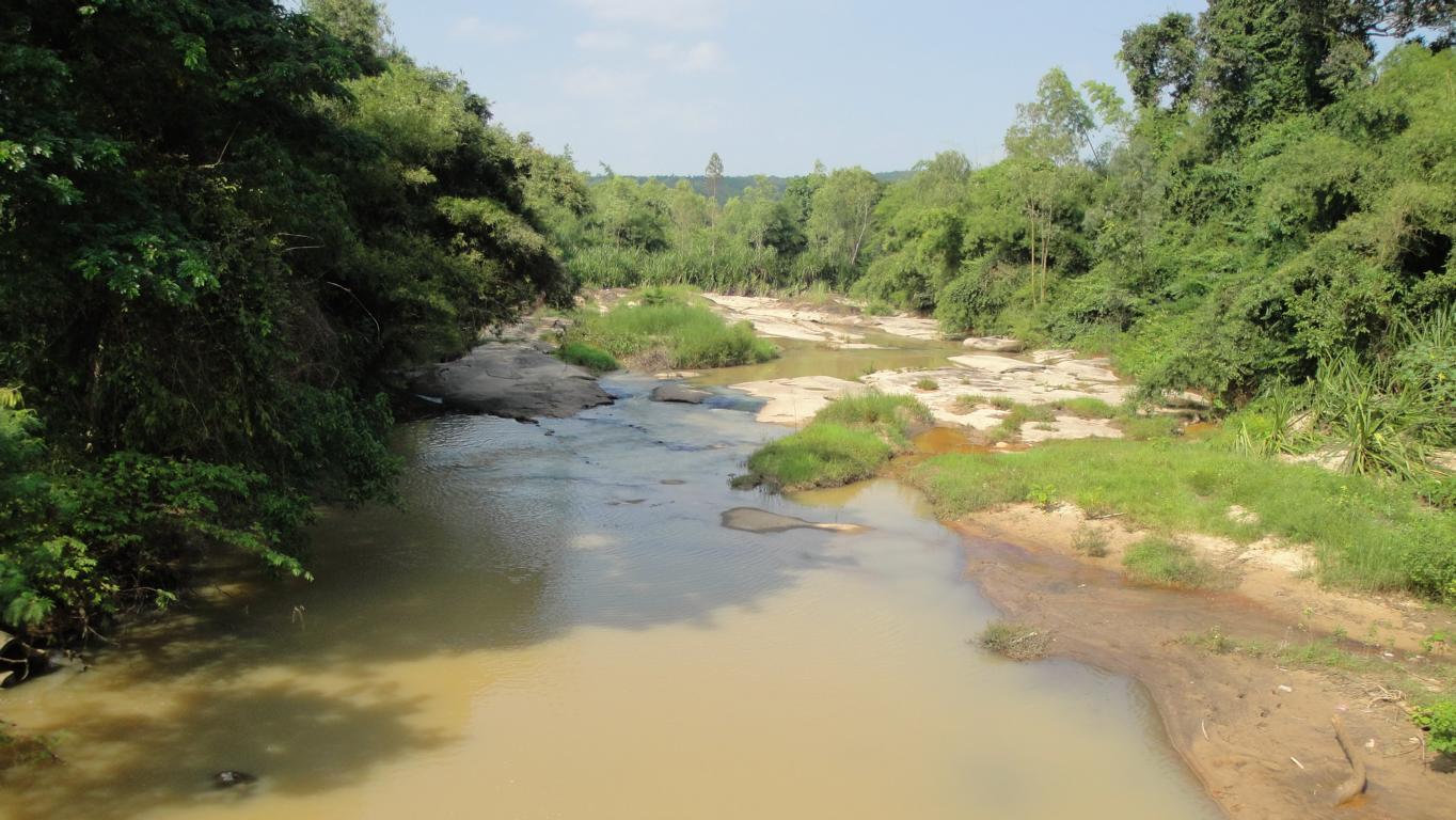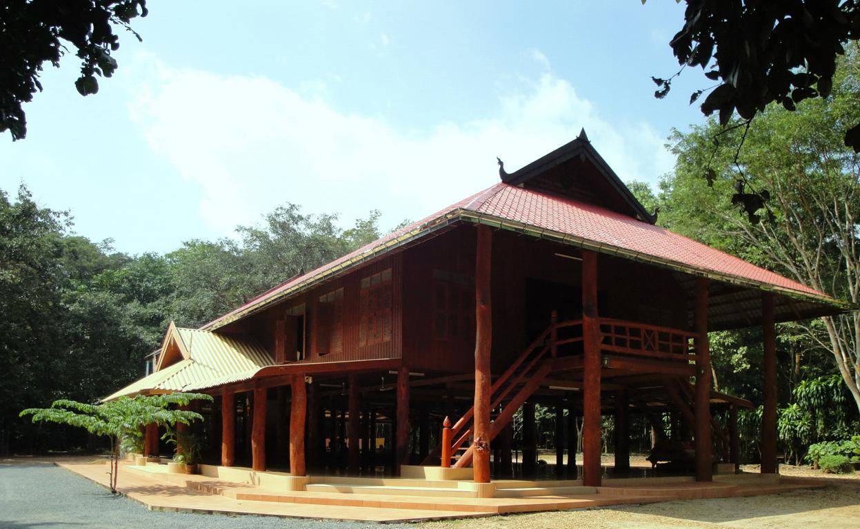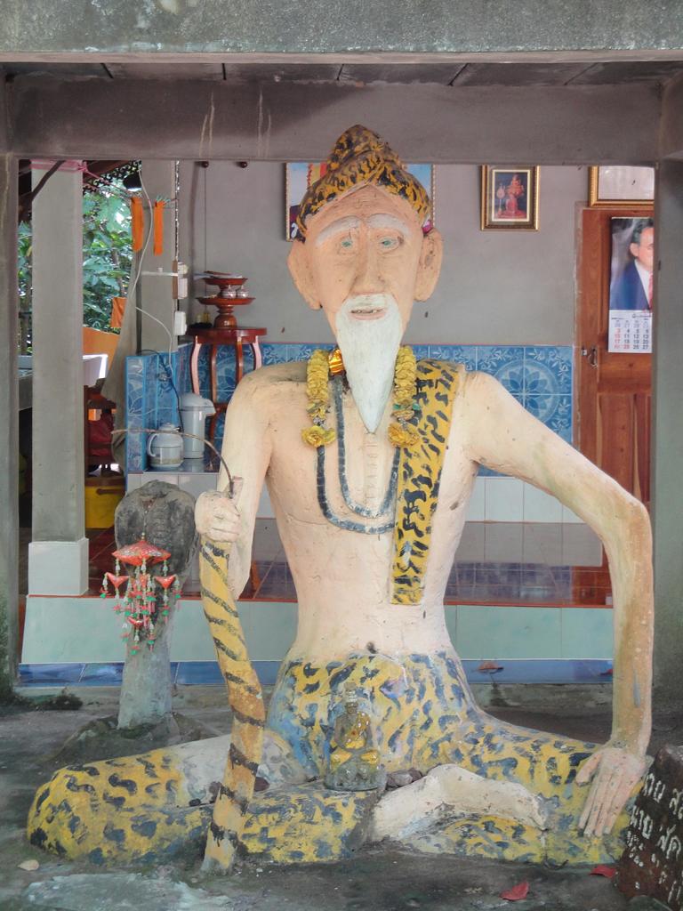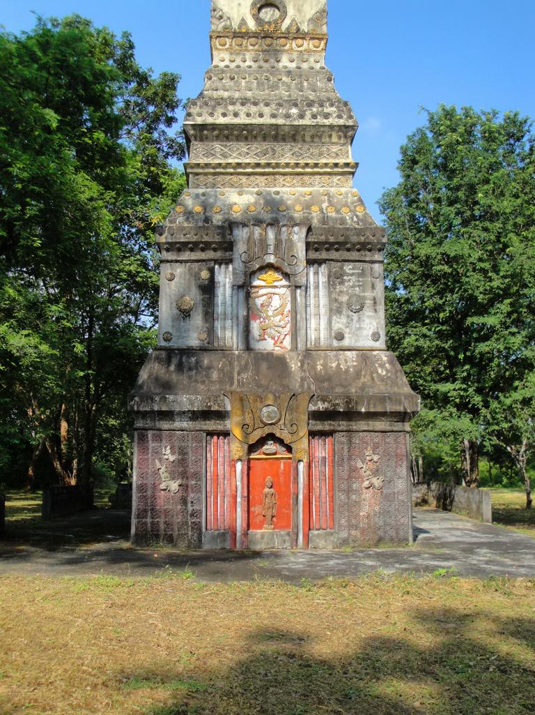The area along the main road to Mukdahan (which is in the upper right corner – but not in this map anymore). Die Karte zeigt den Bereich der Hauptstraße nach Mukdahan (die Stadt liegt weiter oben rechts – ist aber auf dieser Karte nicht mehr zu sehen).The massive, wooden entrance to Wat Pha Khamphironuson. Der wuchtige, hölzerne Eingang zum Pha Khamphironuson Tempel.A small altar with 3 different Buddha statues in front of the main building. Not really spectecular … Ein kleiner Altar mit drei verschiedenen Buddhafiguren. Nicht wirklich beeindruckend …Somewhere nearby I saw the old man waiting for … whatever. Irgendwo in der Nähe entdeckte ich den alten Mann, der auf … was auch immer wartete.The Buddhist wheel on a ‚golden‘ podium. Das buddhistische Rad auf einem ‚goldenen‘ Sockel.A new building under construction. But … in the water? Ein neues Gebäude im Bau. Aber … im Wasser?In Thailand it’s quite common to use rocks as surface for signs. Here you see the sign of … In Thailand ist es ziemlich weit verbreitet, Felsen als Untergrund von Hinweisschildern zu nutzen. Hier sieht man den Hinweis zum …… Wat Pha Su Pattharam. … Pha Su Pattharam Tempel.It appeared to be made entirely of wood. Er schien komplett aus Holz erbaut worden zu sein.The shiny, polished floor gave it a special, clean brighter look than expected. Der glänzende, polierte Boden sorgte für einen ganz besonderen, saubereren Eindruck als erwartet.The old sign of Phrathat Tham Kia. Das alte Zeichen der Pagode Phrathat Tham Kia.Shame on me: I don’t even know how to call this kind of building. It’s neither a typical chedi nor a stupa. Asche über mein Haupt. Ich weiß nicht mal wie man diese Art von Gebäude nennt. Es handelt sich weder um einen typischen Chedi noch um eine Stupa.But the sunlight made it look interesting enough to have a closer look … Aber durch das Sonnenlicht erschien das Gebäude interessant genug um genauer nachzusehen …… and discover a small altar inside – decorated with several Buddha images. … und dabei im Inneren diesen kleinen Altar zu entdecken – geschmückt mit mehreren Buddhafiguren.The walls were decorated with images of antique dancers. Even nowadays you see people wearing this kind of outfit during certain celebrations. Die Wände waren mit Abbildern antiker Tänzer verziert. Sogar heute noch sieht man Leute, die zu bestimmten Gelegenheiten derartige Kleidung tragen.Old – but beautiful. Alt – aber schön.Even the Buddha statue looked a bit … older. Sogar die Buddhafigur sah etwas … älter aus.In Germany I never missed ‚mother nature‘. But I got used to it in Mukdahan and learned to like it somehow. Sometimes I miss the area around Nong Sung … In Deutschland hatte ich nie Sehnsucht nach ‚Mutter Natur‘. Aber in Mukdahan habe ich mich daran gewöhnt und gelernt, sie irgendwie zu mögen. Manchmal vermisse ich die Gegend um Nong Sung …… with its wildlife and … … mit ihren wilden Tieren …… adventurous bridges … … abenteuerlichen Brücken …… over small, peaceful creeks. … über kleine, friedliche Bachläufe.