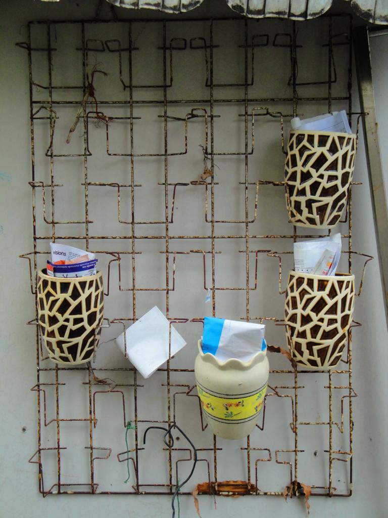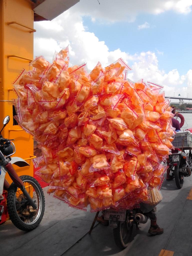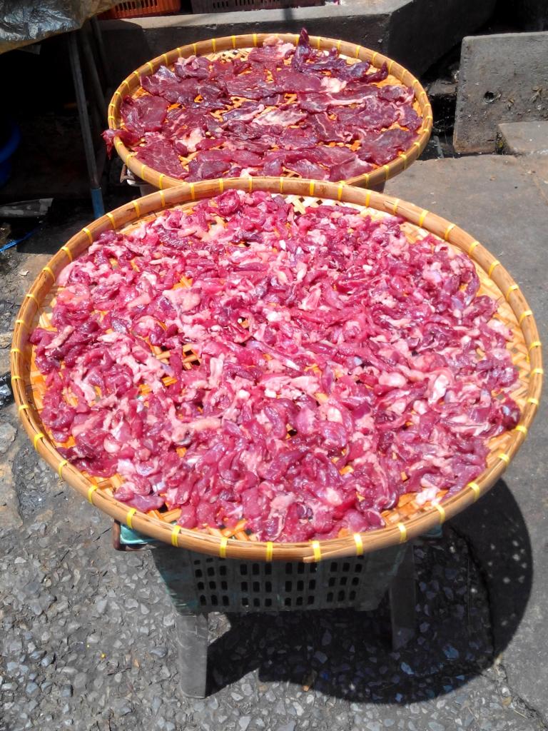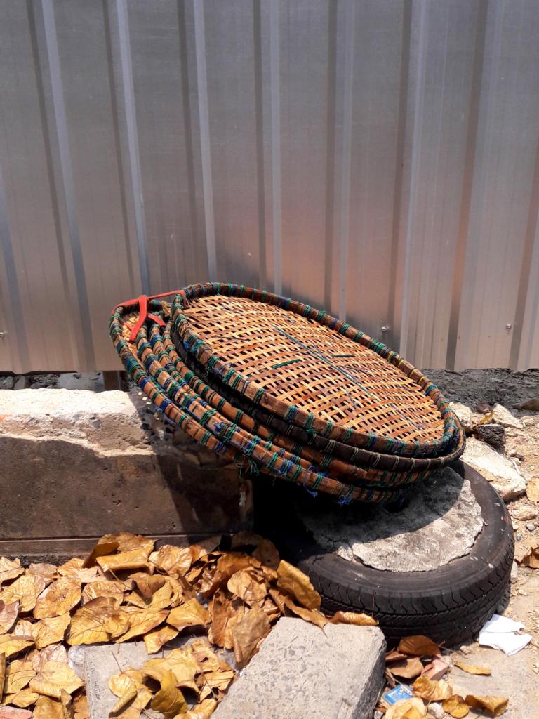 Ready to be picked up – natural material dishes to display food like fishes or fried bananas for sale. Sometimes used to dry pork or beef in the sun. Bereit zur Abholung – ausnatürlichem Material hergestellte Tabletts zur Präsentation von Fisch oder gebratenen Bananen.