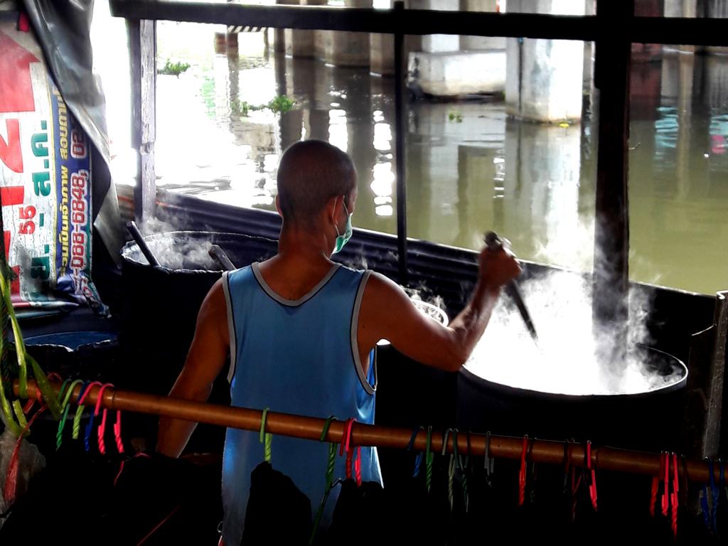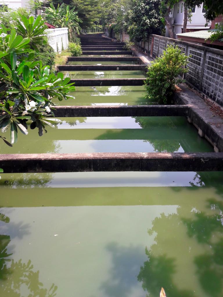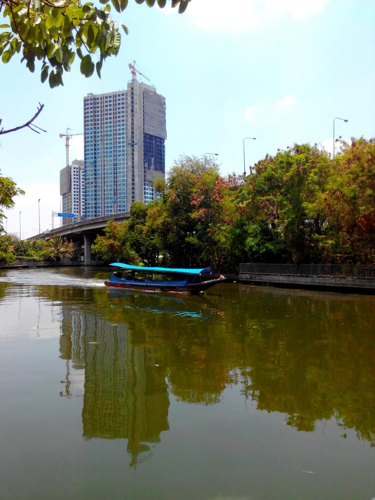 The green khlong. Looking nice – but sometimes it smells disgusting. Der grüne Kanal. Sieht hübsch aus – aber stinkt entsetzlich.