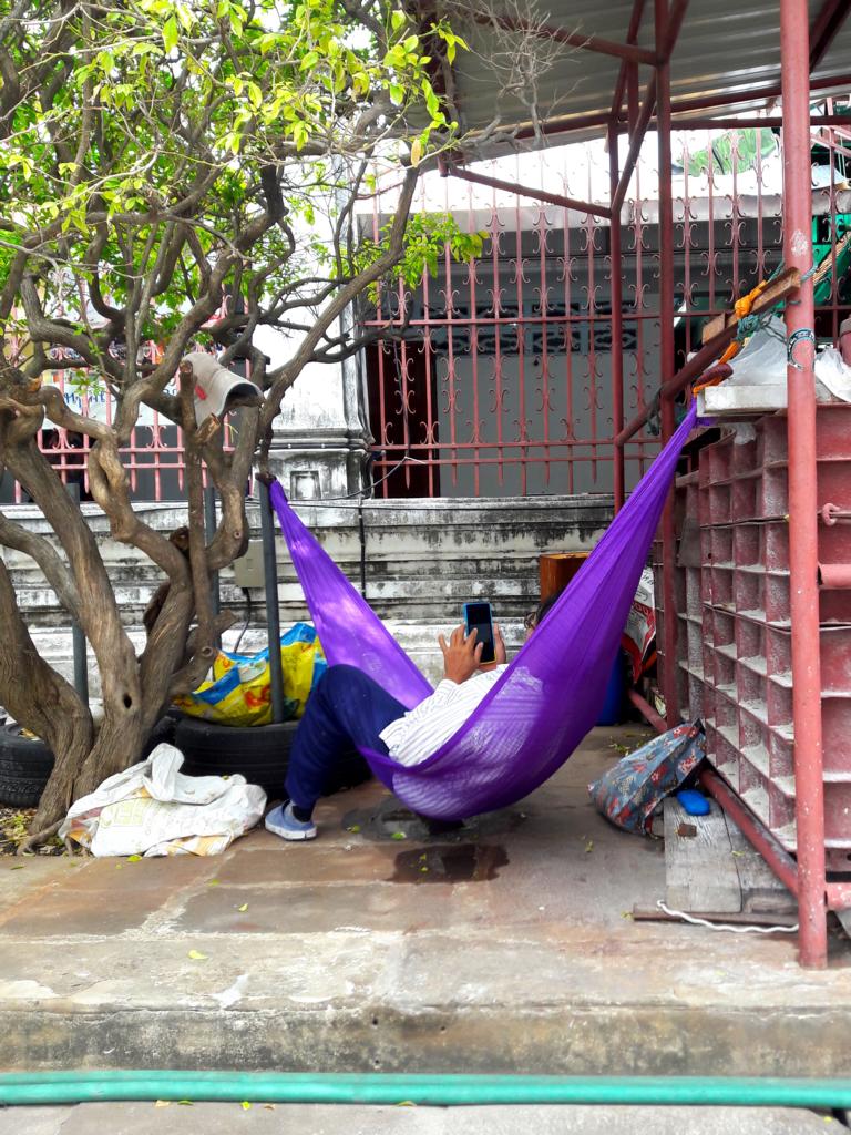 A quiet corner at a busy temple. Sogar im Bereich eines vielbesuchten Tempels findet man immer eine ruhige Ecke.