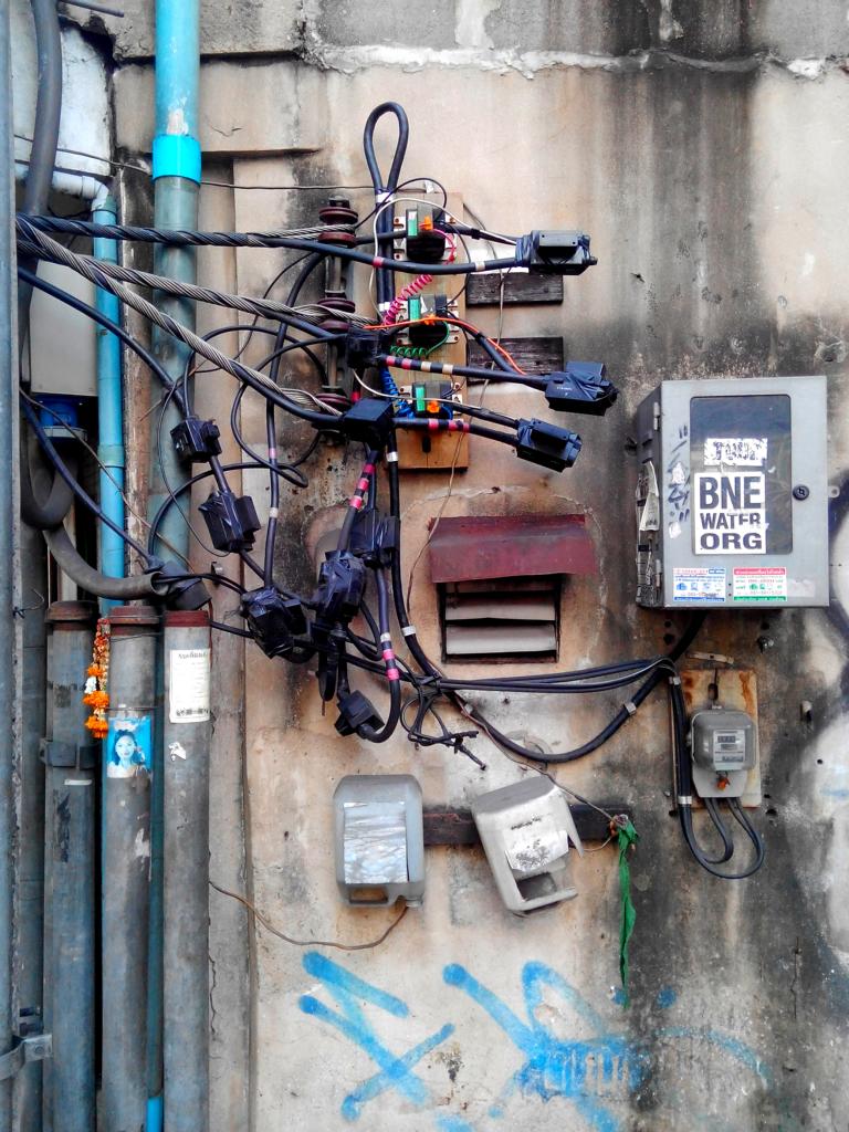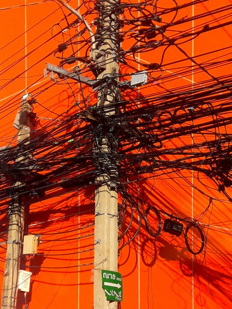Electrical wire installation – Thai style. Kabelverlegung – auf thailändische Art unf Weise.