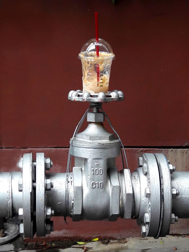 It carries the weight of the huge and probably heavy tube. Stützkonstruktion für das große und wahrscheinlich schwere Rohr.