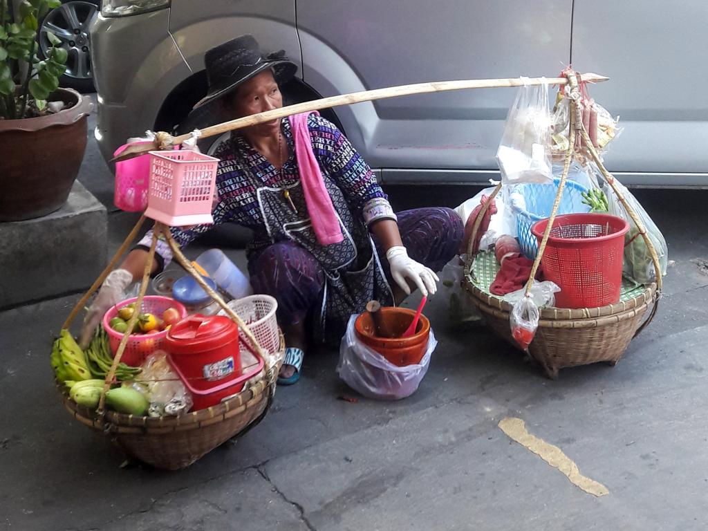 Green papaya salad (som tum) vendor … Straßenhändler, der grünen Papayasalad anbietet …