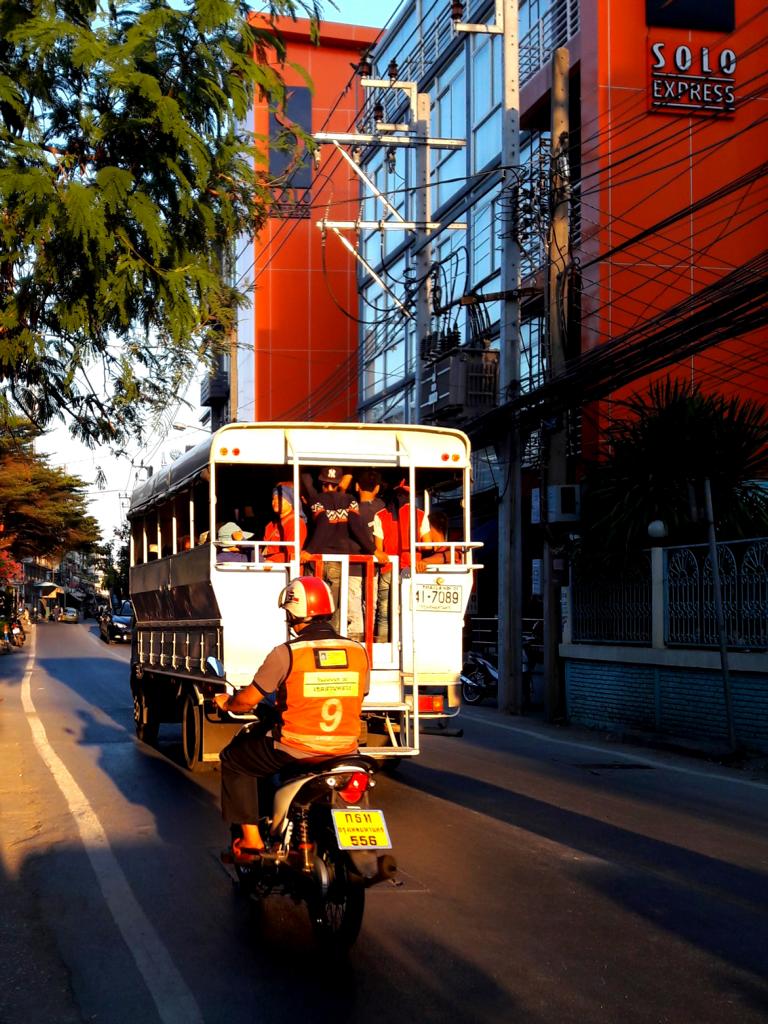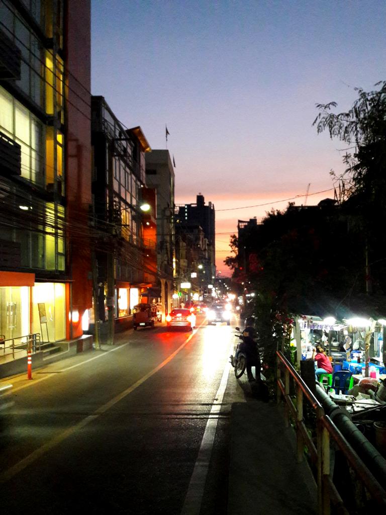 Sun dawning over a small Soi. Sonnenuntergang über einer Seitenstraße.