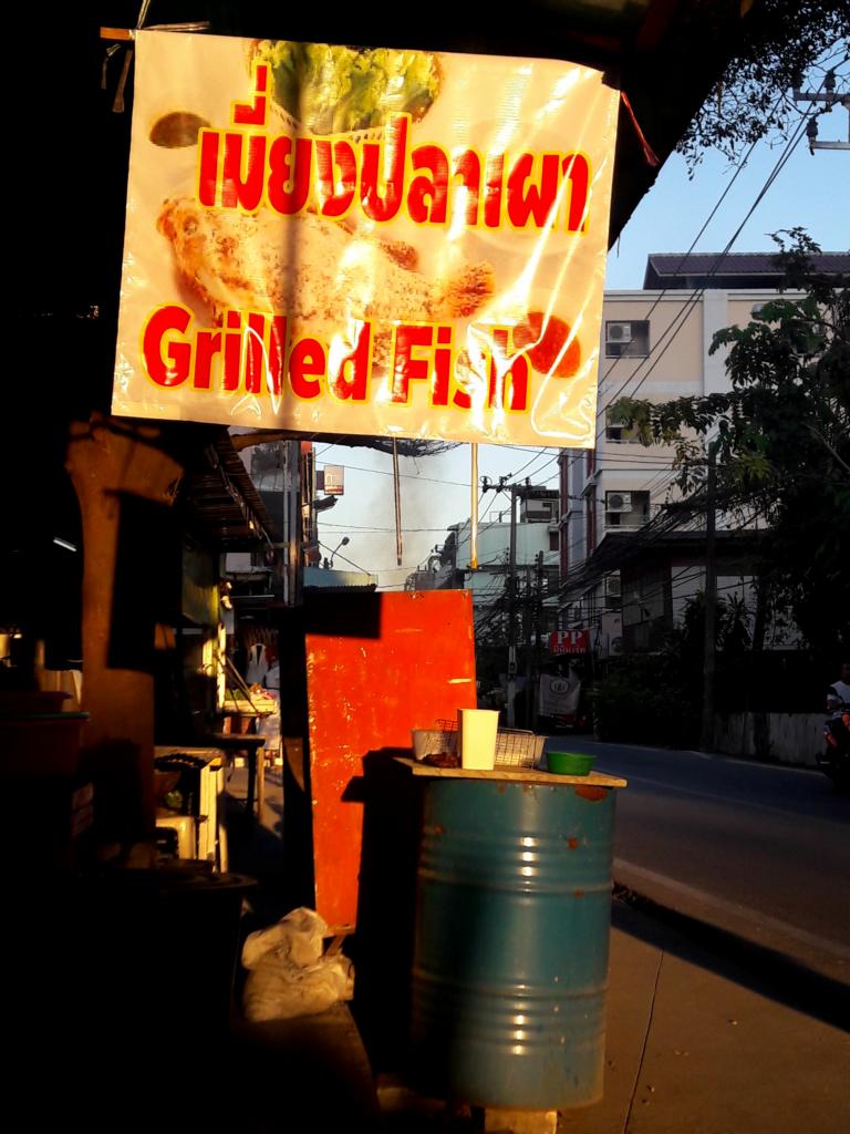Grilled fish and pork … Gegrillter Fisch und Schweinefleisch …