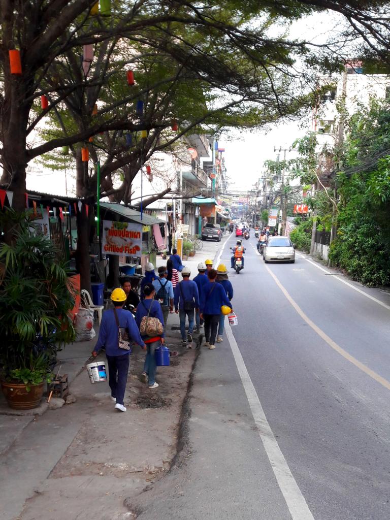 Walking back home – to their containers … Auf dem Rückweg zu den Schlafcontainern …