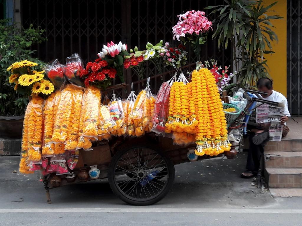 Donation at a temple in Yaowarat (Chinatown). Gabe an einen Tempel in Yaowarat (Chinatown).