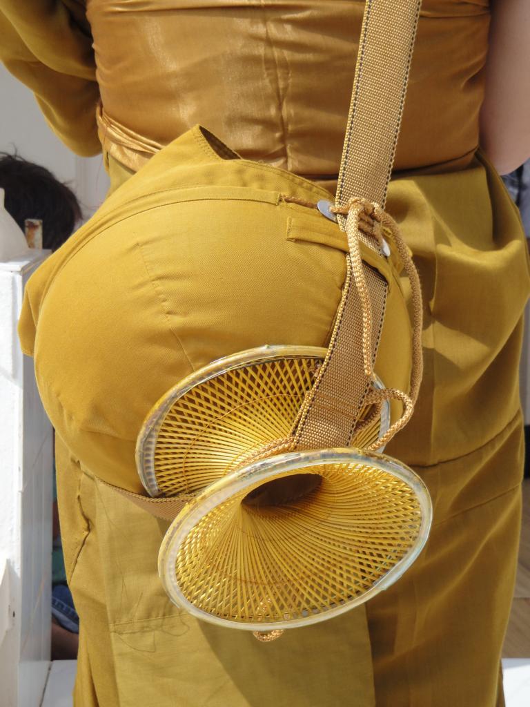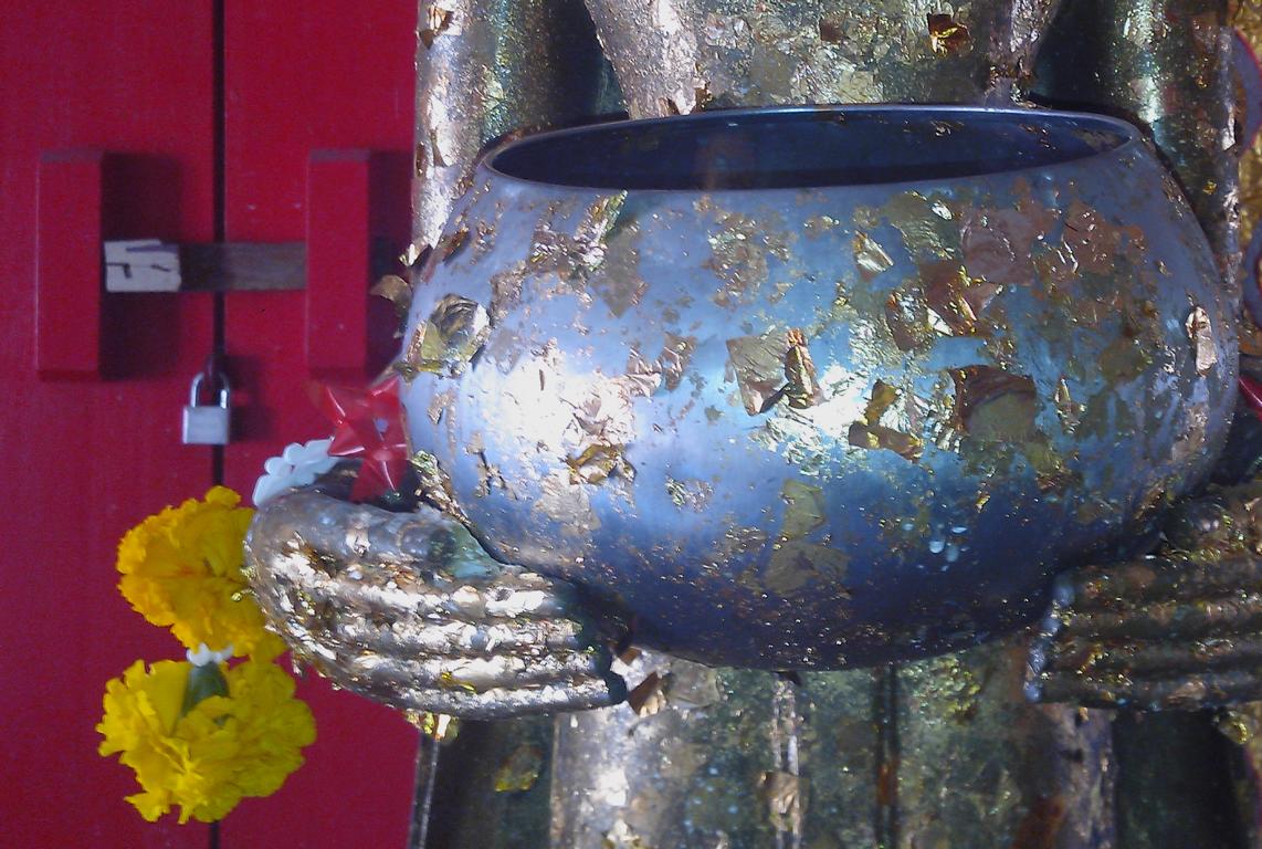 Brandnew alms bowl. Nagelneuer Topf für Almosen.