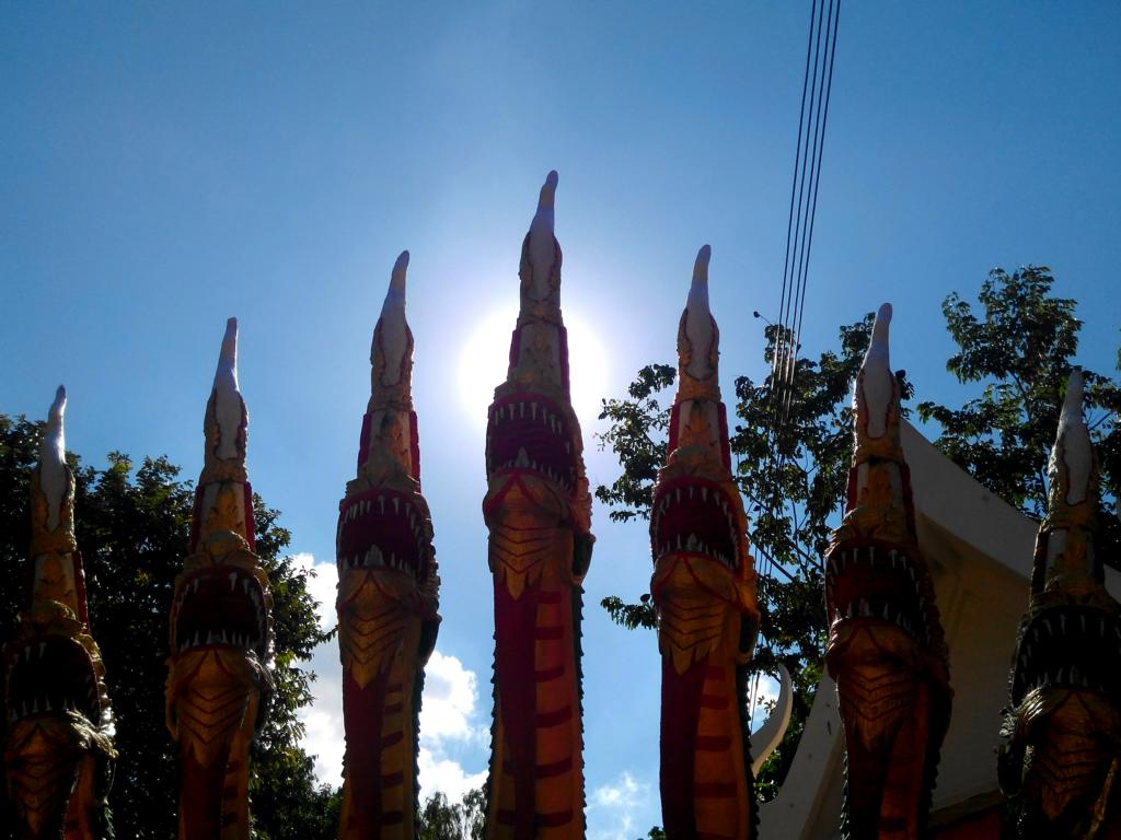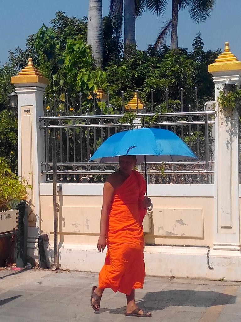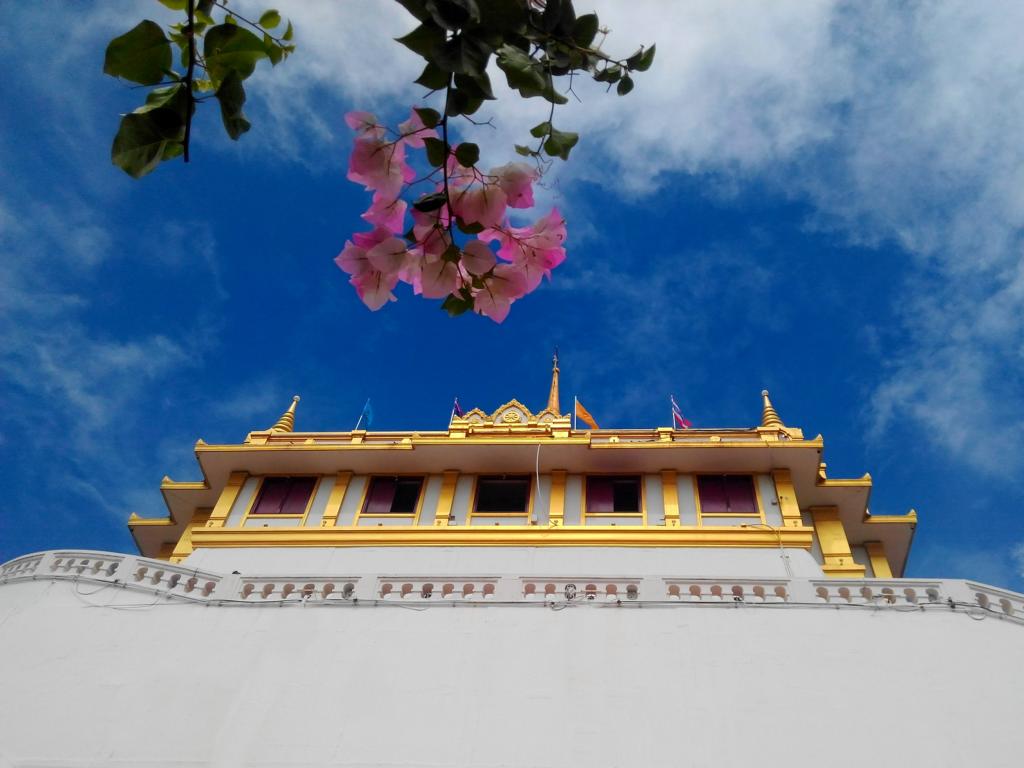 Wat Phu Khao Thong (Golden Mount Temple). Nice view over the city and a cool breeze make it always worth a visit. Am Wat Phu Khao Thong (Golden Mount Temple). Er bietet einen guten Blick über die Skyline der Stadt und wegen des kühlenden Windes lohnt sich ein Besuch immer.