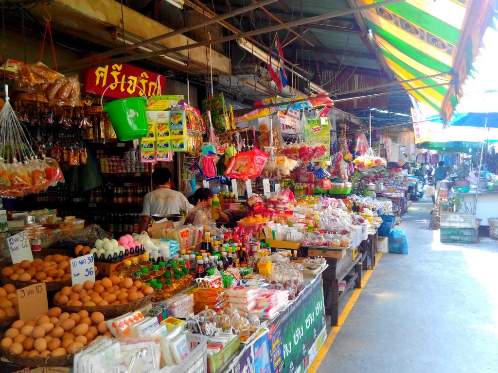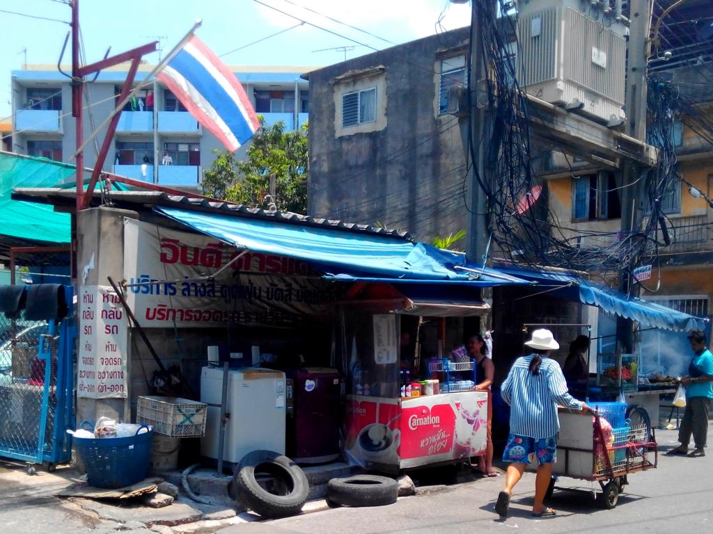 Small Soi with many shops. No tourists around. Seitenstraße mit vielen Geschäften und ohne Touristen.