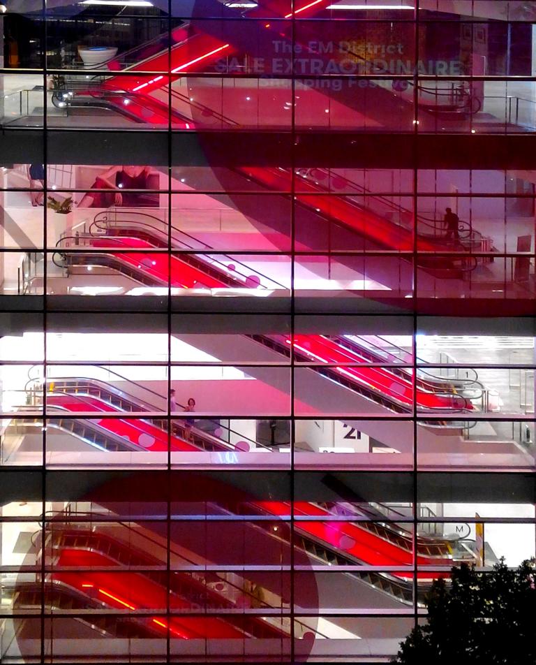 Red escalators … RR – Nein, nicht Rolls Royce. Rote Rolltreppen.