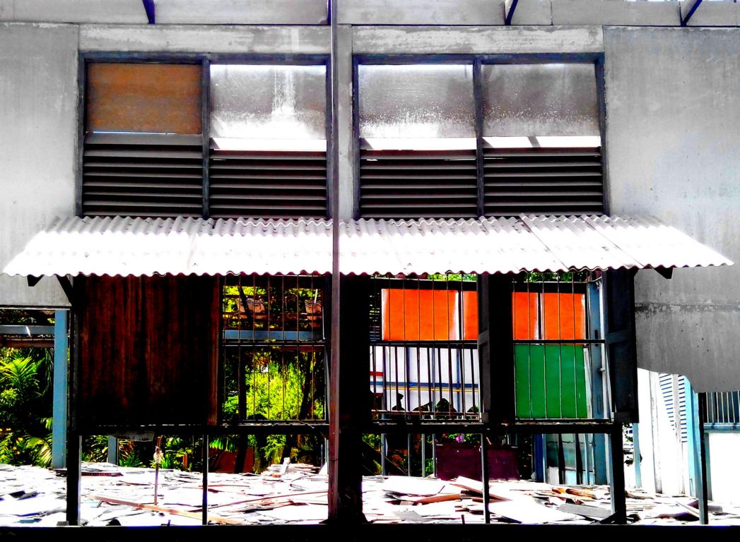 See-through facade just before demolition. Offene Fassade vor dem endgültigen Abriss.