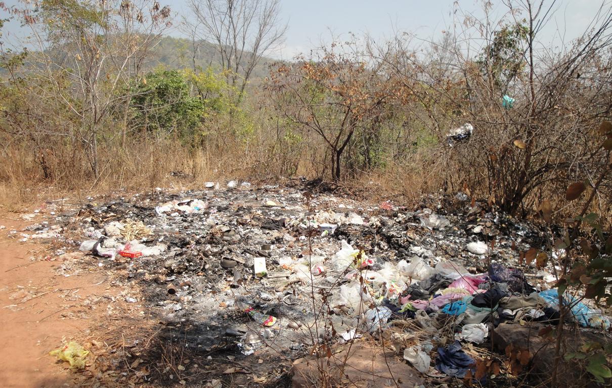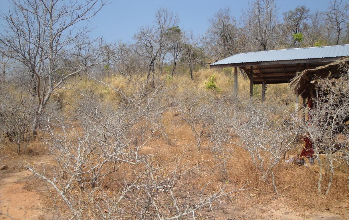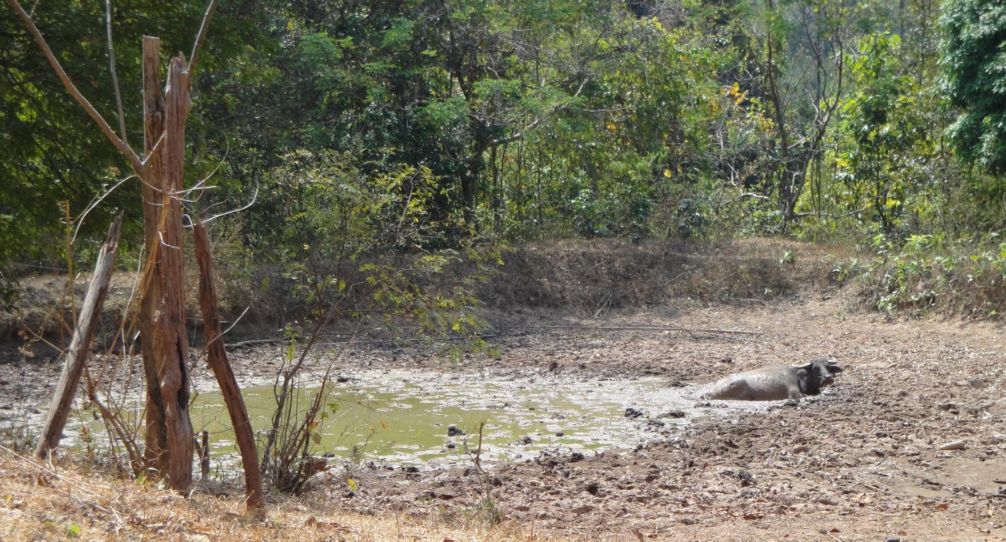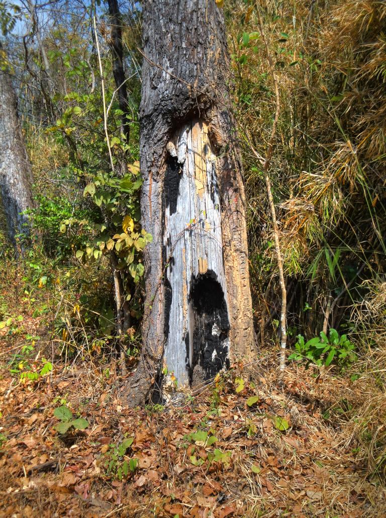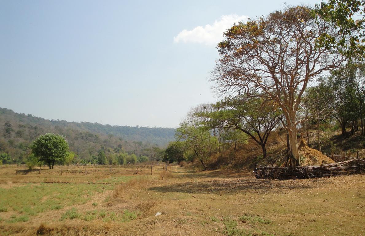 Tour overview … Überblick …I can’t remember why I took this photo. I’m sure that it doesn’t show the way I took on the motorcycle … Maybe I liked the contrast between the brown rocks; the dry, beige thatch; the few green leaves and the blue sky … Ich kann mich nicht erinnern, warum ich dieses Foto gemacht habe. Mit Sicherheit zeigt es nicht den Weg den ich mit dem Roller genommen habe … Vielleicht gefiel mir der Kontrast zwischen den braunen Steinen, dem trockenen, beigefarbigen Stroh und dem blauen Himmel …It was the second time that I saw and entered an area full of these shrubs full of long, hard thorns. I don’t know what kind of plant it is though … Es war das zweite Mal, daß ich eine Gegend, in der diese Sträucher voll langer, harter Dornen wuchsen, sah und betrat. Trotzdem ist mir bis heute nicht klar, um welche Art von Gesträuch es sich handelte …Maybe, a botanical expert can provide some information … Vielleicht kann ja ein Fachmann der Botanik etwas zur Aufklärung beitragen …A bell? It looked like a bell, it sounded like a bell – it was a bell. Any church nearby? No. Then there must be a temple – but where? And which one? I can’t remember. Eine Glocke? Es sah aus wie eine Glocke, es klang wie eine Glocke – es war eine Glocke. gab es eine Kirche in der Nähe? Nein. Dann wohl ein Tempel – aber wo? Und welcher Tempel? Ich habe es vergessen.I have to apologize for not being able to provide more info on names or places. I went on this tour more than 13 years ago and never had in mind to publish any photos. At this time it was nothing more than 1 tour out of many others. It took me long time already to find out the names in the map above because this area is not attractive for mass tourism – and thus the map based information is rare. Ich muss mich dafür entschuldigen, daß ich nicht mehr Angaben zu Namen oder Orten machen kann. Diese Tour habe ich vor etwa dreizehn Jahren gemacht und hatte zu dem Zeitpunkt nicht die Absicht, irgendwelche Fotos in der Öffentlichkeit zu zeigen. Zu der Zeit war dies nur eine von vielen Touren. Es hat mich schon viel Zeit gekostet, die Bezeichnungen in der Übersichtskarte zu finden weil dies keine Gegend ist, die für den Massentourismus bedeutsam ist – und deshalb gibt es auch kaum Karten mit genaueren Angaben.Probably some kind of Thai vegetables, salad … no idea. But I liked the colours, the shadow and the long rows … Wahrscheinlich irgendeine Art von thailändischem Gemüse, Salat … keine Ahnung. Aber mir gefielen die Farben, die Schatten und die langen Reihen …A bit later I found myself in a basin, surrounded by mountains and populated by buffaloes. Etwas später fand ich mich in einem Talbecken wieder, umgeben von Bergen und besiedelt von Büffeln.That’s there I came from … Von dort bin ich gekommen …Even the buffalo thought: ‚Hey, what is that pale foreigner doing here?‘ It was very quiet here and I felt that the sound of my motorcycle was disturbing every animal around here … Sogar der Büffel dachte sich: ‚Hey, was macht das Bleichgesicht denn hier?‘ Es war sehr still her und ich konnte spüren, daß der Motor meines Rollers jedes Lebewesen hier störte …Somewhere in … it could be at many other countries in the world. Irgendwo in … es hätte in vielen anderen Ländern der Erde sein können.If someone was living here? I didn’t want to find out … I mean, I was not scared of anything. But the silence and very remote place made me feel a bit cowed though. Ob hier jemand lebte? Ich wollte es nicht herausfinden … Ich meine, ich hatte keine Angst. Aber die Stille und der abgelegene Ort hier sorgten doch dafür, daß ich mich etwas eingeschüchtert fühlte.A last picture of the nature in the basin – then back towards … Ein letztes Bild der Natur in dem Tal – dann ging es zurück in Richtung …… fucked up civilization. … verdreckter Zivilisation.Steel pipes, concrete – Wow. One of the better bridges … although something on the left side went missing … Stahlrohre und Beton – wow. Eine der besseren Brücken … obwohl links doch einiges fehlte …It’s always good to have some trees on hand … otherwise the two planks could not have been fixed there. Es ist doch immer gut, einige Bäume zur Hand zu haben … sonst hätte man ja die zwei Bretter nicht dort anbringen können.Shadowman … Der Schattenmann …Another dead tree. But wait … who said dead? Look, there are some green leaves. Noch ein toter Baum. Aber stop … wer sprach von tot? Guck mal, da sind einige grüne Blätter.The first sign of Wat Phu Pha Kor. No further direction given – I think, I have been there. But it can’t have been very impressive because I didn’t take any photos. Das erste Schild des Phu Pha Kor Tempels. Ohne Richtungsangabe – ich glaube, ich bin schon mal dort gewesen. Aber es kann nicht besonders beeindruckend gewesen sein weil ich keine Fotos gemacht habe.Riding up along the mountainside on a new, solid and relatively smooth surface until … Aufwärts entlang der Bergflanke auf einem neuen Weg mit fester und ziemlich glatter Oberfläche bis …… it changed back to the common, red and dusty mix of sand, rocks and leaves. … sich diese wieder in den üblichen, roten und staubigen Mix aus Sand, Steinen und Blättern verwandelte.That looked like the meditation treadmill of a temple. But where is the temple? Sah aus wie einer dieser Pfade, auf denen die Mönche beim Meditieren wandeln. Aber wo war der Tempel?The sign says something regarding ‚luck‘. I guess it’s an encouragement to climb up the stairs … Auf dem Schild stand etwas von ‚Glück‘. Ich denke, das war eine Aufforderung, die Stufen nach oben zu steigen …Three temples to visit: Wat Phu Pha Kor to the left. Wat Phuyang Diao and Wat Phu Dan Muang to the right … I don’t know which one I passed already or which one might be just ahead … Drei Tempel in der Nähe: Der Phu Pha Kor Tempel li