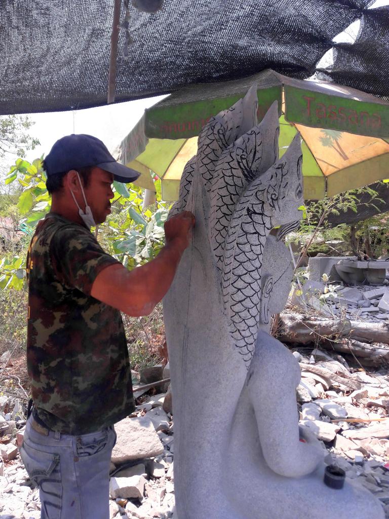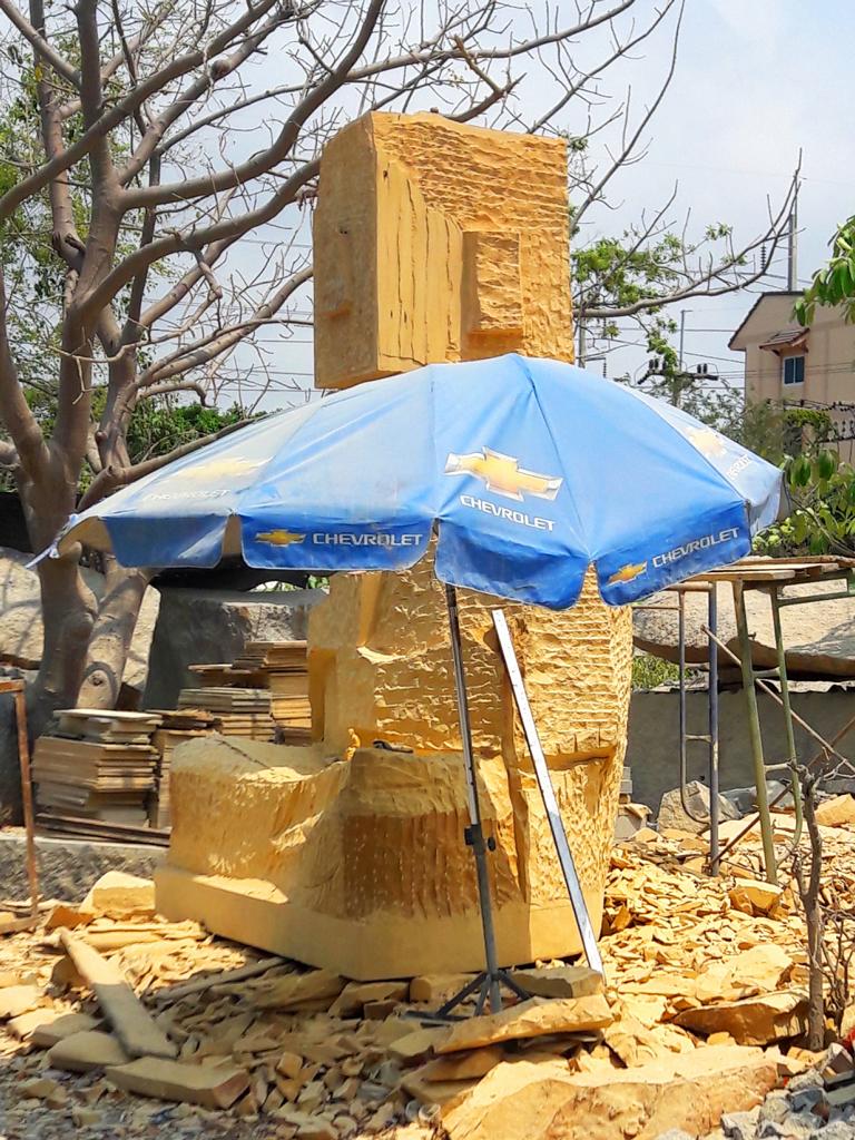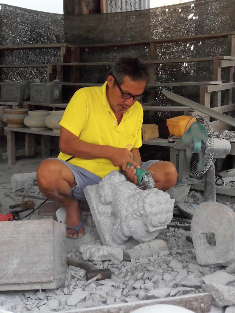 Crafting the lion out of a solid piece of rock … So entsteht aus einem Stück Fels ein Löwe …