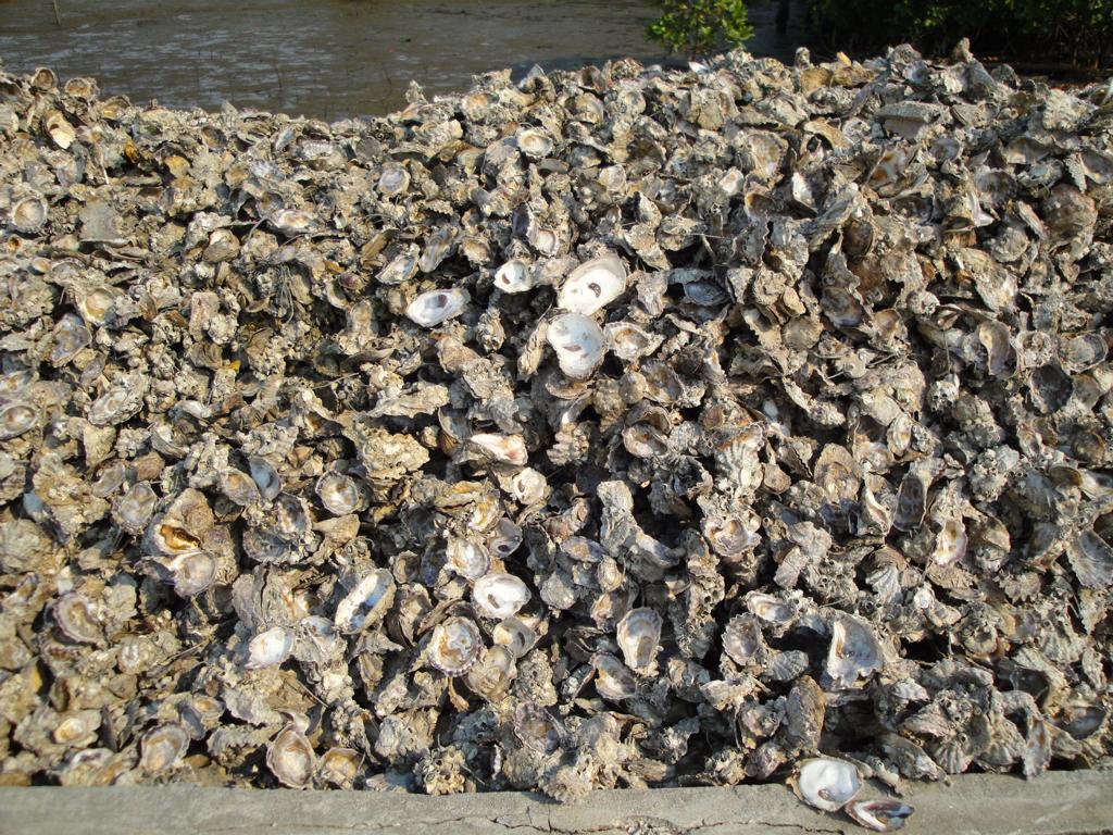 A wall – made from seashells. Eine kleine Mauer – bestehend aus leeren Muscheln.