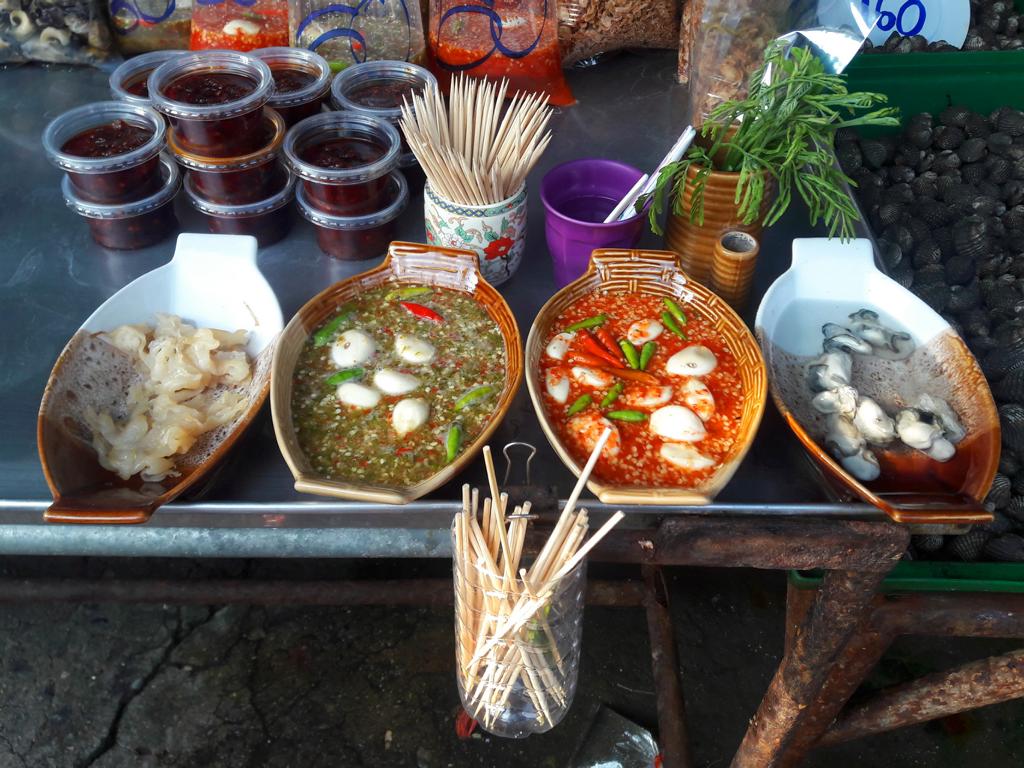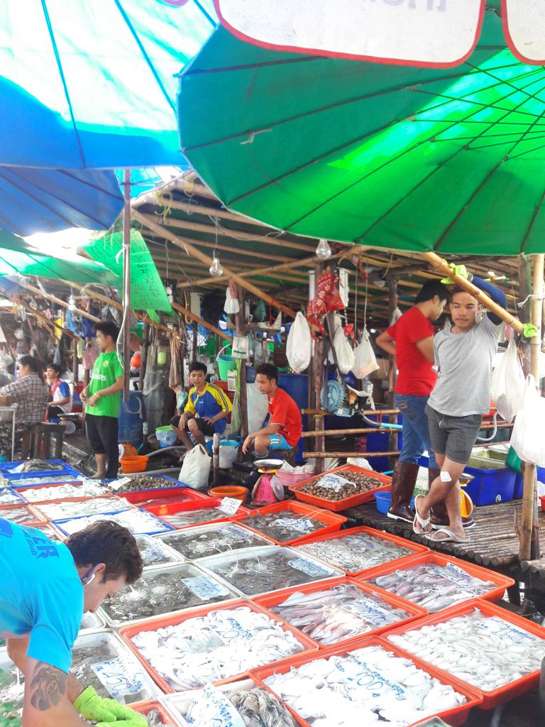 At the seafood market again. Too many different things to name them all … Wieder auf dem Markt. Einfach zu viele unterschiedliche Lebensmittel im Angebot um sie alle aufzuzählen …