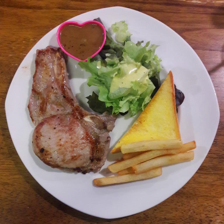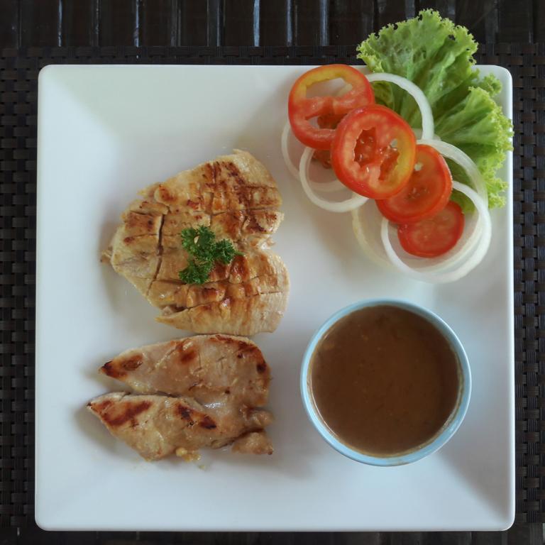 Chicken breast steak with rice – it was excellent. Hähnchenbrustschnitzel mit Reis – es war ausgezeichnet.