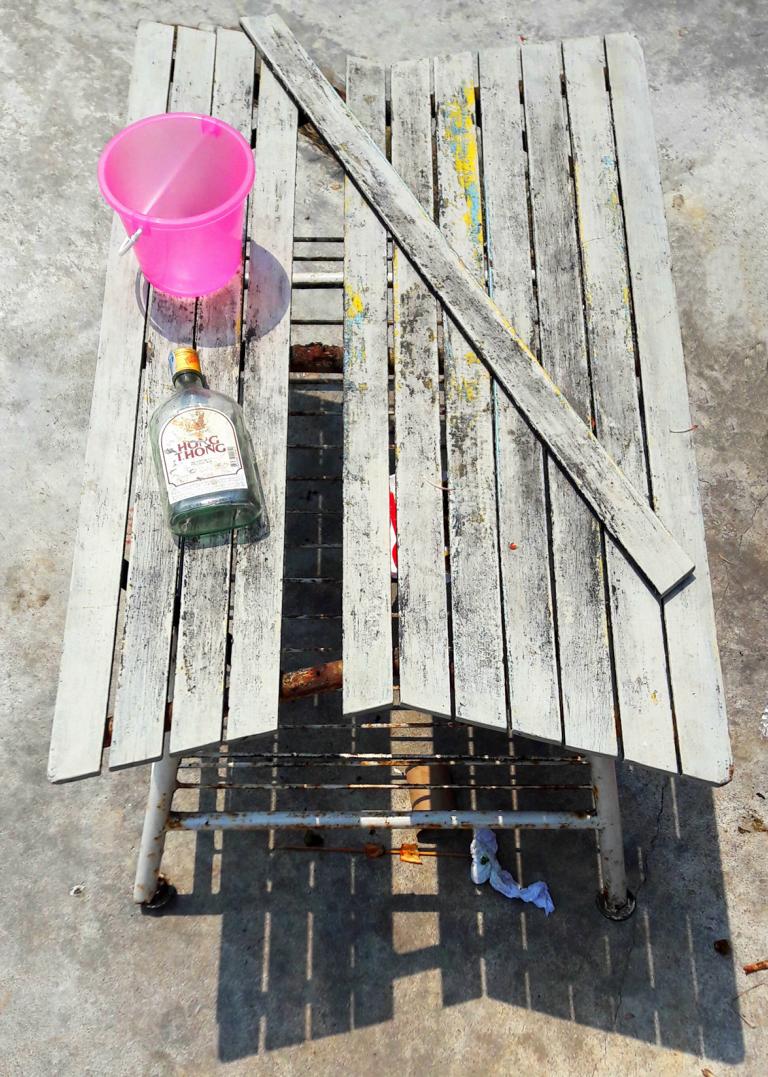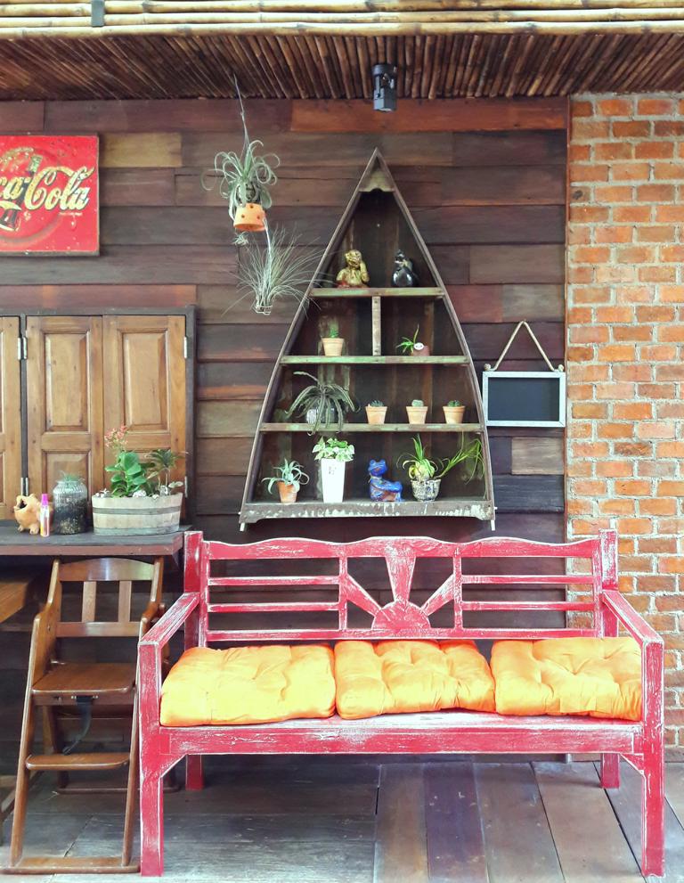 A wooden sofa at Tid Ang Cafe … Ein hölzernes Sofa im Tid Ang Cafe …