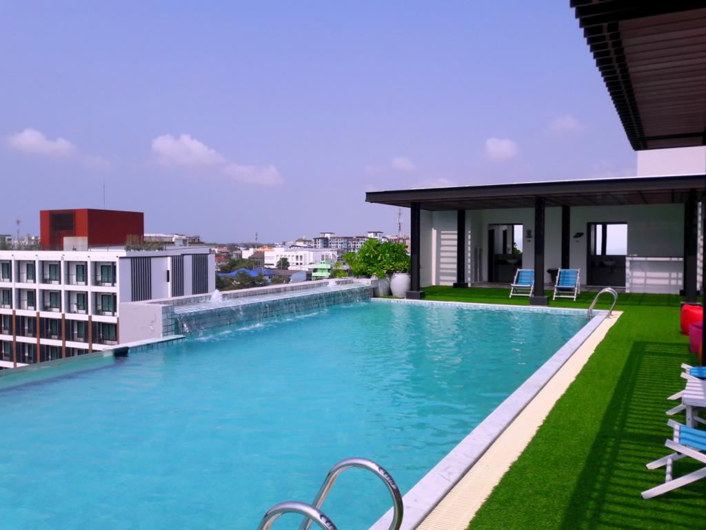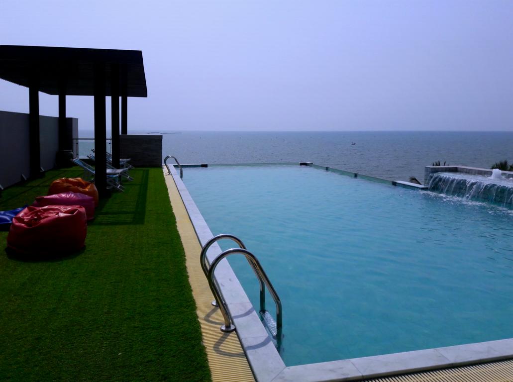 Later the day I rode to Bang Saen to look for a place to stay for a few more days. This hotel had a very nice roof-top swimming pool – but it was too expensive for me. Später fuhr ich nach Bang Saen um mich nach einem Hotel umzusehen, in dem ich einige Tage bleiben konnte. Dieses Hotel verfügte zwar über einen sehr schönen Pool auf dem Dach – war aber zu teuer für mich.