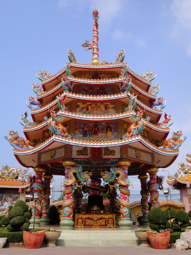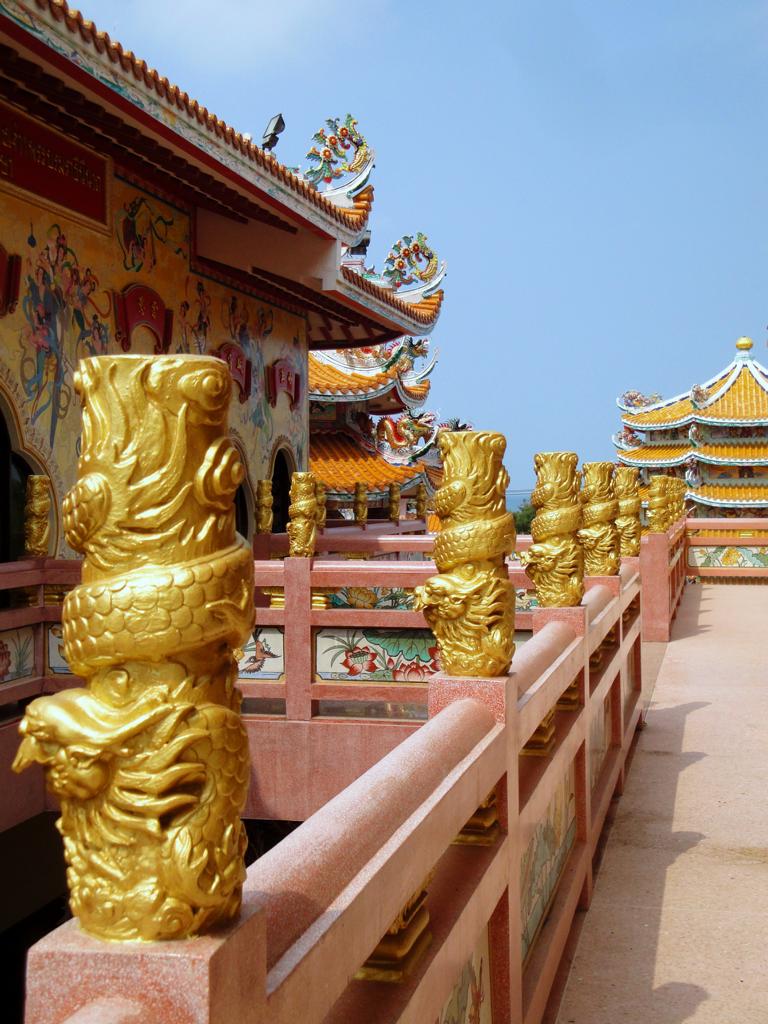 At the Na Ja Temple between Ang Sila and Bang Saen. It can be seen as a beautiful attraction representing Chinese architecture. Many Thais and foreign visitors come to see this place. Am Na Ja Tempel zwischen Ang Sila und Bang Saen. Ein schönes Beispiel für chinesische Architektur. Viele Thais und auch Besucher aus anderen Ländern besuchen diesen Ort.