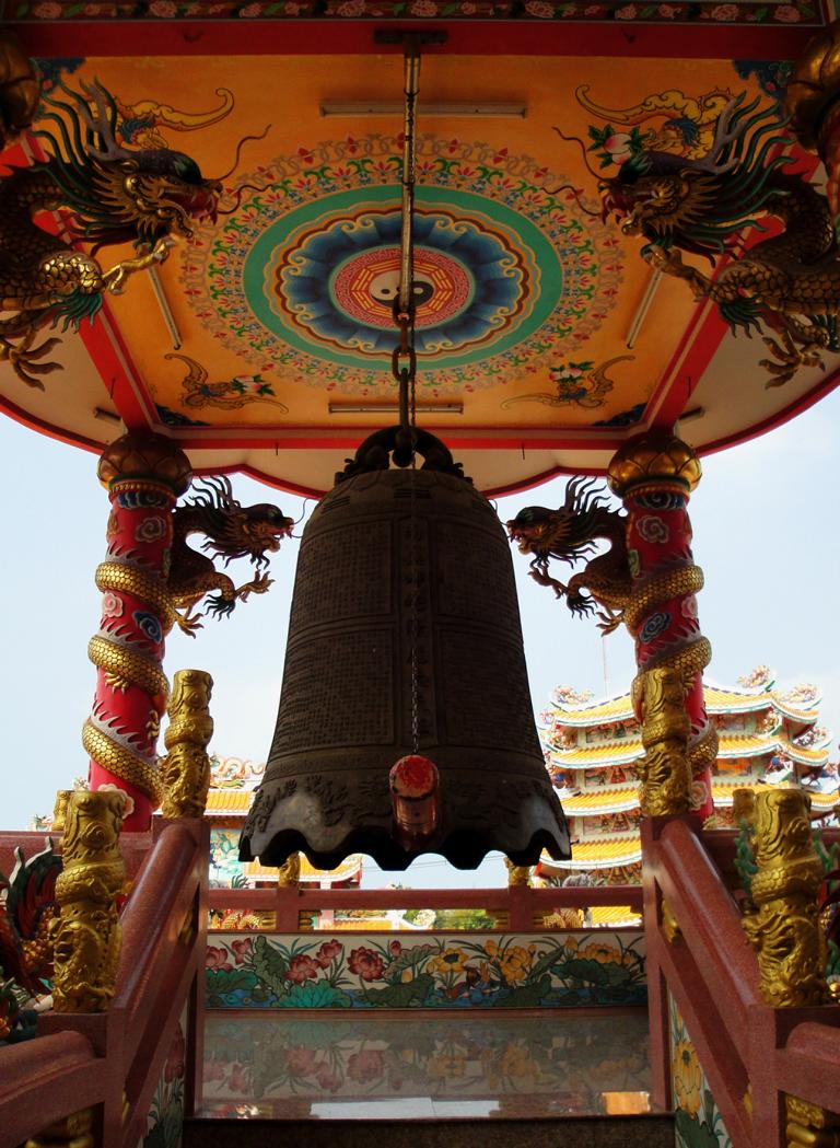 This bell in front of the main building was … huge. I guess, around 3 meters from the floor to its top. Die Glocke vor dem Gebäude war … riesig. I denke, sie hing mit der Spitze in einer Höhe von ca. drei Metern über dem Boden.