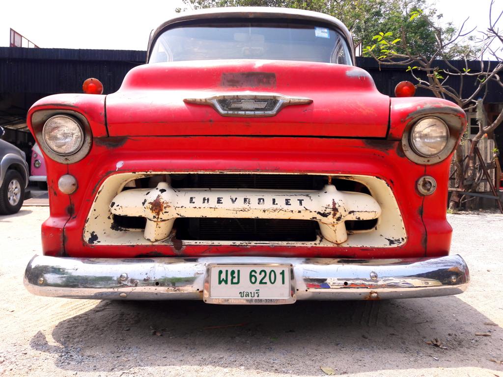 Old Chevy pick-up truck at a small pub in Bang Saen. Ein alter Chevy Kleinlaster vor einem Pub in Bang Saen.