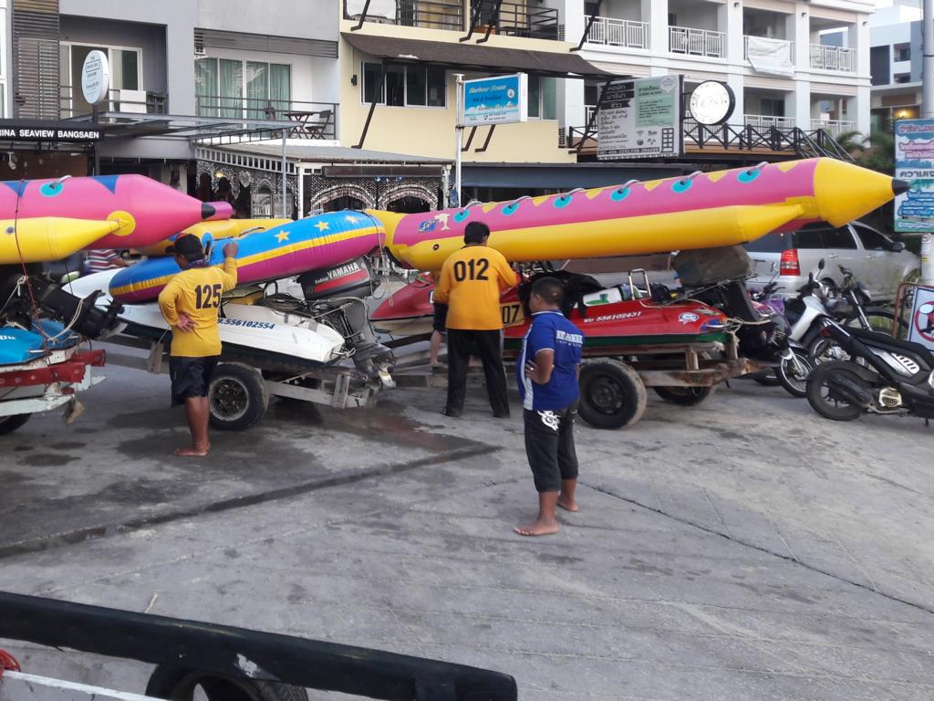 Time to pull the banana boats out of the water and head back home … Zeit, die aufgeblasenen Bananen aus dem Wasser zu holen und nach Hause zu fahren …