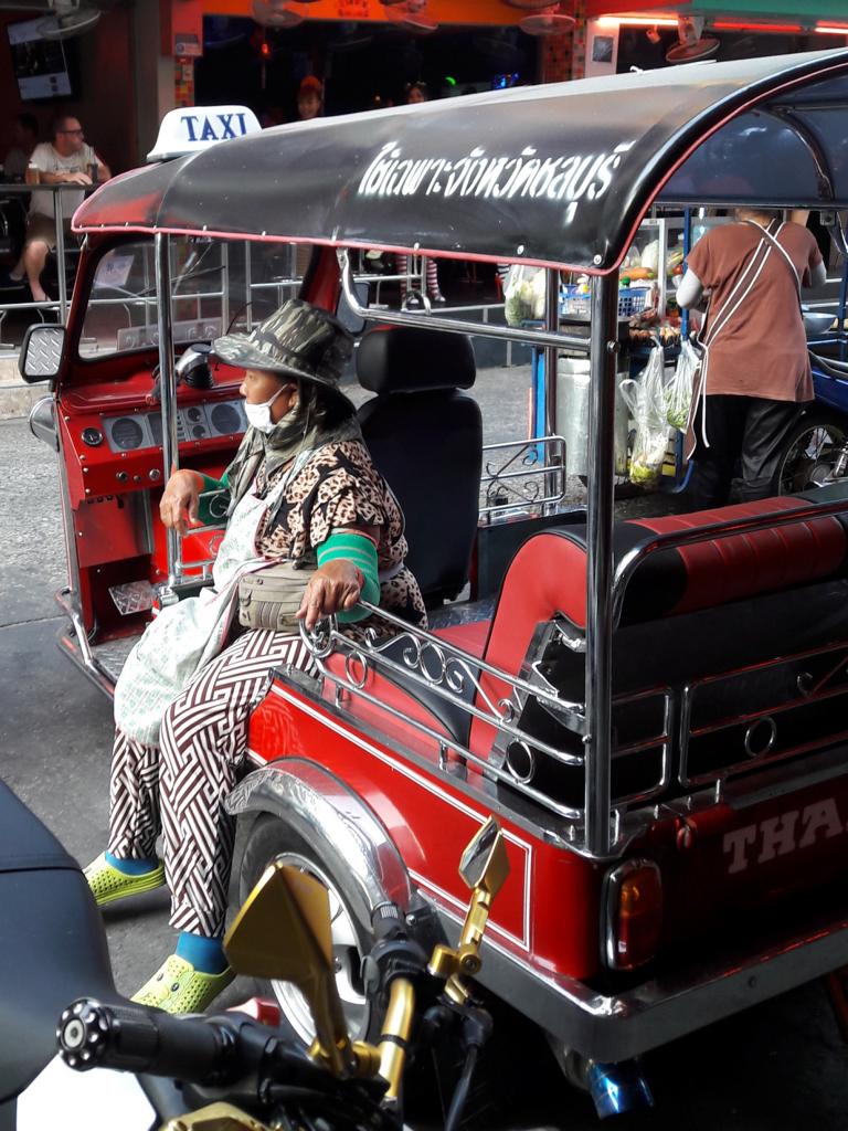 She is not the driver of the Tuk Tuk but took her chance to rest and sit down for a while … Sie ist zwar nicht die Fahrerin des Tuk Tuk’s aber hat die Gelegenheit genutzt, sich kurz zu setzen um sich etwas zu erholen …