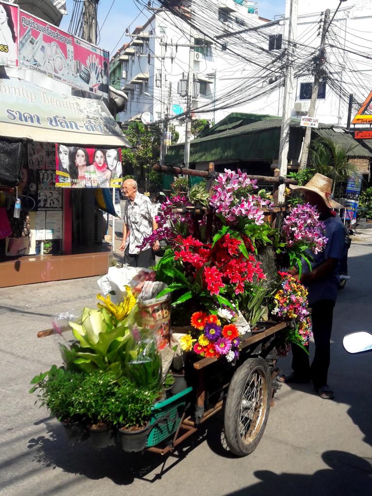 Selling fresh plants from a cart … Frische Pflanzen werden direkt geliefert …