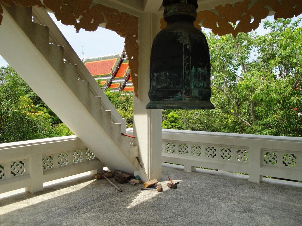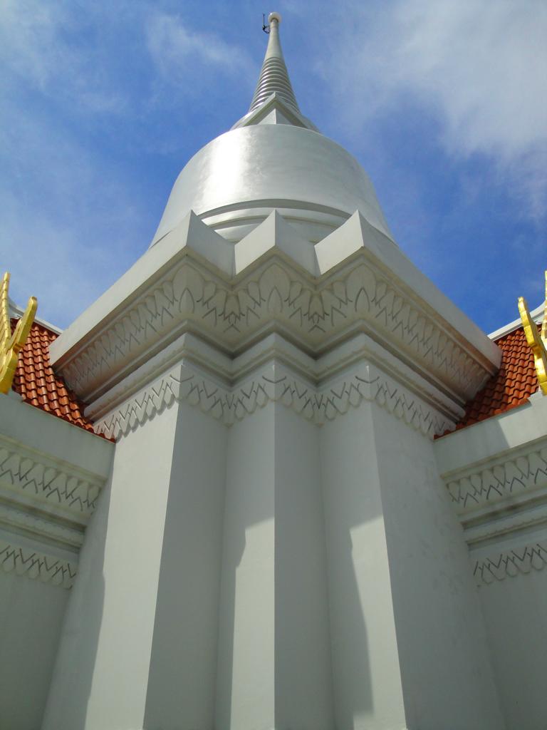 Chedi and Wat together, seen from the bell and drum tower. Das Hauptgebäude und der Tempel, betrachtet vom Trommel- und Glockenturm.