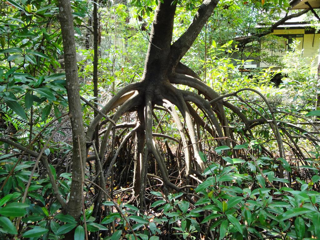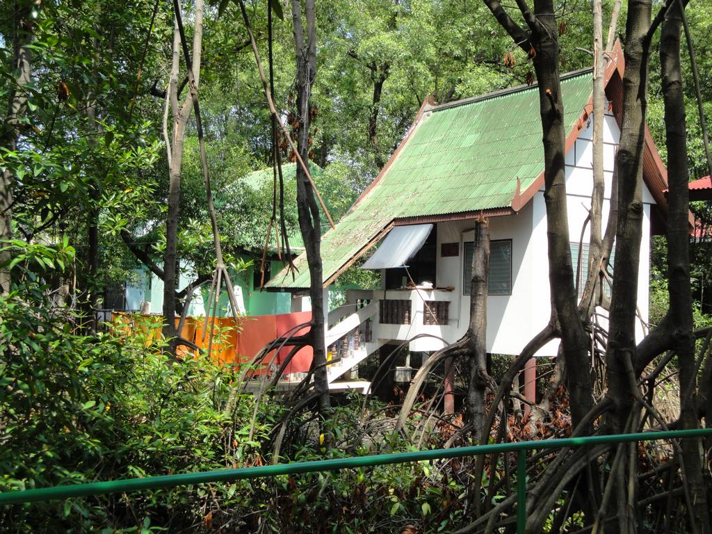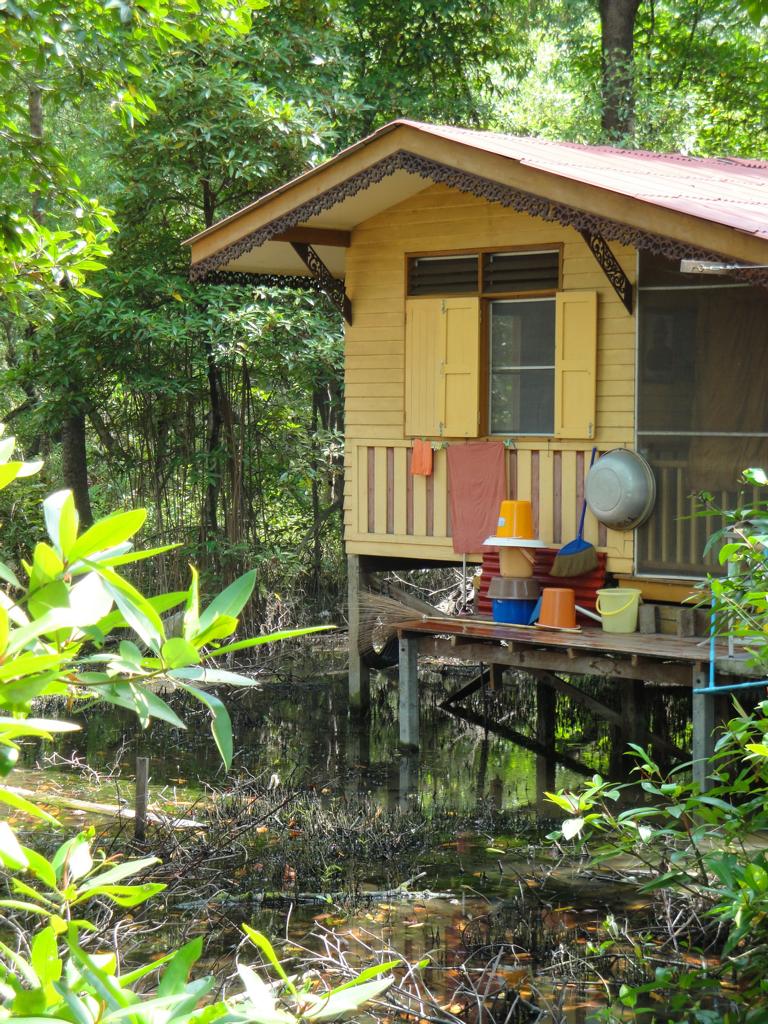 Hidden in the swampy forrest – buildings (kuti) for the monks to stay. Versteckt im Sumpf – Wohngebäude der Mönche.