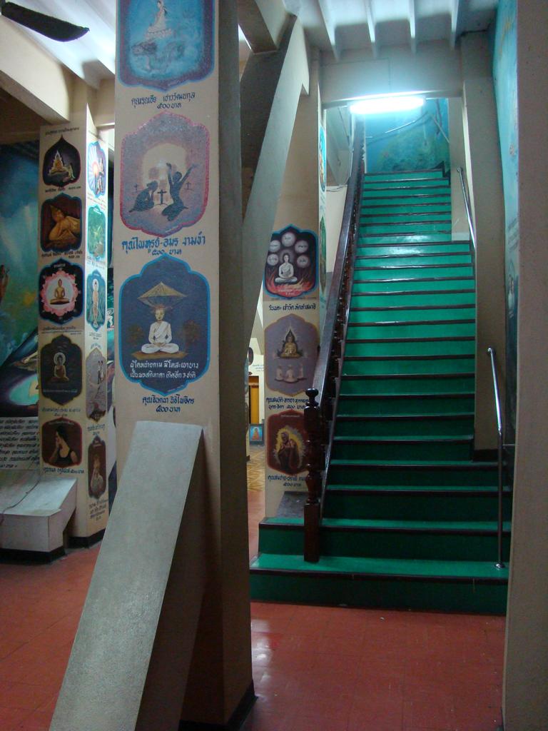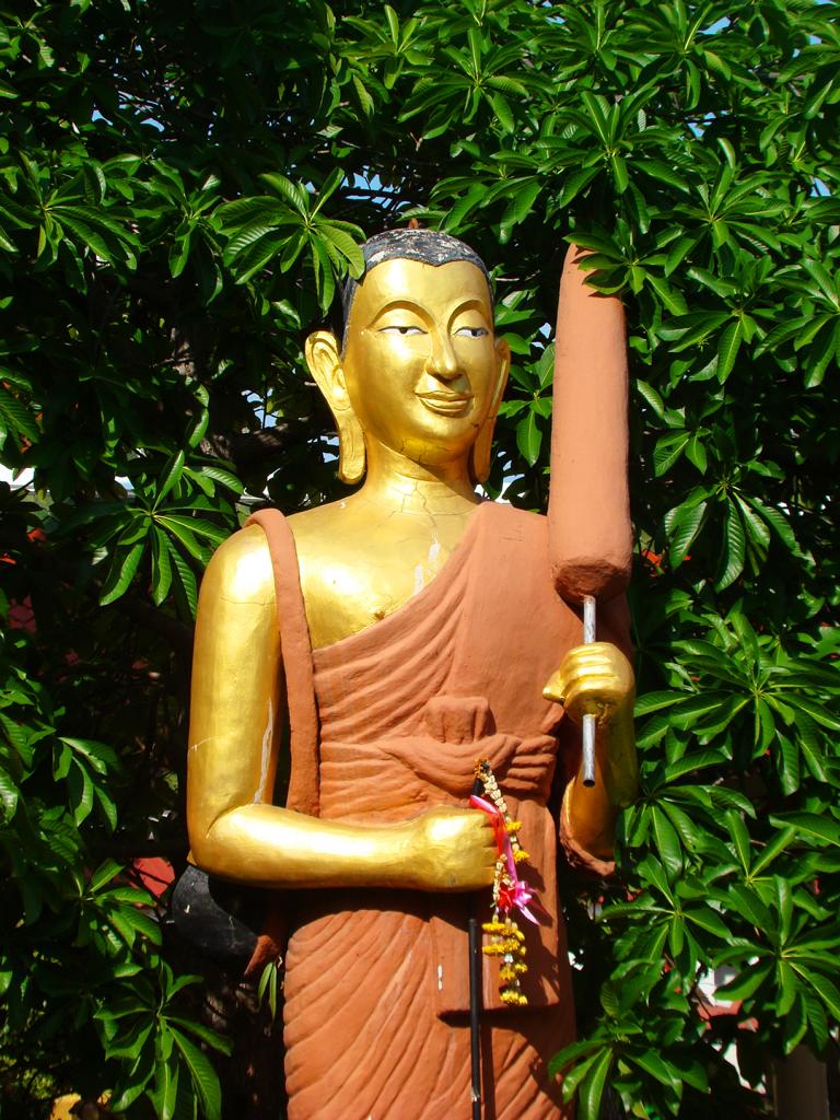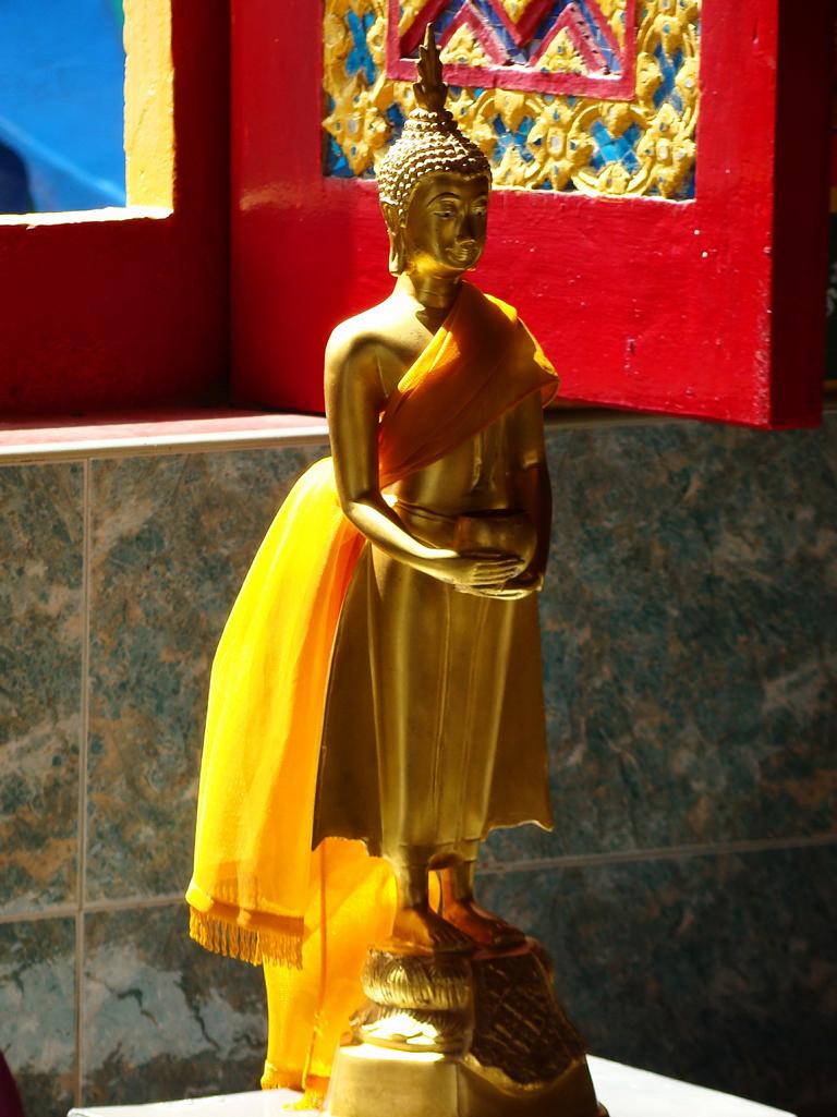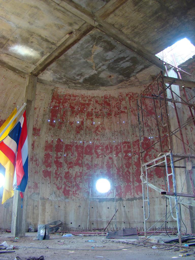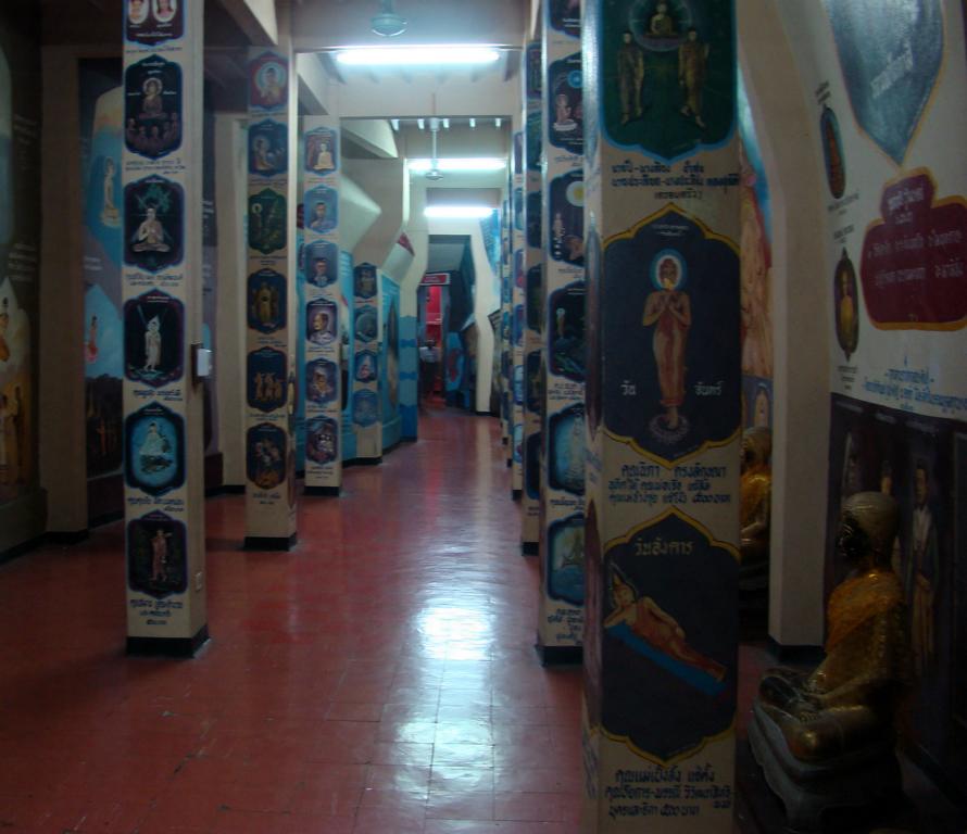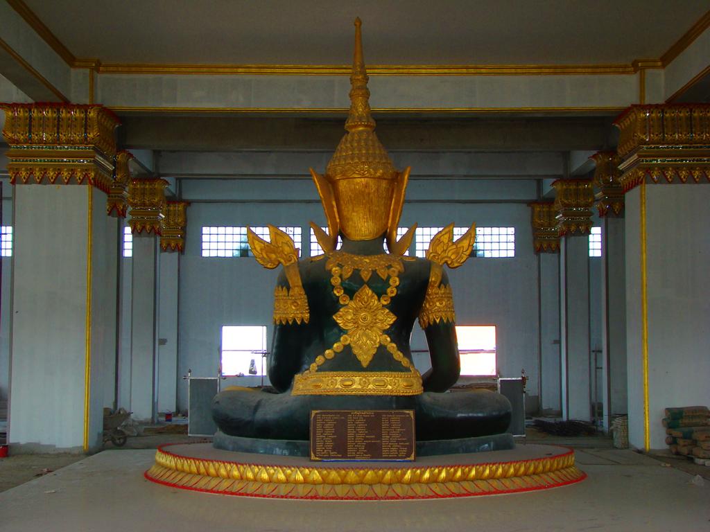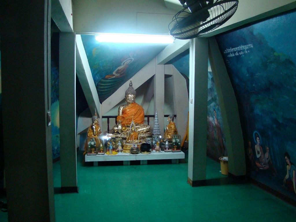Tour overview … ÜberblickNo, not there. I’m here … Nein, nicht dort. Ich bin hier …Bags to collect alms. In diesen Beuteln werden die gespendeten Gaben gesammelt.This is how most „cemeteries“ in Thailand look: A wall with small wholes – wide enough to put the urn inside and place a photo on the front. So sehen die meisten „Friedhöfe“ in Thailand aus: Eine Wand mit kleinen Öffnungen – groß genug um die Urne hineinzustellen und ein Foto auf der Frontplatte anzubringen.Buddha statue in the sun … Buddhastatue im Sonnenlicht …One of many private schools in and around Bangkok. Eine von vielen privaten Schulen in bzw. in der Nähe von Bangkok.Headquarter of the District Administration Organization. Looking more like the tower at an airport … Sitz der Bezirksregierung. Sieht aber eher nach dem Kontrollturm eines Flughafens aus …At Wat Naam Daeng. Ein Tempel in Naam Daeng.Please – smile for the camera … Bitte – einmal lächeln für die Kamera …He knows how to look more friendly …Ja, der hier versteht es freundlicher zu blicken …Looking back towards the entrance … Blick zurück zum Eingang …It’s hanging from a steel bar! Huge gong at the temple … Befestigt an einem Stahlträger! Großer Gong im Tempel …The feet (!) of the reclining Buddha statue inside the temple. It might be easy to imagine that … Das hier sind nur die Füße (!) einer liegenden Buddhastatue im Inneren des Tempels. Man kann sich leicht vorstellen, daß …… it’s hollow and in this case visitors are allowed to … die gesamte Statue hohl ist und Besucher hier … … enter the inside of the statue … das Innere betreten und erkunden dürfen …… and see what will happen to people who are doing bad in present life. … um zu sehen was mit Menschen passiert, die in ihrem gegenwärtigen Leben Schlechtes tun.No flash allowed inside. But bright enough to show you the way further up into the head … Fotos mit Blitzlicht waren nicht erlaubt aber es war auch so hell genug um den Weg nach oben zum Kopf zu erkennen …… where 2 small altars are awaiting visitors. … wo zwei kleine Altäre standen.Difficult to imagine where exactly it is inside the huge statue … Aus dieser Perspektive konnte man sich nur schwerlich vorstellen, wo genau in der Statue man sich befand …… but the head was the highest spot and wide enough to provide space for a small room. … aber der Kopfbereich war der höchste Punkt und eben auch groß genug um Platz für einen kleinen Raum zu bieten.The building covering the reclining Buddha statue is pretty narrow. Difficult to estimate the hight though. But it’s strange to know that you just climed up inside the head … Das Gebäude rund um die liegende Buddhastatue ist ziemlich eng. Es ist schwer, die Höhe zu schätzen. Aber es fühlte sich schon seltsam an, eben noch in dem Kopf rumgeklettert zu sein.Outside again I found the bowling ball I was missing since years already … Wieder draußen habe ich endlich die Bowlingkugel gefunden, die ich seit Jahren vermisst hatte …The more – the better … Je mehr – desto besser …Hold my lamp … Halt mal kurz die Leuchte …A long way to go … Ein langer Weg …Working on that thin plank didn’t appear to be really safe … Die Arbeit auf dem dünnen Brett sah nicht wirklich sicher aus …Obviously too big to lift it inside after completion. So they literally built a temple around the Buddha image. Offensichtlich zu groß um die Statue später hineinzuheben. Deshalb hat man im wahrsten Sinne des Wortes einen Tempel um die Buddhfigur gebaut.Still a bit dusty … Noch etwas staubig …… and not finished yet. … und noch nicht ganz fertig.Actually I never thought about how to build a pagoda. But this it how it’s done … Tatsächlich hatte ich mir nie Gedanken über den Aufbau einer dieser Pagoden gemacht. Hier wurde deutlich, wie es gemacht wird …Right, upper corner. You see the small hole in the roof? If you know me, you know the rest of the story … Rechte, obere Ecke. Erkennt man das kleine Loch in der Decke? Wer mich kennt, kann sich den Rest der Geschichte denken …Hey, it was worth it! I’m sure that not many other civilians have been here … Hey, das hat sich gelohnt! Ich war mir sicher, daß – abgesehen von den Arbeitern – noch nicht viele Leute hier oben waren …… but … enough was enough. … aber … genug sollte genug gewesen sein …I made it up there – and back down again without problems. Immerhin bin ich bis dort oben und wieder zurück gestiegen ohne auf jemanden zu treffen.Maybe, I got his blessing without even knowing it. Vielleicht bin ich von ihm gesegnet worden ohne es bemerkt zu haben.