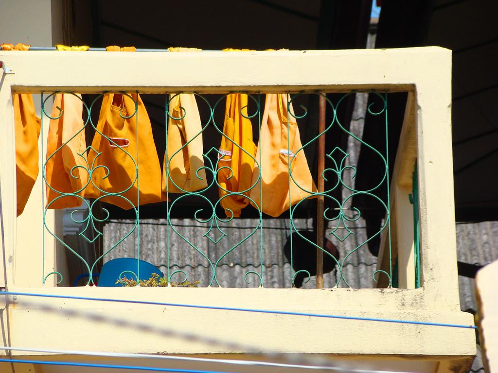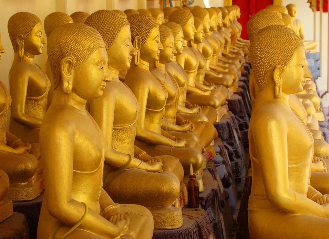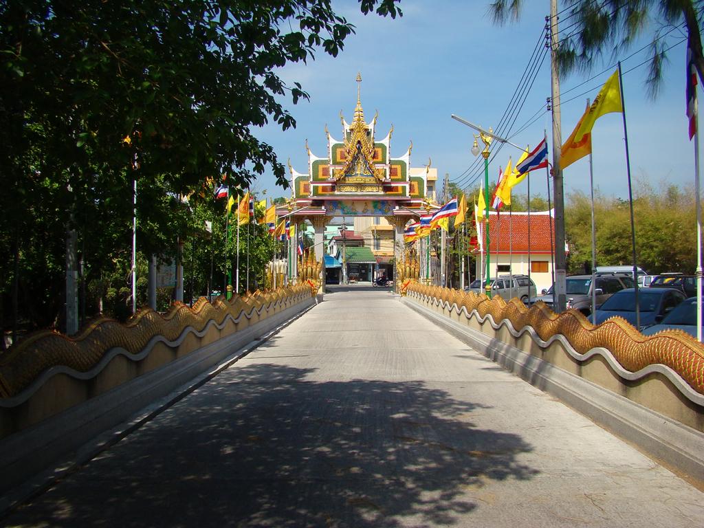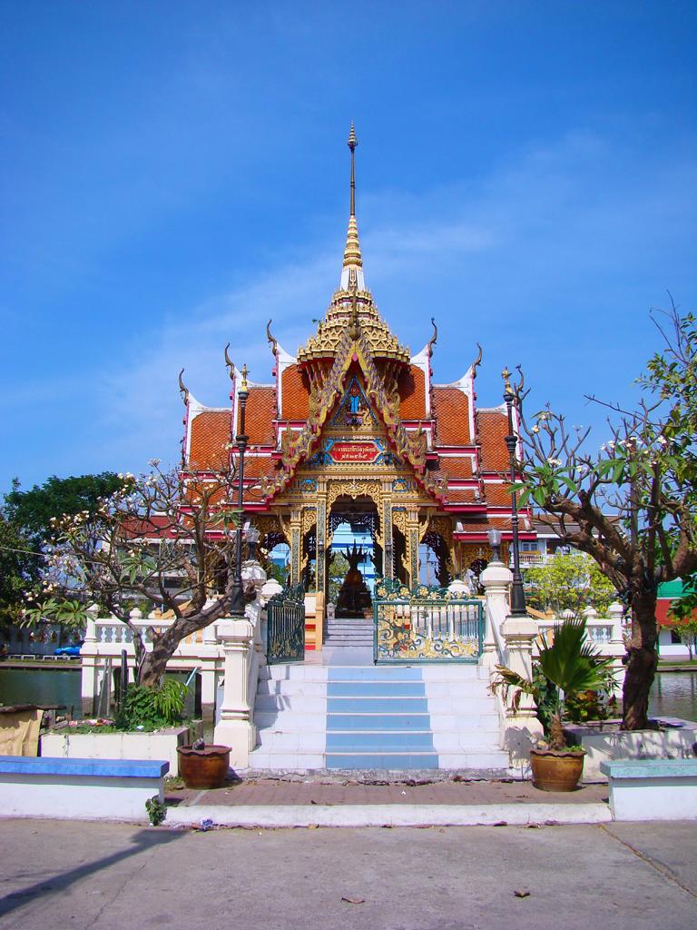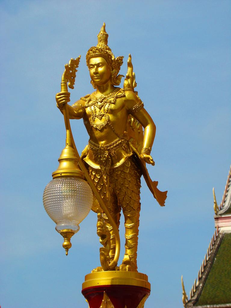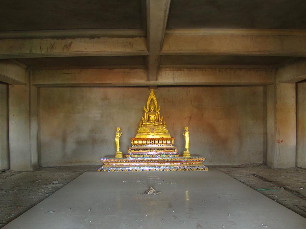 Tour overview … ÜberblickNo, not there. I’m here … Nein, nicht dort. Ich bin hier …Bags to collect alms. In diesen Beuteln werden die gespendeten Gaben gesammelt.This is how most „cemeteries“ in Thailand look: A wall with small wholes – wide enough to put the urn inside and place a photo on the front. So sehen die meisten „Friedhöfe“ in Thailand aus: Eine Wand mit kleinen Öffnungen – groß genug um die Urne hineinzustellen und ein Foto auf der Frontplatte anzubringen.Buddha statue in the sun … Buddhastatue im Sonnenlicht …One of many private schools in and around Bangkok. Eine von vielen privaten Schulen in bzw. in der Nähe von Bangkok.Headquarter of the District Administration Organization. Looking more like the tower at an airport … Sitz der Bezirksregierung. Sieht aber eher nach dem Kontrollturm eines Flughafens aus …At Wat Naam Daeng. Ein Tempel in Naam Daeng.Please – smile for the camera … Bitte – einmal lächeln für die Kamera …He knows how to look more friendly …Ja, der hier versteht es freundlicher zu blicken …Looking back towards the entrance … Blick zurück zum Eingang …It’s hanging from a steel bar! Huge gong at the temple … Befestigt an einem Stahlträger! Großer Gong im Tempel …The feet (!) of the reclining Buddha statue inside the temple. It might be easy to imagine that … Das hier sind nur die Füße (!) einer liegenden Buddhastatue im Inneren des Tempels. Man kann sich leicht vorstellen, daß …… it’s hollow and in this case visitors are allowed to … die gesamte Statue hohl ist und Besucher hier … … enter the inside of the statue … das Innere betreten und erkunden dürfen …… and see what will happen to people who are doing bad in present life. … um zu sehen was mit Menschen passiert, die in ihrem gegenwärtigen Leben Schlechtes tun.No flash allowed inside. But bright enough to show you the way further up into the head … Fotos mit Blitzlicht waren nicht erlaubt aber es war auch so hell genug um den Weg nach oben zum Kopf zu erkennen …… where 2 small altars are awaiting visitors. … wo zwei kleine Altäre standen.Difficult to imagine where exactly it is inside the huge statue … Aus dieser Perspektive konnte man sich nur schwerlich vorstellen, wo genau in der Statue man sich befand …… but the head was the highest spot and wide enough to provide space for a small room. … aber der Kopfbereich war der höchste Punkt und eben auch groß genug um Platz für einen kleinen Raum zu bieten.The building covering the reclining Buddha statue is pretty narrow. Difficult to estimate the hight though. But it’s strange to know that you just climed up inside the head … Das Gebäude rund um die liegende Buddhastatue ist ziemlich eng. Es ist schwer, die Höhe zu schätzen. Aber es fühlte sich schon seltsam an, eben noch in dem Kopf rumgeklettert zu sein.Outside again I found the bowling ball I was missing since years already … Wieder draußen habe ich endlich die Bowlingkugel gefunden, die ich seit Jahren vermisst hatte …The more – the better … Je mehr – desto besser …Hold my lamp … Halt mal kurz die Leuchte …A long way to go … Ein langer Weg …Working on that thin plank didn’t appear to be really safe … Die Arbeit auf dem dünnen Brett sah nicht wirklich sicher aus …Obviously too big to lift it inside after completion. So they literally built a temple around the Buddha image. Offensichtlich zu groß um die Statue später hineinzuheben. Deshalb hat man im wahrsten Sinne des Wortes einen Tempel um die Buddhfigur gebaut.Still a bit dusty … Noch etwas staubig …… and not finished yet. … und noch nicht ganz fertig.Actually I never thought about how to build a pagoda. But this it how it’s done … Tatsächlich hatte ich mir nie Gedanken über den Aufbau einer dieser Pagoden gemacht. Hier wurde deutlich, wie es gemacht wird …Right, upper corner. You see the small hole in the roof? If you know me, you know the rest of the story … Rechte, obere Ecke. Erkennt man das kleine Loch in der Decke? Wer mich kennt, kann sich den Rest der Geschichte denken …Hey, it was worth it! I’m sure that not many other civilians have been here … Hey, das hat sich gelohnt! Ich war mir sicher, daß – abgesehen von den Arbeitern – noch nicht viele Leute hier oben waren …… but … enough was enough. … aber … genug sollte genug gewesen sein …I made it up there – and back down again without problems. Immerhin bin ich bis dort oben und wieder zurück gestiegen ohne auf jemanden zu treffen.Maybe, I got his blessing without even knowing it. Vielleicht bin ich von ihm gesegnet worden ohne es bemerkt zu haben.