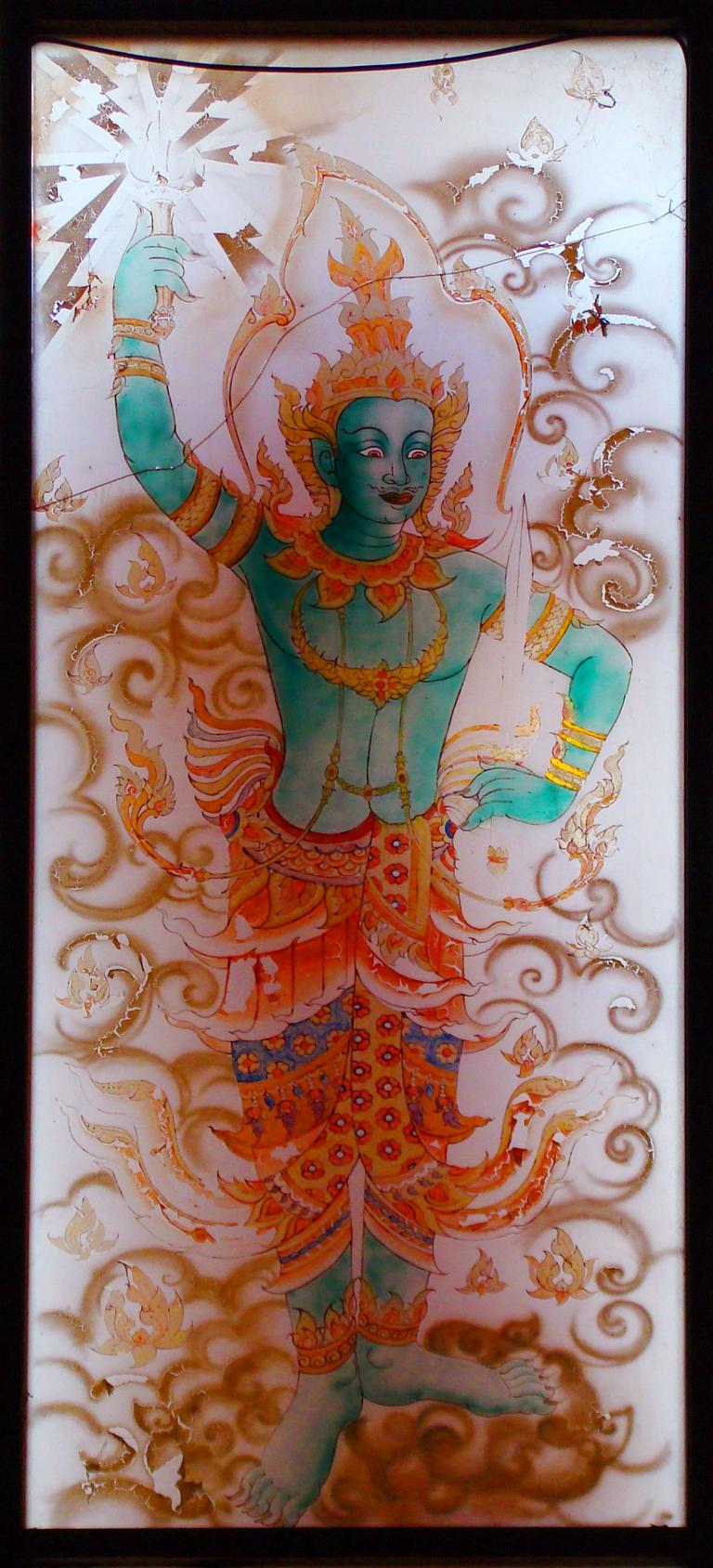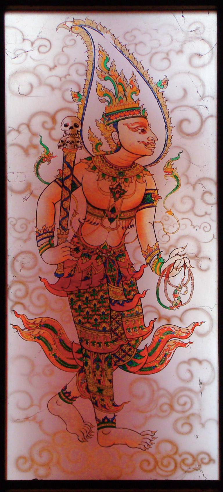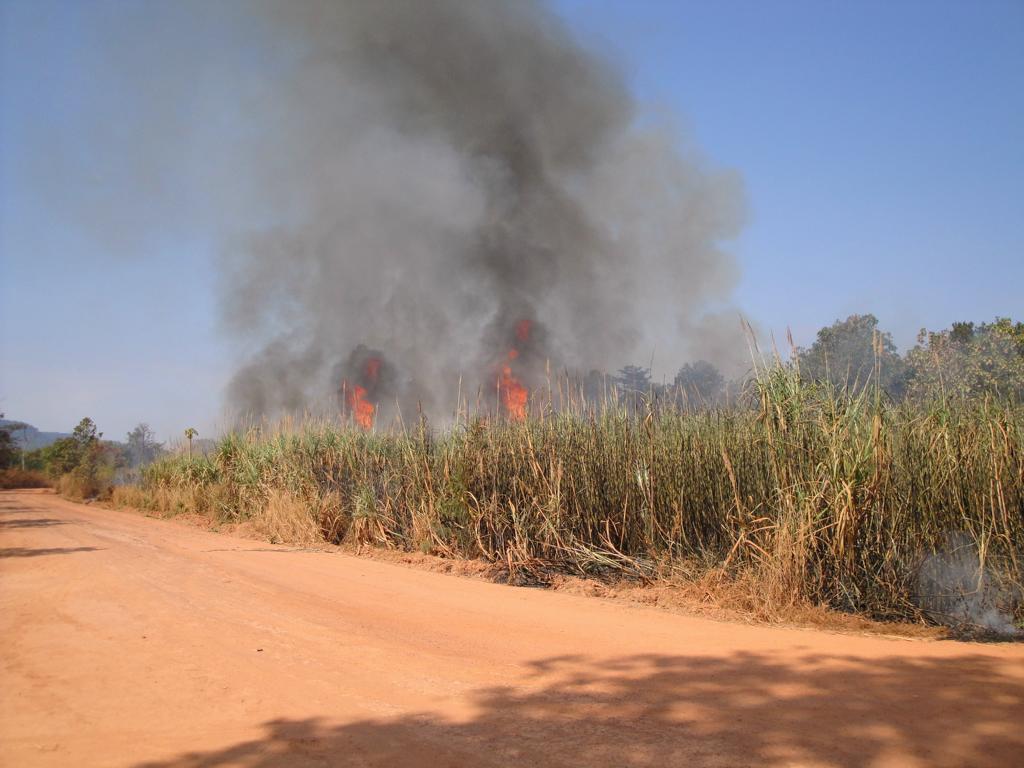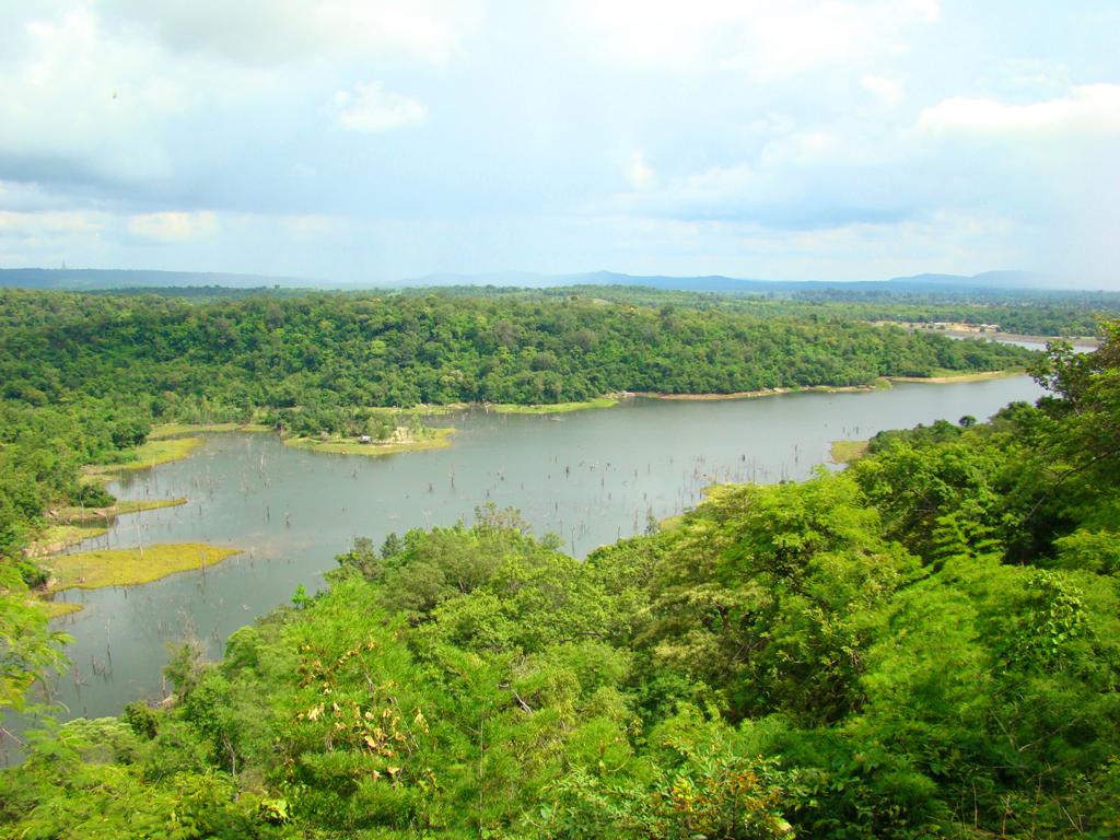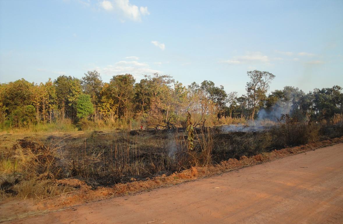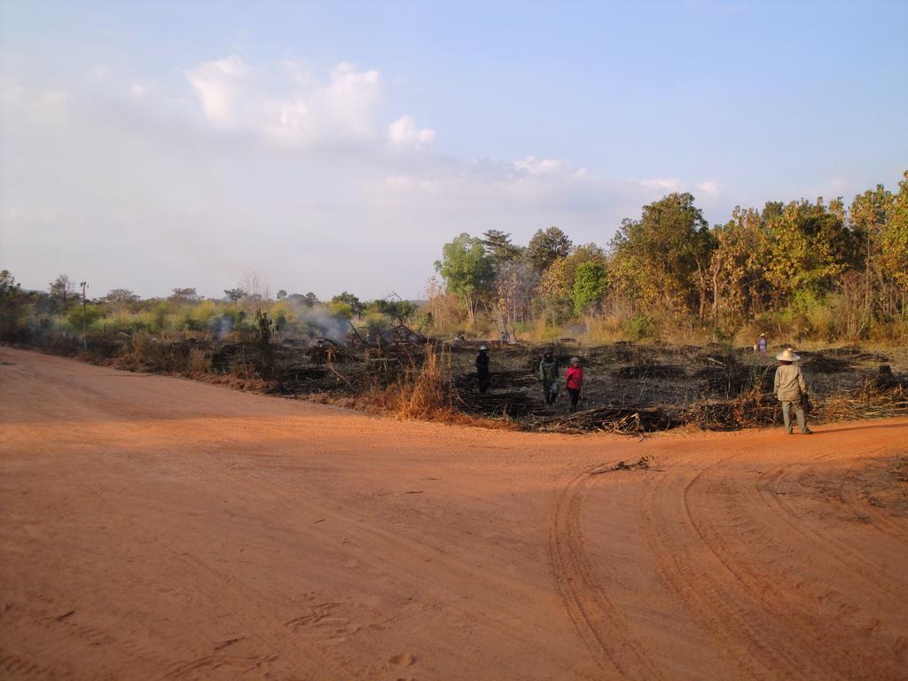 Area overview … Überblick über das Gebiet …Somewhere on my way I saw smoke rising up in front of me … Irgendwo unterwegs sah ich vor mir Rauch auffsteigen …… and the closer I came the more I could see. … und je näher ich kam desto mehr konnte ich erkennen.It was good to see someone trying to contol the fire … Es war gut zu sehen, daß jemand versuchte, das Feuer unter Kontrolle zu halten …… although … sometimes it looked a bit frightening. … obwohl … manchmal sah es schon etwas beängstigend aus.But I told myself that the farmers around here grew up with this kind of ‚harvesting‘. The leaves are pretty much useless and are supposed to burn while the valuable stems remain standing and are chopped off and collected after the fire. Aber ich habe mir gesagt, daß die Bauern in dieser Gegend mit dieser Art der ‚Ernte‘ aufgewachsen waren. Die Blätter sind weitestgehend nutzlos und konnten verbrennen während die wertvollen Stiele stehen blieben und nach dem Feuer abgeschlagen und gesammelt werden konnten.This sole tree caught my attention and years later I could determine its position in the map (Tree 1). Dieser einzelne Baum hatte meine Aufmerksamkeit erregt und sogar Jahre später konnte ich seinen Standpunkt auf der Karte noch ausmachen (Tree 1).‚From here‘ I got a glimpse of what to expect later today. Von hier aus hatte ich einen ersten Eindruck von dem, was später noch kommen sollte.Nothing special for Thailand, not beautiful, I did not pee against it – but I felt like taking a photo of it. And while studying Google Earth I found it still standing and marked it (Tree 2) in the map. I remember riding along that road when I decided to turn around because I got confused regarding the directions. I returned to the main road and followed it for a few kilometres. Nichts besonderes für Thailand, nicht schön, ich habe nicht dagegen uriniert – aber ich hatte das Bedürfnis, den Baum zu fotografieren. Und als ich später die Tour in Google Earth eingetragen habe, konnte ich auch diesen Baum ausmachen und habe ihn als (Tree 2) markiert. Ich erinnere mich, daß ich hier irgendwo umkehrte weil ich bezüglich der Richtung etwas verwirrt war. Ich fuhr zurück zur Hauptstraße und folgte ihr einige Kilometer.A bit further on my way I discovered this sign … not knowing what it meant. Etwas weiter an der Strecke sah ich dieses Hinweisschild … ohne zu wissen was es bedeutete.But following the small road turned out to be worth it … Aber der Umweg über die schmale Starße stellte sich als absolut lohnenswert heraus …I ended up at a small … it was not a temple in the classical meaning … more like a place to come and meditate, get some advice from a monk, swim in the small pond underneath the waterfall … Ich kam an einem kleinen … es war kein Tempel im klassischen Sinn … eher ein Ort um zu meditieren und einen Rat von einem Mönch einzuholen oder in dem kleinen Teich unter dem Wasserfall zu baden …And since this place was called a temple – there was a small altar in the rocks. Und weil dieser Ort als Tempel bezeichnet worden war – da gab es tatsächlich einen kleinen Altar unter den Felsen.This a an ecellent example for the ‚roads‘ I was looking for: Off the main road, no traffic, nobody around – at least not visible – and a slightly challenging surface to ride on. Ein sehr gutes Beispiel für die Art von ‚Straßen‘, die ich immer gesucht habe: Abseits der Hauptstraße, kein Verkehr, niemand da – zumindest nicht in Sichtweite – und ein leicht anspruchsvoller ‚Straßenbelag‘.The direction appeared to be correct – so I just followed my ‚instincts‘ until … Die eingeschlagene Richtung schien zu stimmen – und so folgte ich meinen ‚Eingebungen‘ bis …… after a wrong turn there was no other option left than to turn back! But hey – that happens if you don’t have a plan where to go, where the propper roads are and leave the wider roads. … ich an einer Stelle falsch abbog und es keine andere Möglichkeit mehr gab als umzukehren! Aber hey – das passiert wenn man keinen Ahnung hat wo man übehaupt hin möchte, wo die guten Straßen verlaufen und wenn man diese vorher verlässt …I have never been a ‚tree fan‘ – but on this tour I got into taking pics of a few, single trees sticking out in their specific locations (Tree 3). Ich war nie ein ‚Baumfreund‘ – aber auf dieser Tour fand ich Spaß daran, Fotos von einigen, einzeln stehenden Bäumen an ihren besonderen Standorten zu machen (Tree 3).The good thing was – despite the short detour to the rice filed – the main direction was correct and so I reached the Phra Maha Chedi Chai Mongkhon. This was my first impression from outside. It is one of the largest Chedis in Thailand. It’s 101 metres wide, 101 metres long and 101 metres high. Das Gute war – abgesehen von dem Umweg zum Reisfeld – daß die Hauptfahrtrichtung stimmte und so erreichte ich den Phra Maha Chedi Chai Mongkhon. Das hier war mein erster Eindruck von außen. Es handelt sich um einen der größten Chedis in Thailand. 101 Meter lang, 101 Meter breit und 101 Meter hoch.Getting closer … really impressive. Ich kam näher … wirklich beeindruckend.Surrounded by well maitained gardens. Umgeben von gut gepflegten Gartenanlagen.White walls with golden applications in front of a blue sky – always a beautiful combination. Weiße Wände mit goldenen Verzierungen vor blauem Himmel – immer eine schöne Kombination.Not really that white as from far away anymore – but still beautiful. Nicht wirklich so weiß wie es von weitem aussah – aber immer noch schön.A 5-headed cobra – symbolising awakeness and alertness while sitting in meditation. Eine fünfköpfige Kobra – sie steht für Wachen und Vorsicht während der Meditation im Sitzen.A few sitting Buddhas around the garden … Einige sitzende Buddhas in der Nähe der Gärten …Even the fountain looked golden – more or less 