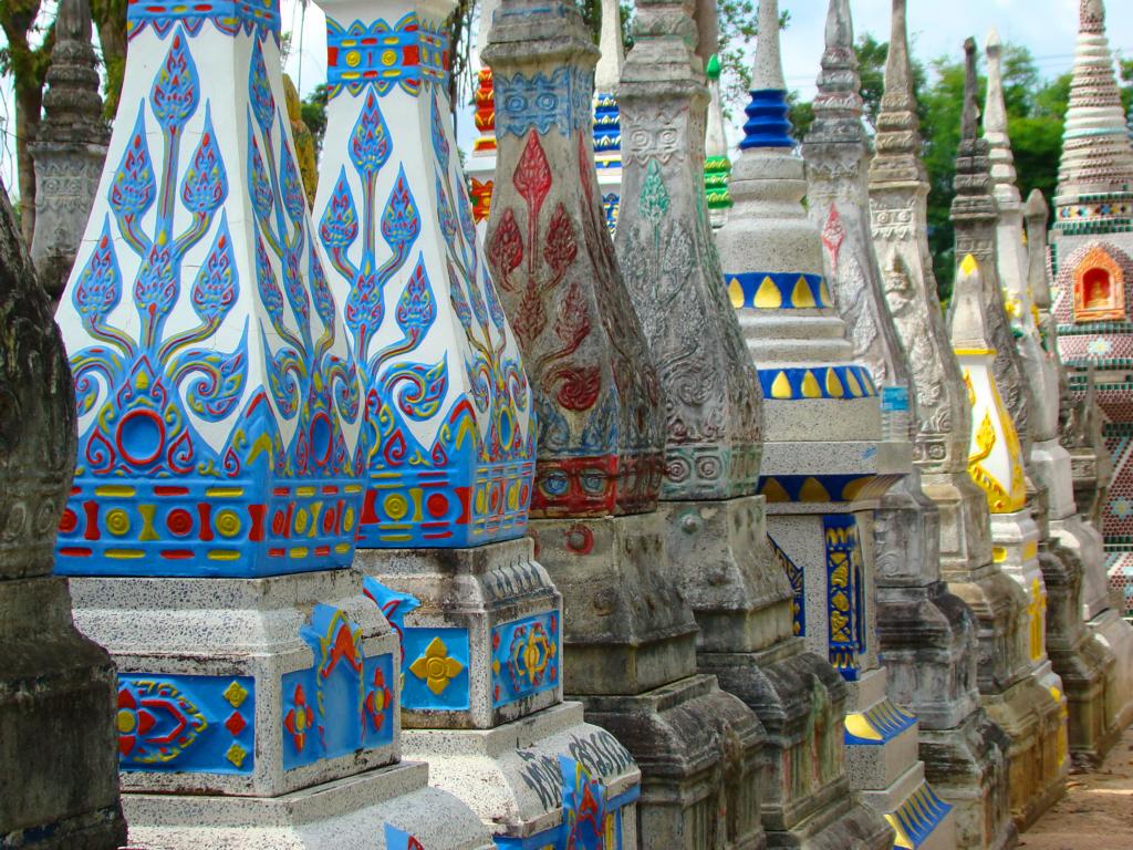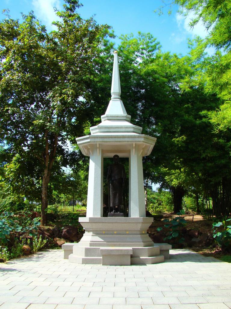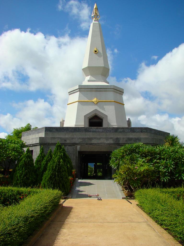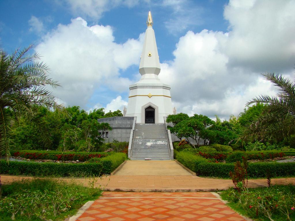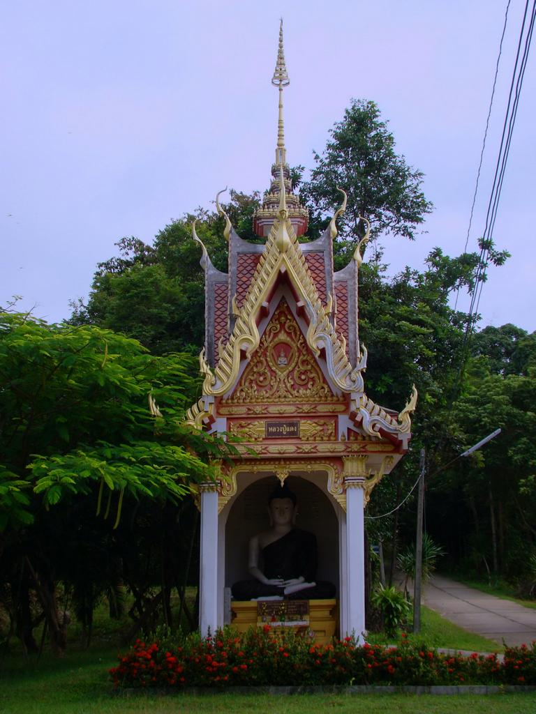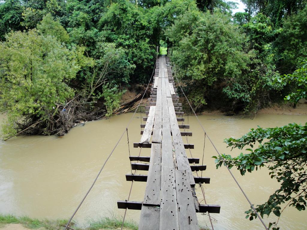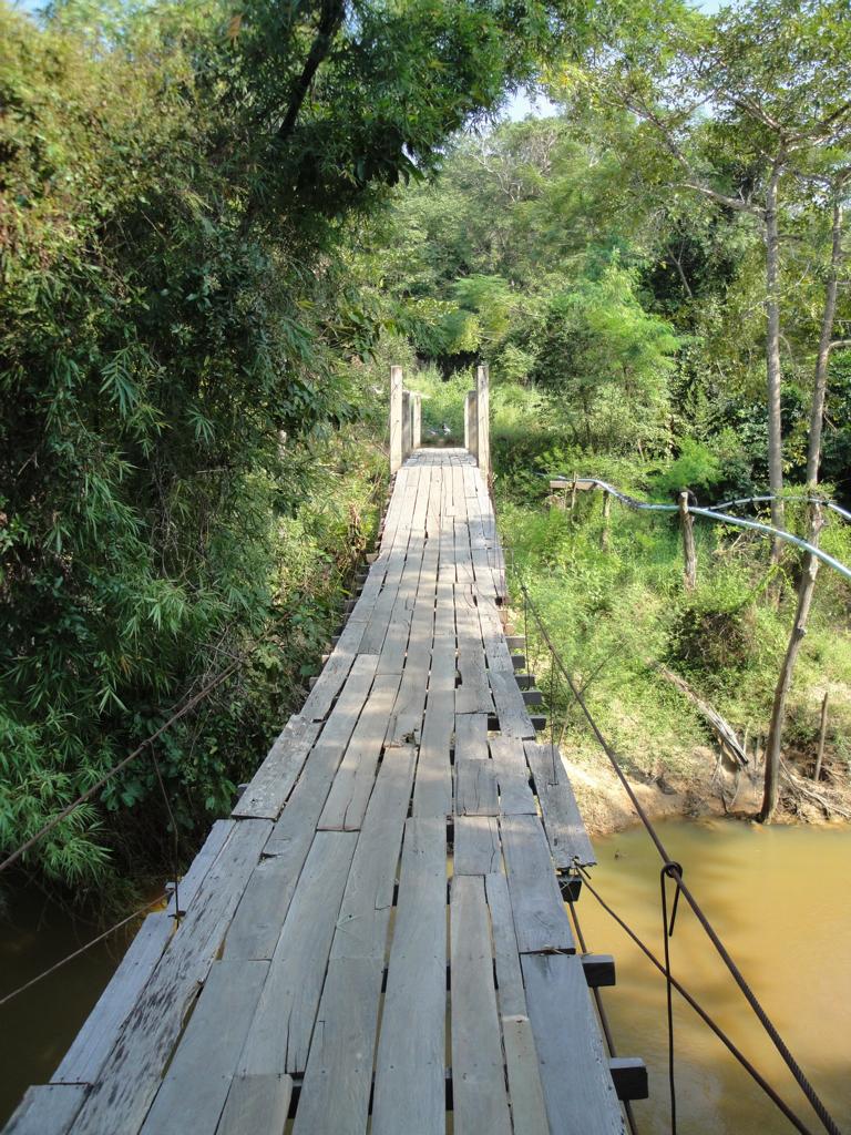 Tour overview … ÜberblickIn front of the Bureau of Monks in Kamcha-i. Vor dem Büro für Mönchsangelegenheiten in Kamcha-i.A very basic kuti. This one looked more like a decoration than a really used one. But in poor, remote regions of Thailand monks are still staying in ‚houses‘ like this. Most temples in Thailand receive enough donations to build proper houses for their monks. Die sehr einfache Unterkunft eines Mönches. Sie sah eher wie ein Austellungsstück aus als wie eine wirklich genutzte Hütte. Aber in den armen, abgelegenen Gegenden Thailands leben die Mönche immer noch in Unterkünften wie dieser. Die meisten Tempel in Thailand erhalten auseichend viele Spenden um deutlich bessere Häuser für die Mönche zu bauen.Small, colourful chedis around Wat Pa Wiwek Watthanaram. Kleine, farbenfrohe Chedis am Wat Pa Wiwek Watthanaram.At Wat Pa Wiwek Watthanaram. Am Pa Wiwek Watthanaram.Golden sitting Buddha – framed by detailed ornaments … Ein goldener, sitzender Buddha – eingerahmt von fein ausgearbeiteten Verzierungen …Huge candles – blown out by the wind. Große Kerzen – ausgelöscht vom Wind.A ‚rocky‘ sign at the entrance of Wat Tham Nok En. Ein Felszeichen an der Zufahrt zum Wat Tham Nok En.A huge, black gong with golden , painted ornaments. Ein großer, schwarzer Gong mit aufgemalten, goldenen Verzierungen.Everything quite basic here … Alles recht einfach hier …At least the altar looks very solid underneath the rocks. Aber zumindest der Altar unter den Felsen sah stabil aus.A closer look … new candles, lotus flowers and photos of revered monks. Blick aus der Nähe … neue Kerzen, Lotusblumen und Fotos verehrter Mönche.And it goes further up … Und es ging noch weiter nach oben …Obviously not the first and not the last candle to be lit up here … Offenbar nicht die erste und auch nicht die letzte Kerze, die hier angezündet wurde …Two huge Buddha statues outside – one in white … Draußen zwei große Buddhastatuen – eine in weiß …… the other one in gold. … und die andere in Gold.This sign told me that I arrived at the chedi to honour Mae Chee Kaew, revered as a modern enlightened Buddhist saint in the Thai forest tradition. Dieses Schild zeigte mir, daß ich den Chedi zu Ehren von Mae Chee Kaew erreicht hatte. Sie wird als moderne, buddhistische Heilige verehrt, die den Regeln einer bestimmten Tradition folgte.Her statue is well protected from the sun and the rain. Ihre Statue ist gut vor der Sonne und dem Regen geschützt.A chedi (or reliquary stupa) has been built to display her relics and a few belongings. Man hat einen Chedi bzw. eine religiöse Stupa errichtet um ihre sterblichen Überreste und einige Erinnerungsstücke zu präsentieren.I kind of liked the modern, straight style … Mir gefällt der moderne, nüchterne Stil …The chedi is surrounded by nice gardens and wide stairs provide access to the upper floor…. Der Chedi ist von schönen Gärten umgeben und breite Treppen führen zum oberen Stockwerk …Reflections on a small pond behind the chedi. Spiegelungen in einem kleinen Teich hinter dem Chedi.I’m pretty sure they built modern facilities already … Ich bin mir ziemlich sicher, daß man inzwischen eine zeitgemäßere Anlage gebaut hat …At Wat Si Bun Rueang. Am Wat Si Bun Rueang.Walking, enlightened Buddha with followers … Wandelnder, erleuchteter Buddha mit Anhängern …Blue gable with golden ornaments framing a praying Buddha. Blauer Giebel mit goldenen Verzierungen, die einen betenden Buddha einrahmen.The sign of Huay Kham Bok village. Das Ortsschild des Dorfes Huay Kham Bok.The sign of Baan Klang village. Das Ortsschild des Dorfes Baan Klang.The sign of Baan Huay Lam Mong village. There were even more similar looking signs along this stretch of the ‚road‘ … Das Ortsschild des Dorfes Baan Huay Lam Mong. Und entlang dieser Strecke gab es sogar noch mehr ähnliche Schilder …… but I went on and across from this tree I saw … aber ich bin weitergefahren und gegenüber dieses Baumes sah ich …… this sign of Wat Pa Phukhao Kwaang which looked really beautiful. I don’t know why I didn’t follow it to have a look at the temple. … dieses sehr schöne Hinweisschild zum Tempel Pa Phukhao. Keine Ahnung warum ich dem Hinweis nicht gefolgt bin um mir den Tempel anzusehen …So, instead of visiting another temple, I stopped by at this bridge. The railing looked pretty unsafe. Also, anstatt wieder einen Temple zu besuchen, habe ich an dieser Brücke angehalten. Das Geländer sah sehr unsicher aus.But I dared to walk onto the brigde and it felt … a bit ’shaky‘ – as you can imagine. Aber ich habe mich trotzdem auf die Brücke gewagt und es fühlte sich … etwas wackelig an – was man sich bestimmt gut vorstellen kann.But the area around was quite nice and could provide a ’sandy beach‘ … Aber die Umgebung sah ganz nett aus und es gab sogar einen ‚Sandstrand‘ …Ok, back upwards to the slightly better ‚road‘ … (When I look at these photos now, I think I really must have tortured my bike). Ok, zurück nach oben auf die andeutungsweise bessere ‚Straße‘ … (wenn ich mir diese Bilder jetzt ansehe, denke ich, daß ich meinen Roller wirklich gequält habe).Not really ‚rainproof‘ anymore … Nicht mehr wirklich ‚regendicht‘ …Due to the nice view from the bridge before, I tried to find another one. Here it is … Nach dem schönen Blick von der letzten Brücke habe ich versucht, noch eine andere zu finden. Hier ist sie …It looked not trustworthy – but I trusted in my poor swimming skills – and crossed it. Die Brücke sah nicht vertrauenswürdig aus – aber ich habe auf meine schlechten Schwimmkenntnisse vertraut – und bin darüber gegangen.Hmm, not as nice as before – but more ’sandy beaches‘ stretching out along this small creek here. Hmm, nicht so schön wie zuvor – aber es gab mehr ‚Sandstrände‘, die sich entlang dieses kleinen Flusses erstreckte