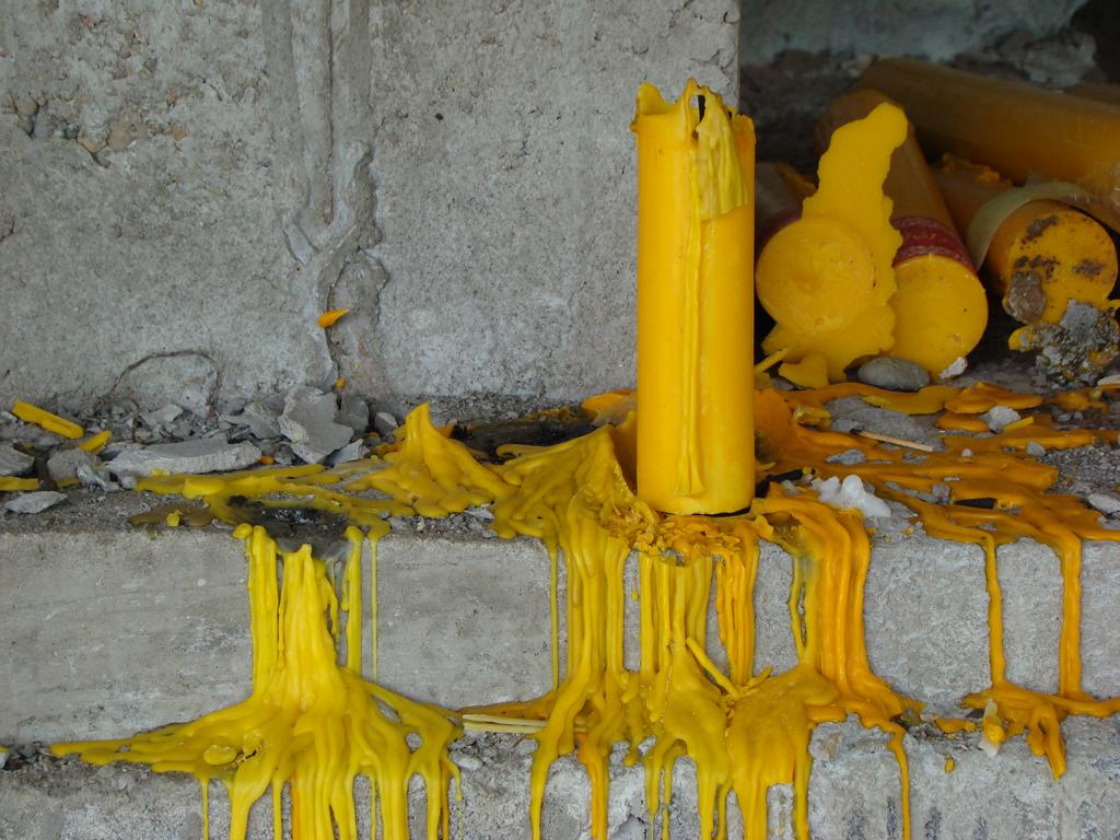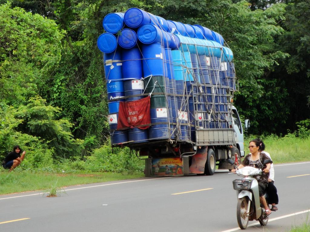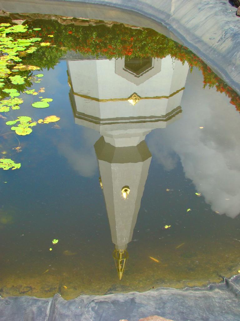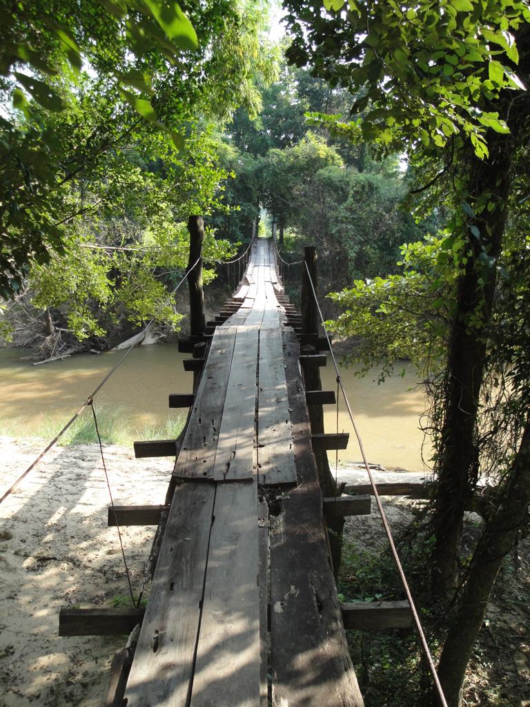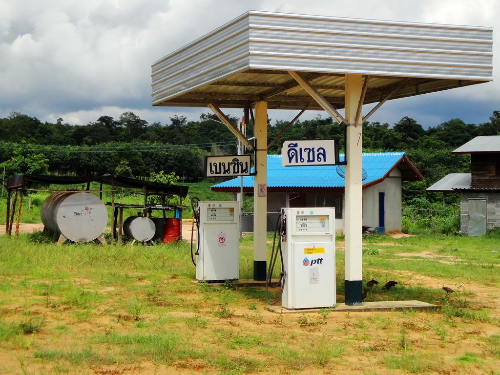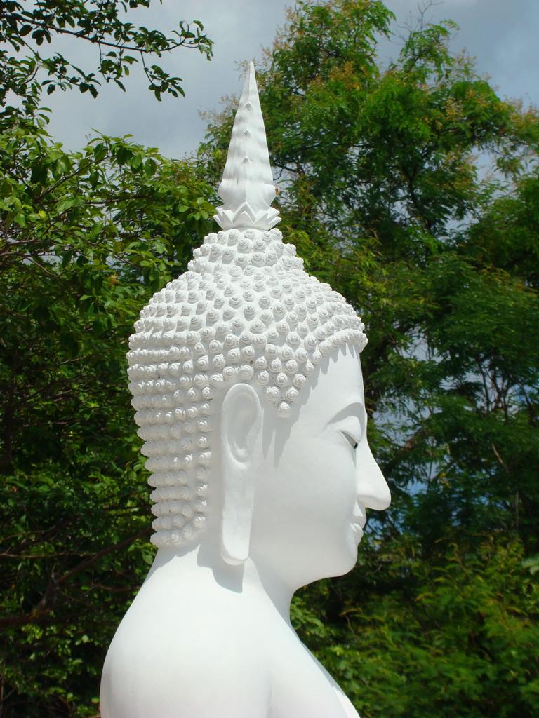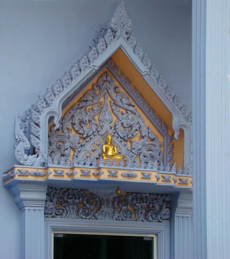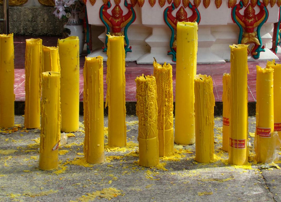 Tour overview … ÜberblickIn front of the Bureau of Monks in Kamcha-i. Vor dem Büro für Mönchsangelegenheiten in Kamcha-i.A very basic kuti. This one looked more like a decoration than a really used one. But in poor, remote regions of Thailand monks are still staying in ‚houses‘ like this. Most temples in Thailand receive enough donations to build proper houses for their monks. Die sehr einfache Unterkunft eines Mönches. Sie sah eher wie ein Austellungsstück aus als wie eine wirklich genutzte Hütte. Aber in den armen, abgelegenen Gegenden Thailands leben die Mönche immer noch in Unterkünften wie dieser. Die meisten Tempel in Thailand erhalten auseichend viele Spenden um deutlich bessere Häuser für die Mönche zu bauen.Small, colourful chedis around Wat Pa Wiwek Watthanaram. Kleine, farbenfrohe Chedis am Wat Pa Wiwek Watthanaram.At Wat Pa Wiwek Watthanaram. Am Pa Wiwek Watthanaram.Golden sitting Buddha – framed by detailed ornaments … Ein goldener, sitzender Buddha – eingerahmt von fein ausgearbeiteten Verzierungen …Huge candles – blown out by the wind. Große Kerzen – ausgelöscht vom Wind.A ‚rocky‘ sign at the entrance of Wat Tham Nok En. Ein Felszeichen an der Zufahrt zum Wat Tham Nok En.A huge, black gong with golden , painted ornaments. Ein großer, schwarzer Gong mit aufgemalten, goldenen Verzierungen.Everything quite basic here … Alles recht einfach hier …At least the altar looks very solid underneath the rocks. Aber zumindest der Altar unter den Felsen sah stabil aus.A closer look … new candles, lotus flowers and photos of revered monks. Blick aus der Nähe … neue Kerzen, Lotusblumen und Fotos verehrter Mönche.And it goes further up … Und es ging noch weiter nach oben …Obviously not the first and not the last candle to be lit up here … Offenbar nicht die erste und auch nicht die letzte Kerze, die hier angezündet wurde …Two huge Buddha statues outside – one in white … Draußen zwei große Buddhastatuen – eine in weiß …… the other one in gold. … und die andere in Gold.This sign told me that I arrived at the chedi to honour Mae Chee Kaew, revered as a modern enlightened Buddhist saint in the Thai forest tradition. Dieses Schild zeigte mir, daß ich den Chedi zu Ehren von Mae Chee Kaew erreicht hatte. Sie wird als moderne, buddhistische Heilige verehrt, die den Regeln einer bestimmten Tradition folgte.Her statue is well protected from the sun and the rain. Ihre Statue ist gut vor der Sonne und dem Regen geschützt.A chedi (or reliquary stupa) has been built to display her relics and a few belongings. Man hat einen Chedi bzw. eine religiöse Stupa errichtet um ihre sterblichen Überreste und einige Erinnerungsstücke zu präsentieren.I kind of liked the modern, straight style … Mir gefällt der moderne, nüchterne Stil …The chedi is surrounded by nice gardens and wide stairs provide access to the upper floor…. Der Chedi ist von schönen Gärten umgeben und breite Treppen führen zum oberen Stockwerk …Reflections on a small pond behind the chedi. Spiegelungen in einem kleinen Teich hinter dem Chedi.I’m pretty sure they built modern facilities already … Ich bin mir ziemlich sicher, daß man inzwischen eine zeitgemäßere Anlage gebaut hat …At Wat Si Bun Rueang. Am Wat Si Bun Rueang.Walking, enlightened Buddha with followers … Wandelnder, erleuchteter Buddha mit Anhängern …Blue gable with golden ornaments framing a praying Buddha. Blauer Giebel mit goldenen Verzierungen, die einen betenden Buddha einrahmen.The sign of Huay Kham Bok village. Das Ortsschild des Dorfes Huay Kham Bok.The sign of Baan Klang village. Das Ortsschild des Dorfes Baan Klang.The sign of Baan Huay Lam Mong village. There were even more similar looking signs along this stretch of the ‚road‘ … Das Ortsschild des Dorfes Baan Huay Lam Mong. Und entlang dieser Strecke gab es sogar noch mehr ähnliche Schilder …… but I went on and across from this tree I saw … aber ich bin weitergefahren und gegenüber dieses Baumes sah ich …… this sign of Wat Pa Phukhao Kwaang which looked really beautiful. I don’t know why I didn’t follow it to have a look at the temple. … dieses sehr schöne Hinweisschild zum Tempel Pa Phukhao. Keine Ahnung warum ich dem Hinweis nicht gefolgt bin um mir den Tempel anzusehen …So, instead of visiting another temple, I stopped by at this bridge. The railing looked pretty unsafe. Also, anstatt wieder einen Temple zu besuchen, habe ich an dieser Brücke angehalten. Das Geländer sah sehr unsicher aus.But I dared to walk onto the brigde and it felt … a bit ’shaky‘ – as you can imagine. Aber ich habe mich trotzdem auf die Brücke gewagt und es fühlte sich … etwas wackelig an – was man sich bestimmt gut vorstellen kann.But the area around was quite nice and could provide a ’sandy beach‘ … Aber die Umgebung sah ganz nett aus und es gab sogar einen ‚Sandstrand‘ …Ok, back upwards to the slightly better ‚road‘ … (When I look at these photos now, I think I really must have tortured my bike). Ok, zurück nach oben auf die andeutungsweise bessere ‚Straße‘ … (wenn ich mir diese Bilder jetzt ansehe, denke ich, daß ich meinen Roller wirklich gequält habe).Not really ‚rainproof‘ anymore … Nicht mehr wirklich ‚regendicht‘ …Due to the nice view from the bridge before, I tried to find another one. Here it is … Nach dem schönen Blick von der letzten Brücke habe ich versucht, noch eine andere zu finden. Hier ist sie …It looked not trustworthy – but I trusted in my poor swimming skills – and crossed it. Die Brücke sah nicht vertrauenswürdig aus – aber ich habe auf meine schlechten Schwimmkenntnisse vertraut – und bin darüber gegangen.Hmm, not as nice as before – but more ’sandy beaches‘ stretching out along this small creek here. Hmm, nicht so schön wie zuvor – aber es gab mehr ‚Sandstrände‘, die sich entlang dieses kleinen Flusses erstreckte