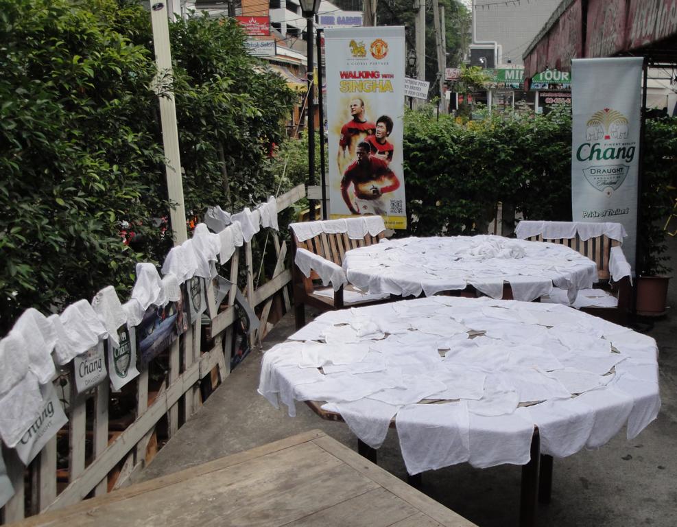Bangkok, Sukhumvit Rd., Soi 7. Drying the refreshing towels in April’s heat … Bangkok, Sukhumvit Straße, Soi 7. Hier wurden Erfrischungshandtücher in der Hitze des Aprils getrocknet …